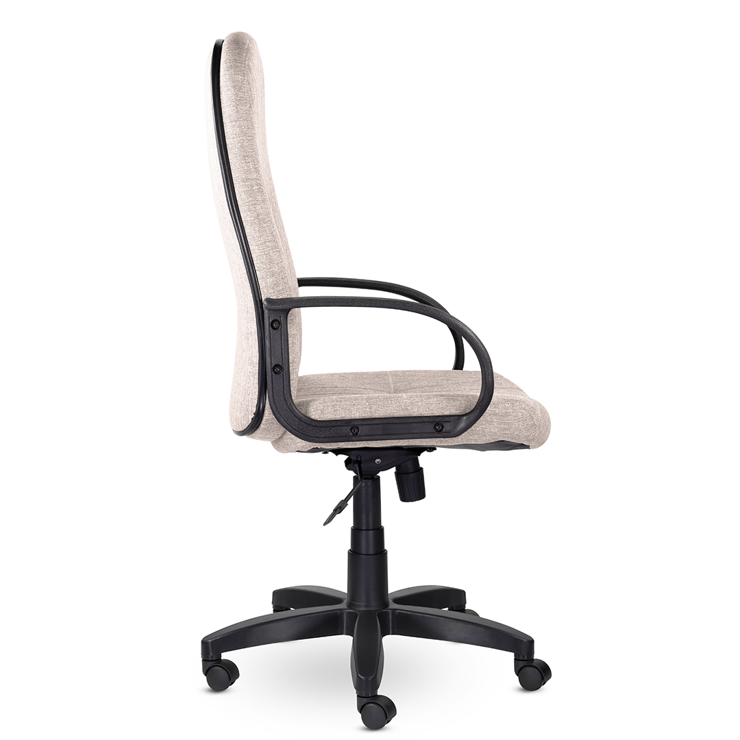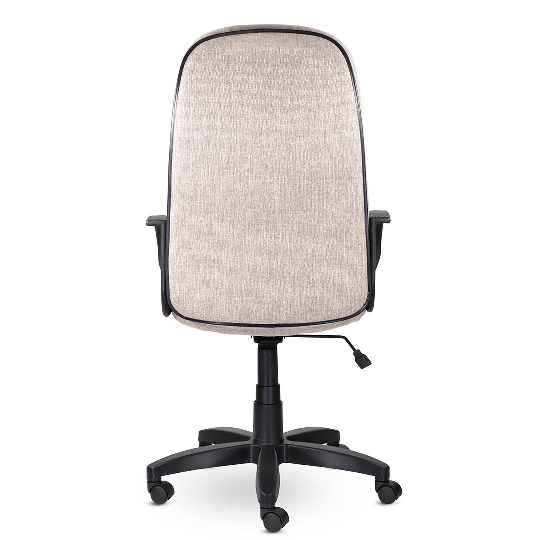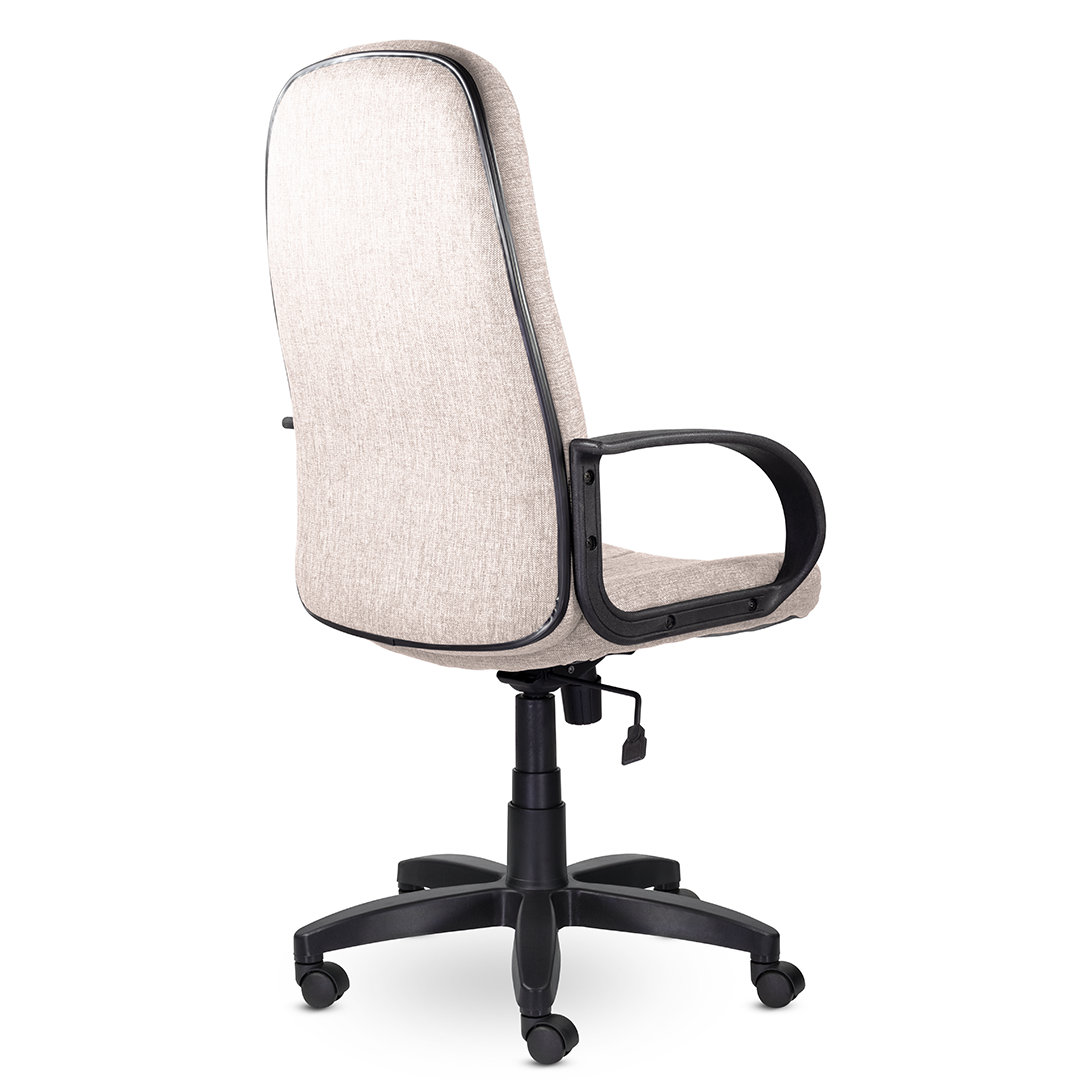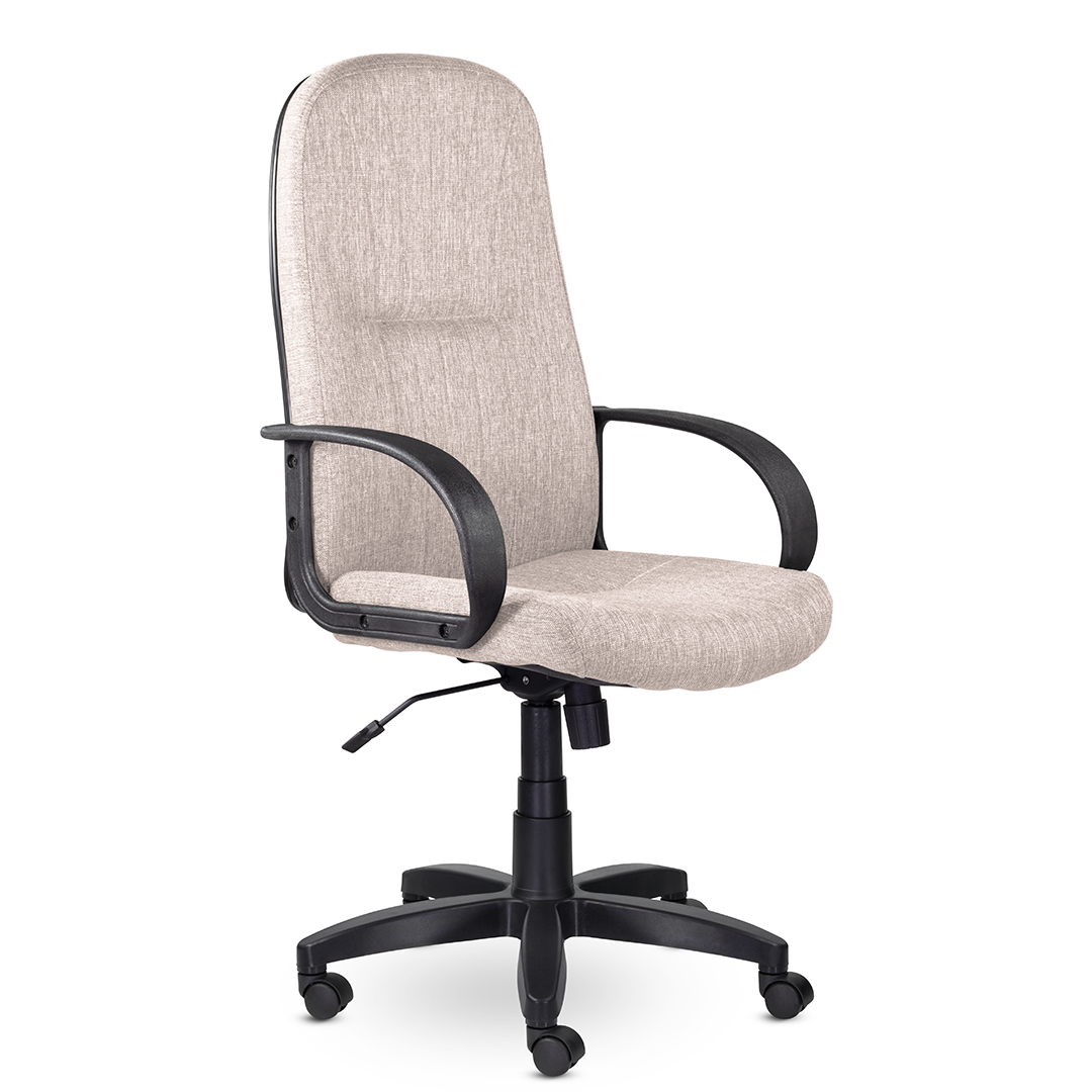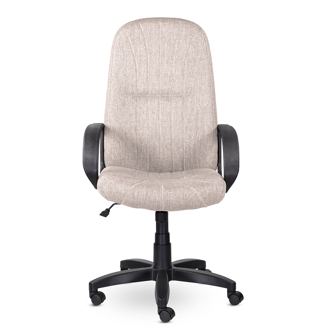 Кресло руководителя с мягкими увеличенными подушками. Широкая эргономичная спинка и глубокое сидение разделены на две части горизонтальной прострочкой. Удобные пластиковые подлокотники способствуют комфортной посадке в кресле.