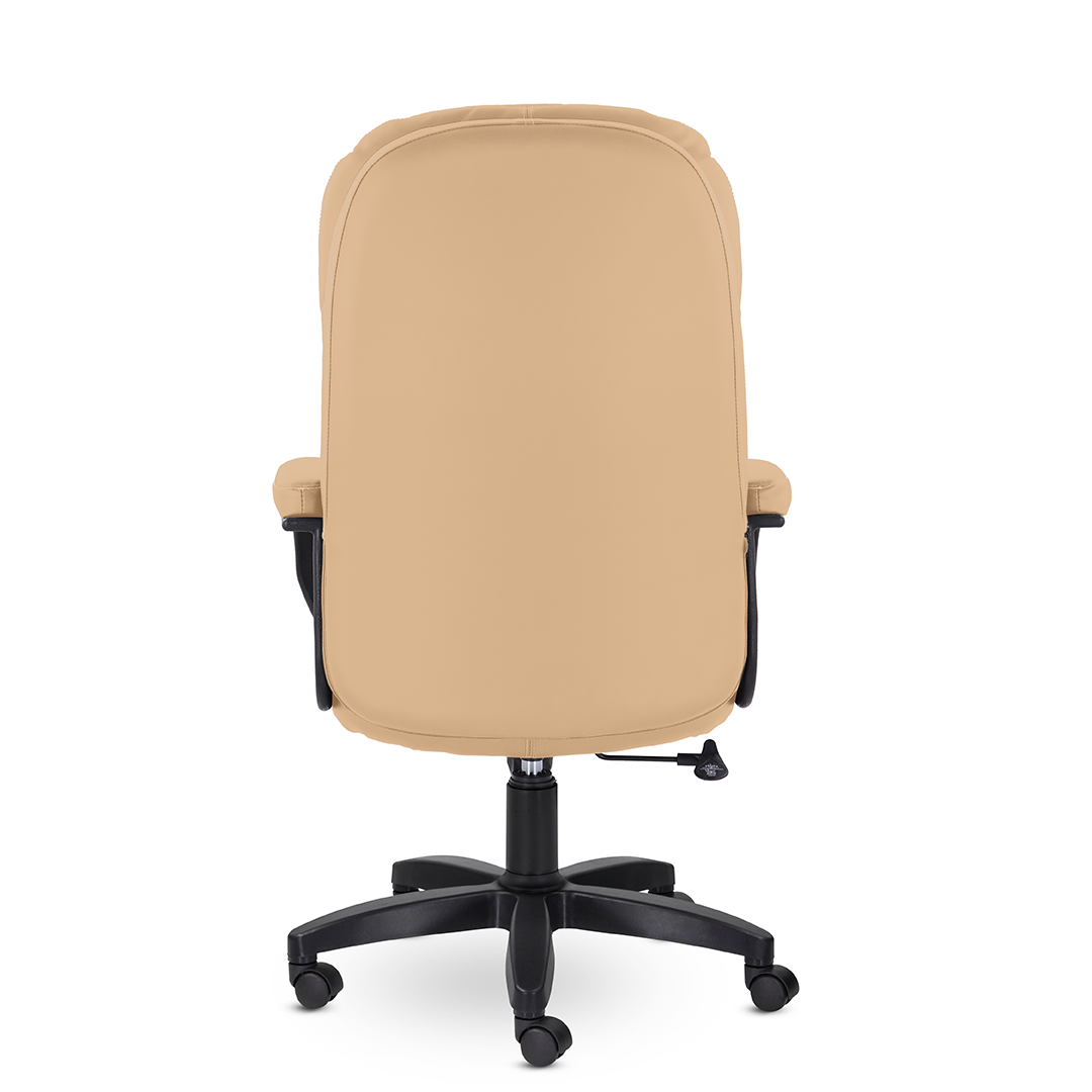 Современное кресло для руководителя, которое сочетает в себе уют и комфорт. Широкая спинка и сиденье с оригинальными мягкими подушками, обивка из высококачественной экокожи, мягкие накладки на подлокотниках создают идеальные условия для продуктивной работы. Кресло выдерживает нагрузку до 120 кг