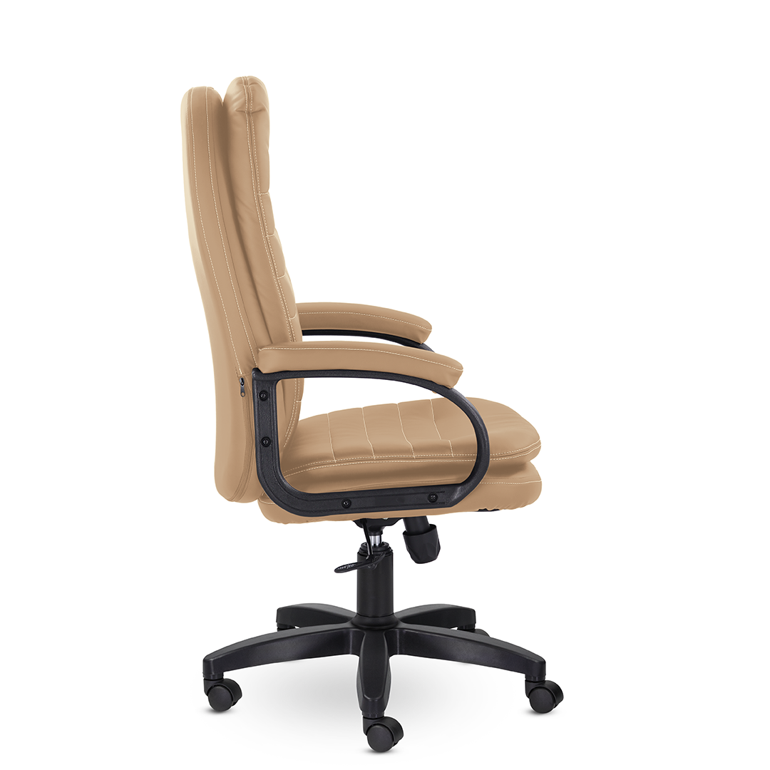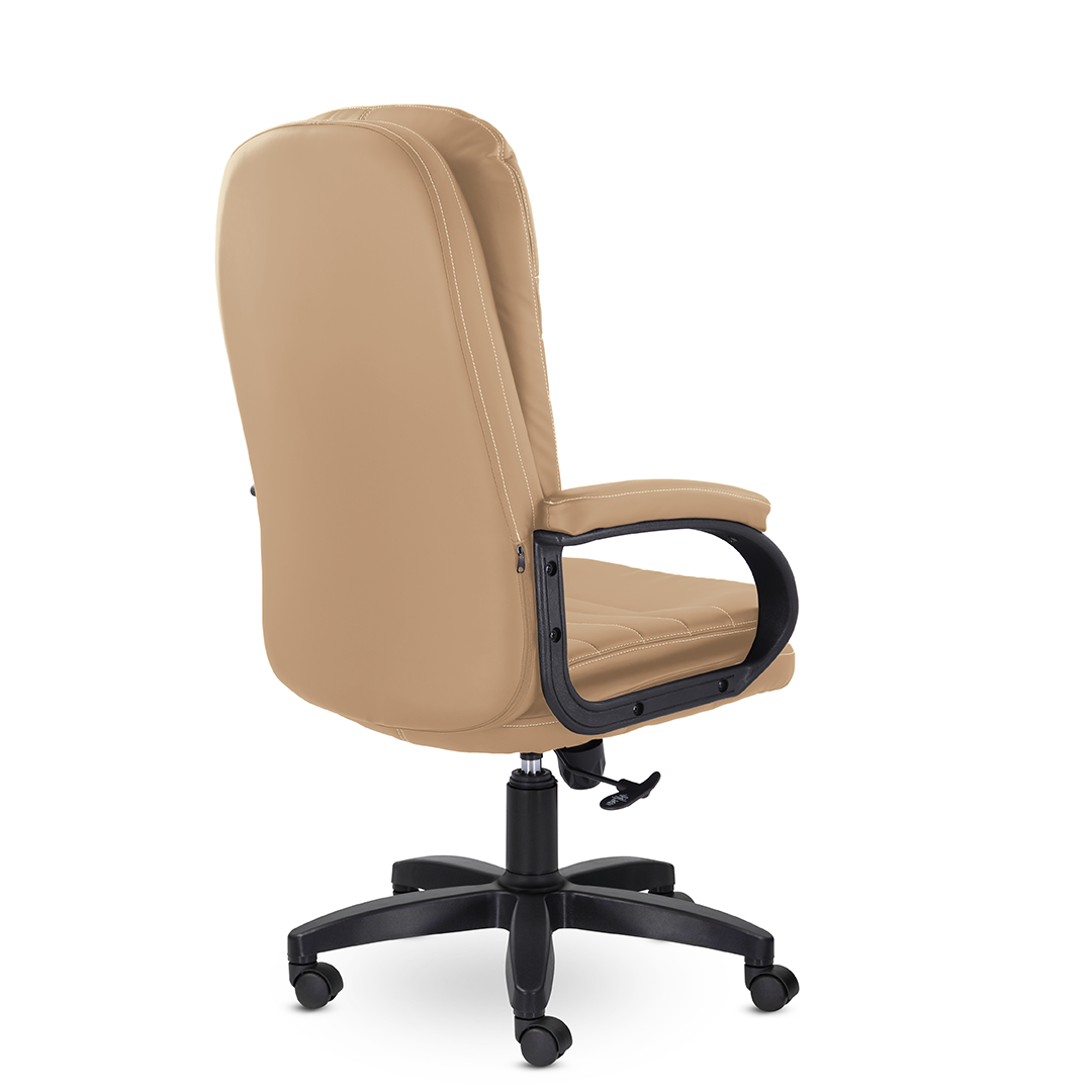 Современное кресло для руководителя, которое сочетает в себе уют и комфорт. Широкая спинка и сиденье с оригинальными мягкими подушками, обивка из высококачественной экокожи, мягкие накладки на подлокотниках создают идеальные условия для продуктивной работы. Кресло выдерживает нагрузку до 120 кг