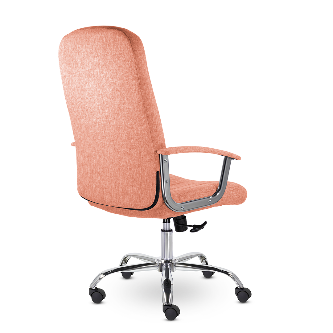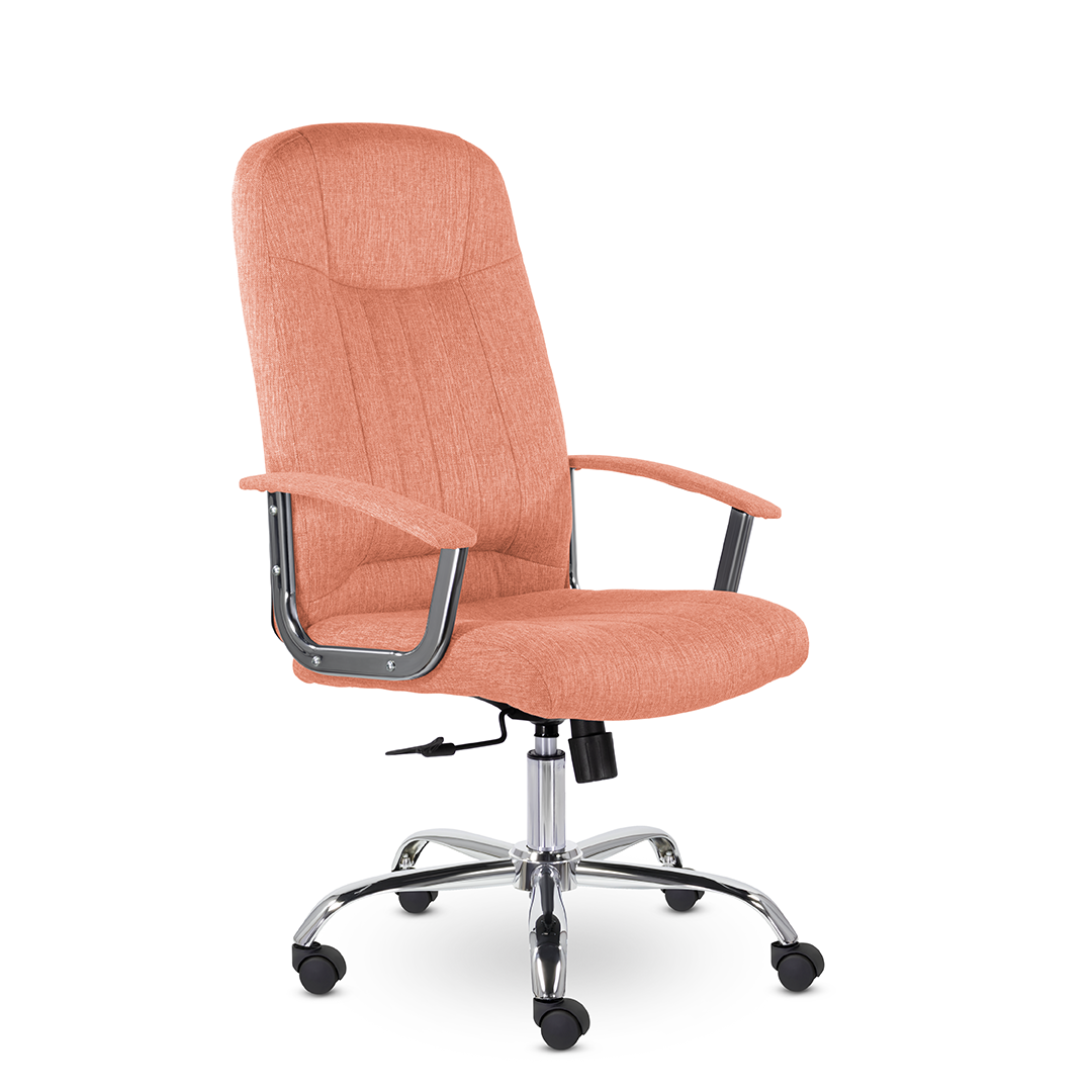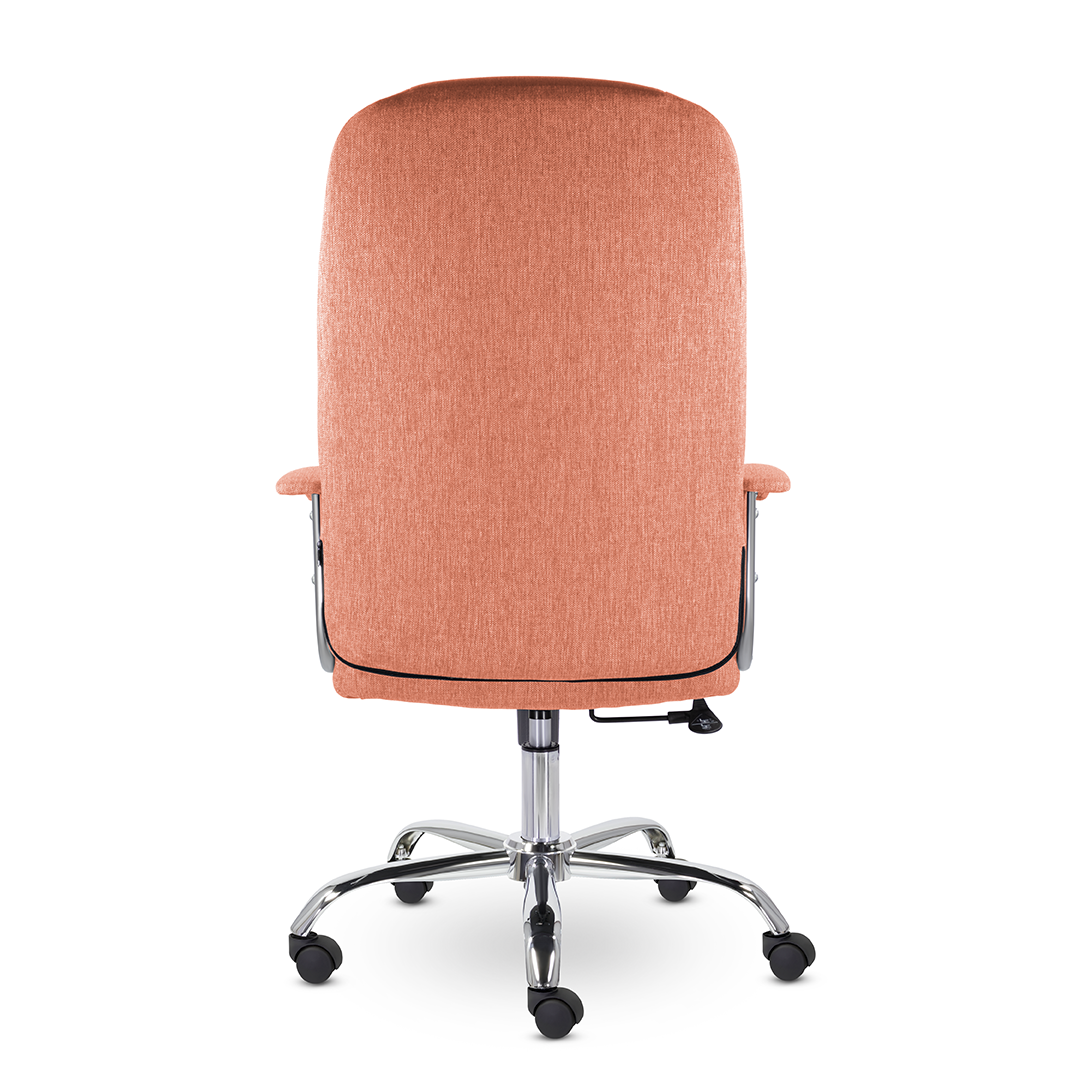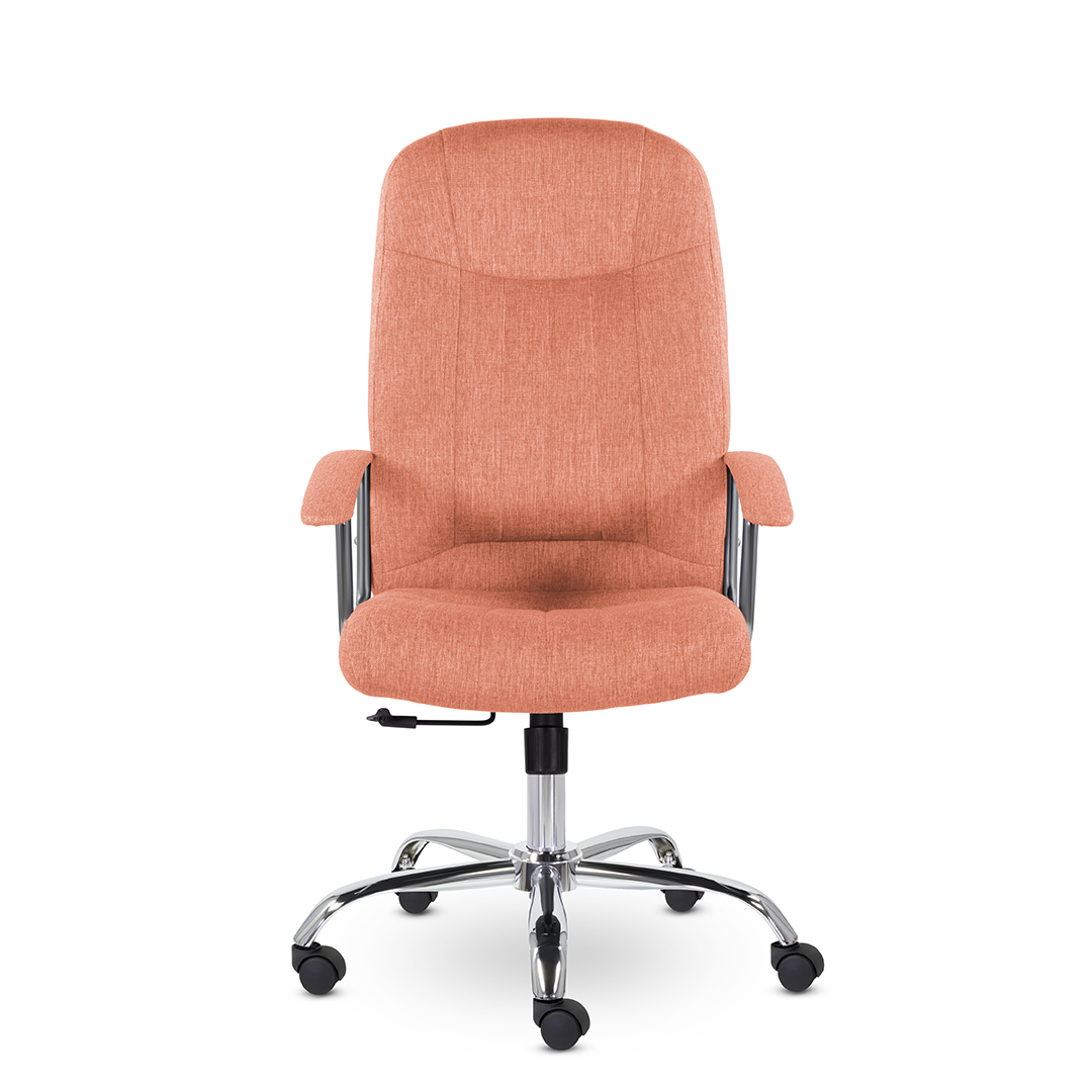 Кресло руководителя с мягкими увеличенными подушками. Широкая эргономичная спинка имеет две горизонтальные прострочки, которые отделяют подголовник от основной части спинки. Благодаря глубокому сиденью, в кресле будет удобно человеку среднего и высокого роста. Длинные хромированные подлокотники способствуют комфортной посадке в кресле.