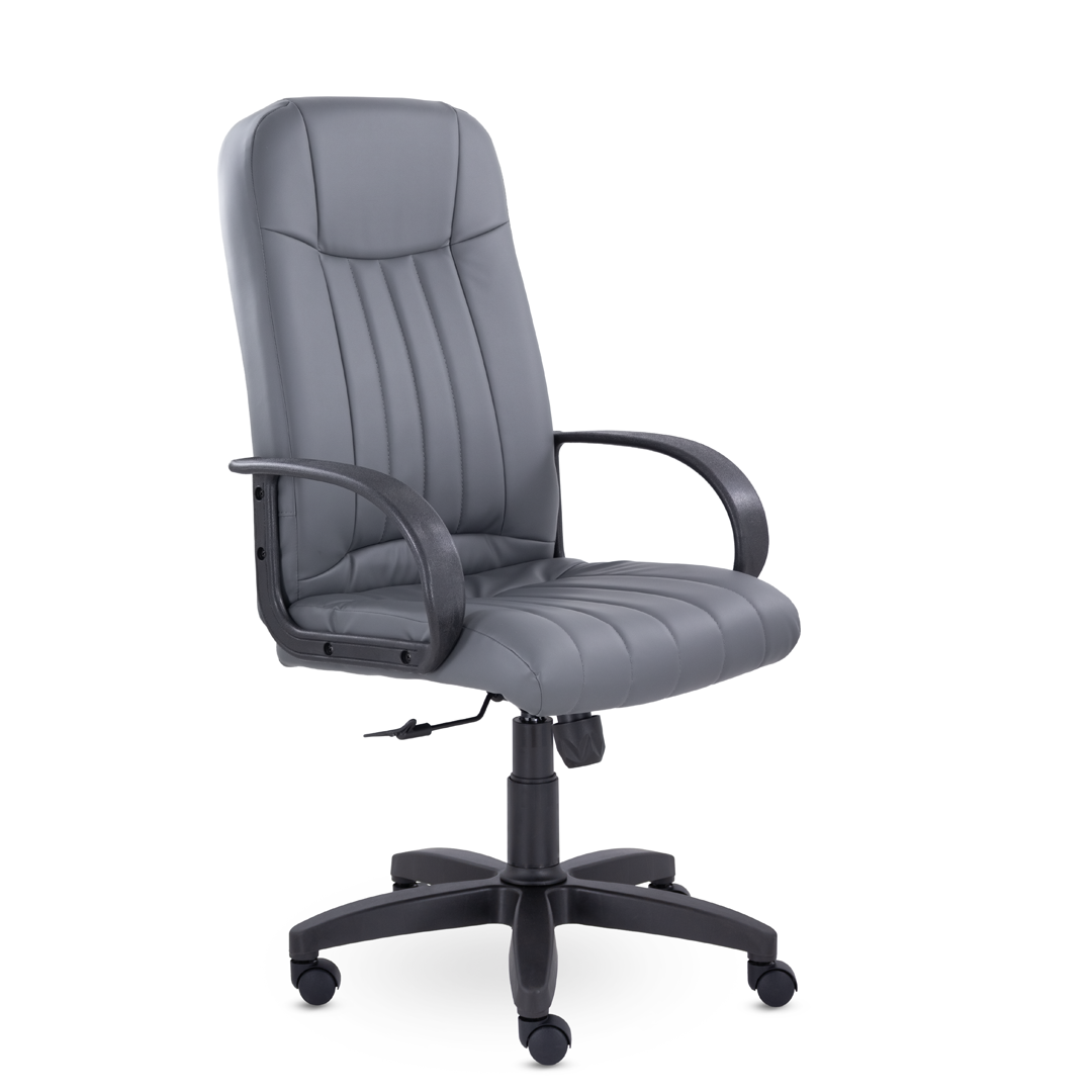 Кресло руководителя с мягкими увеличенными подушками. Широкая эргономичная спинка имеет две горизонтальные прострочки, которые отделяют подголовник от основной части спинки. Благодаря глубокому сиденью, в кресле будет удобно человеку среднего и высокого роста. Длинные пластиковые подлокотники способствуют комфортной посадке в кресле.