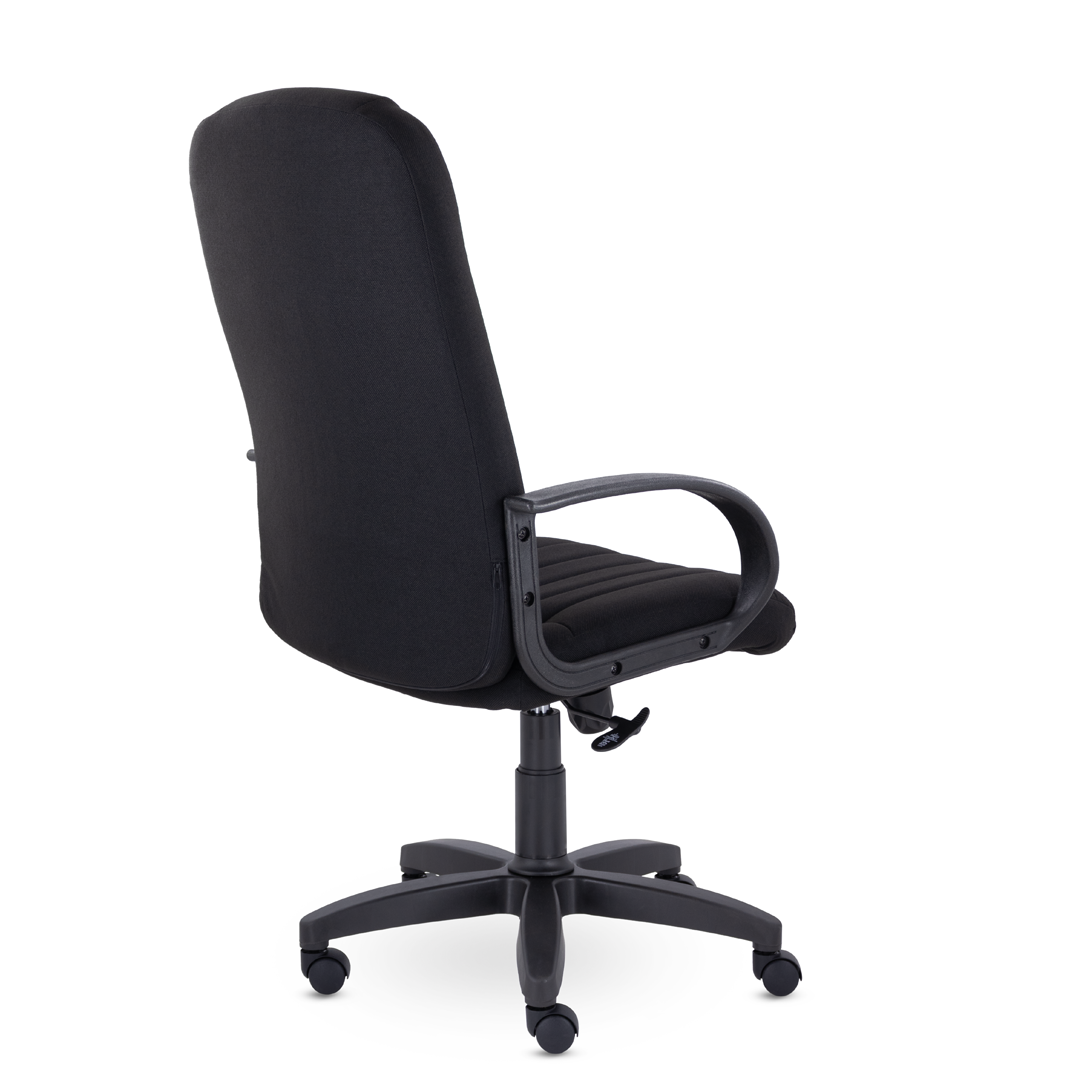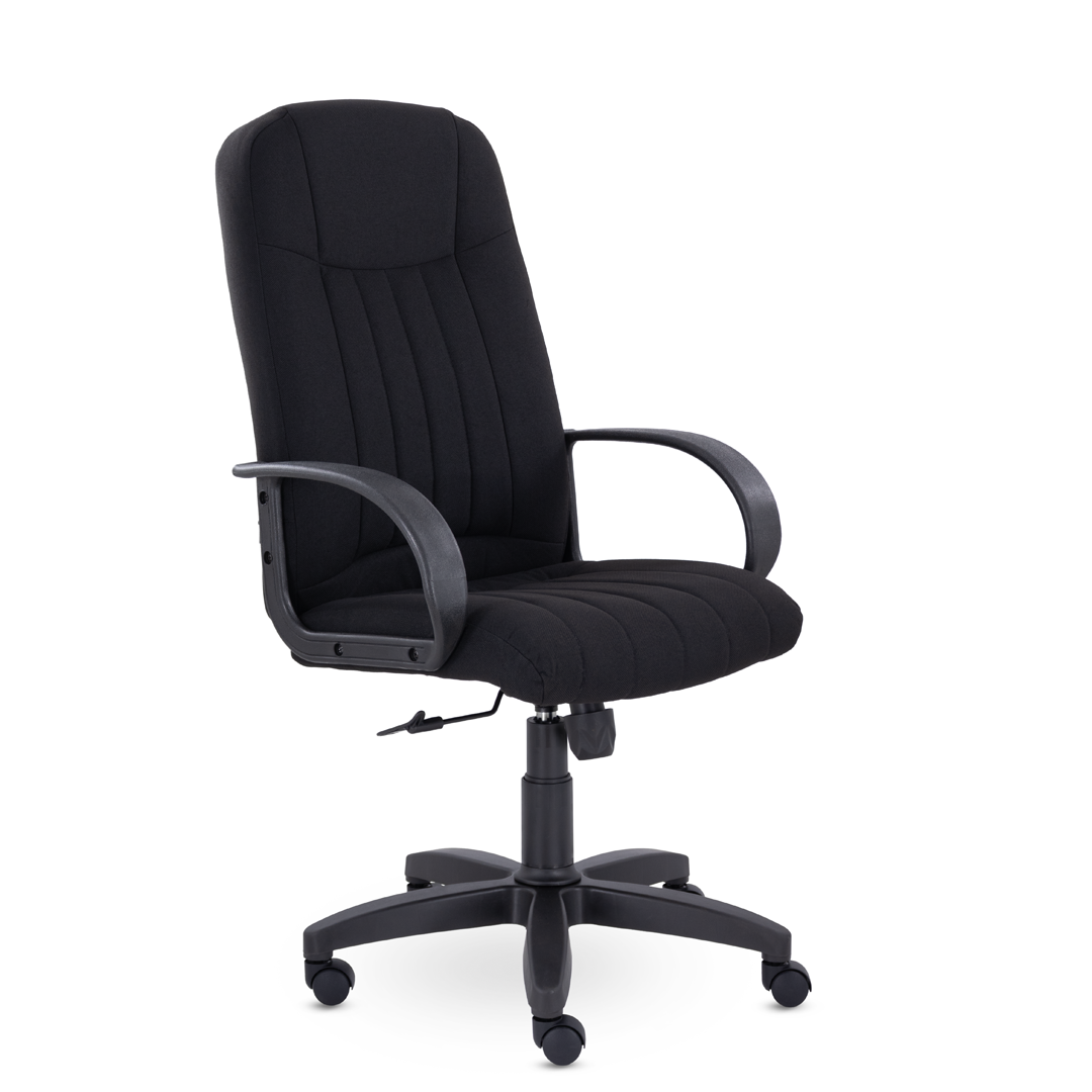 Кресло руководителя с мягкими увеличенными подушками. Широкая эргономичная спинка имеет две горизонтальные прострочки, которые отделяют подголовник от основной части спинки. Благодаря глубокому сиденью, в кресле будет удобно человеку среднего и высокого роста. Длинные пластиковые подлокотники способствуют комфортной посадке в кресле.