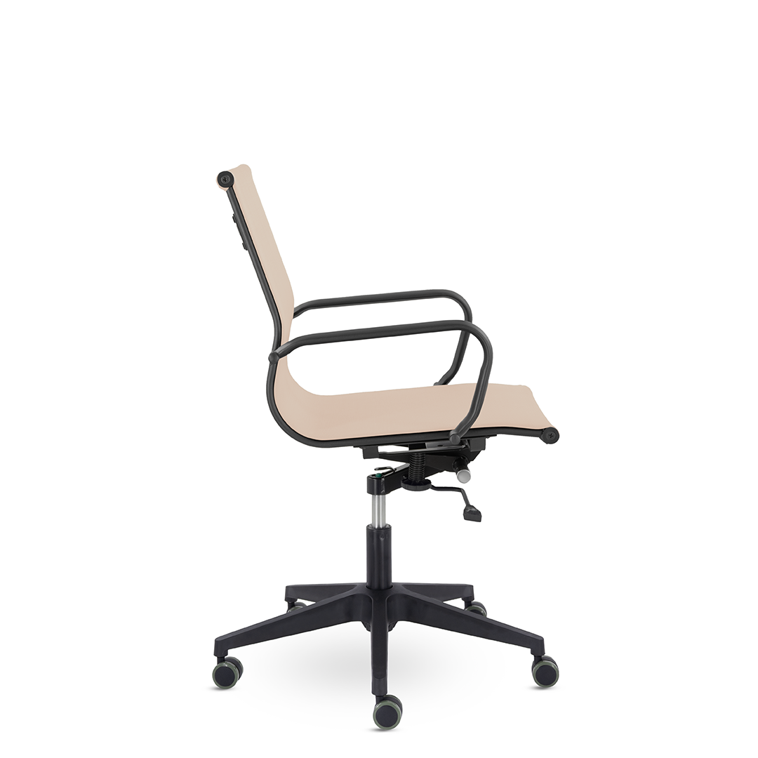 Кресло имеет современный вид благодаря облегченному эргономичному каркасу, обтянутому экокожей, тканью или сеткой. Металлический чёрный каркас кресла прочный и надежный.