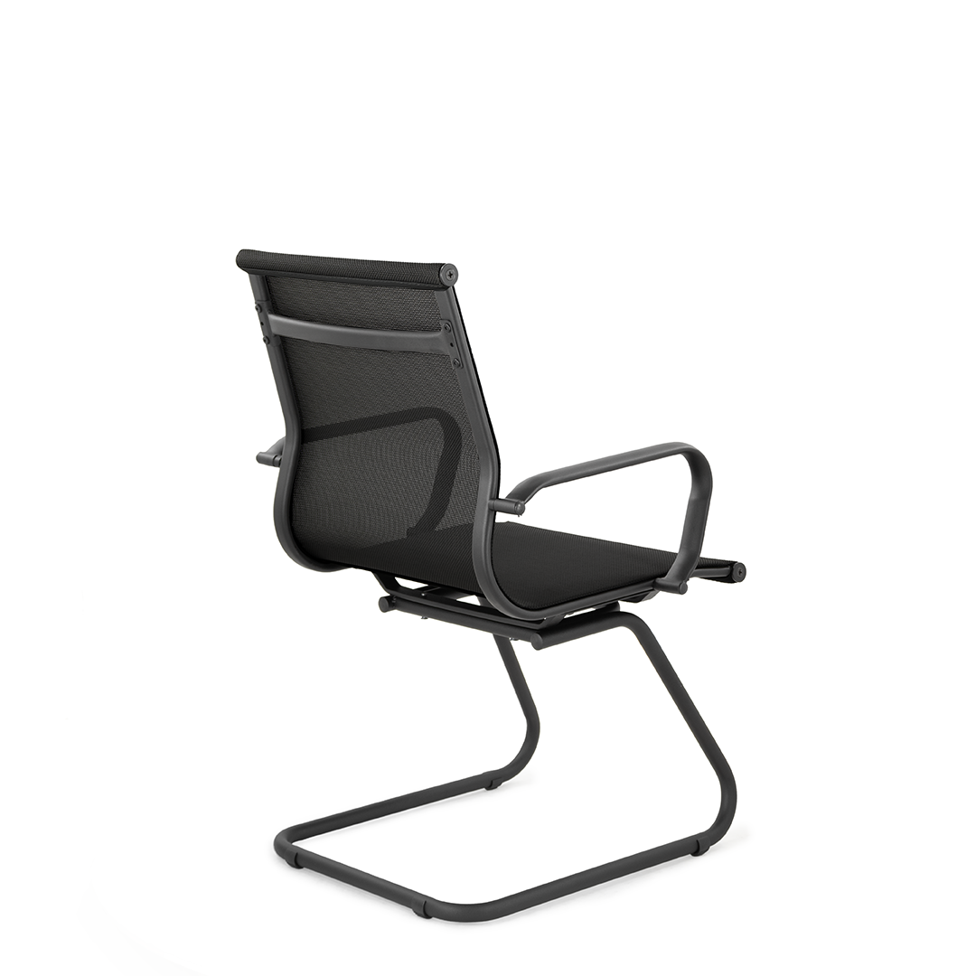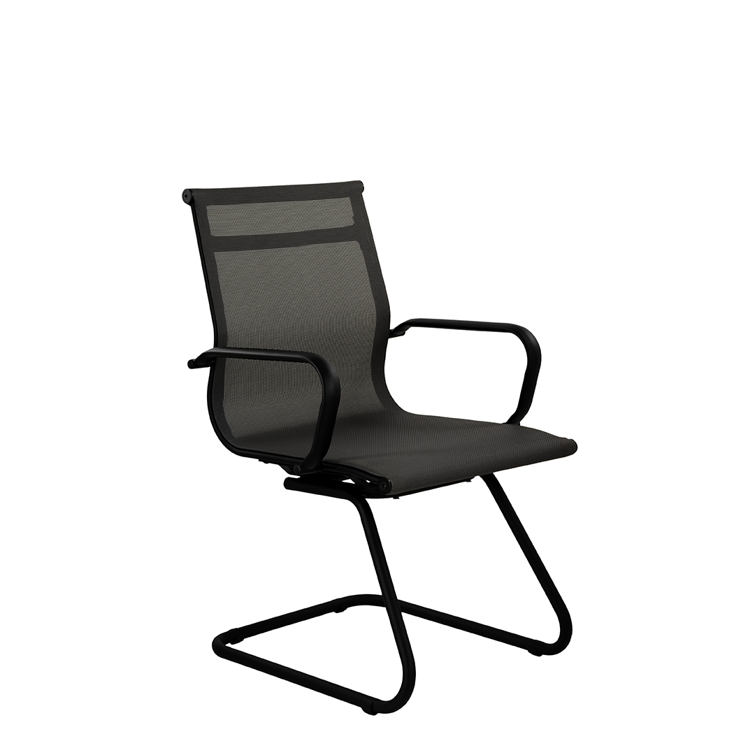 Конференц кресло идеально завершит композицию современного кабинета. Изящная чёрная металлическая конструкция гармонично впишется в любой интерьер.