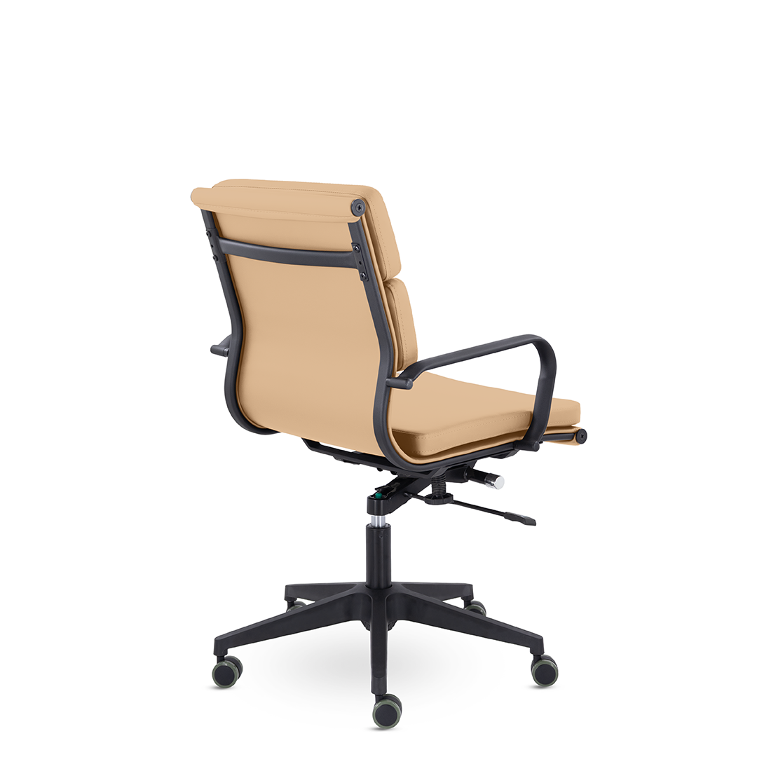 Кресло руководителя в современном металлическом каркасе. Комфорт создается благодаря мягким элементам спинки и сиденья. Черный каркас и узкая крестовина задают современный стиль креслу. Кресло отлично смотрится в строгих и открытых кабинетах.