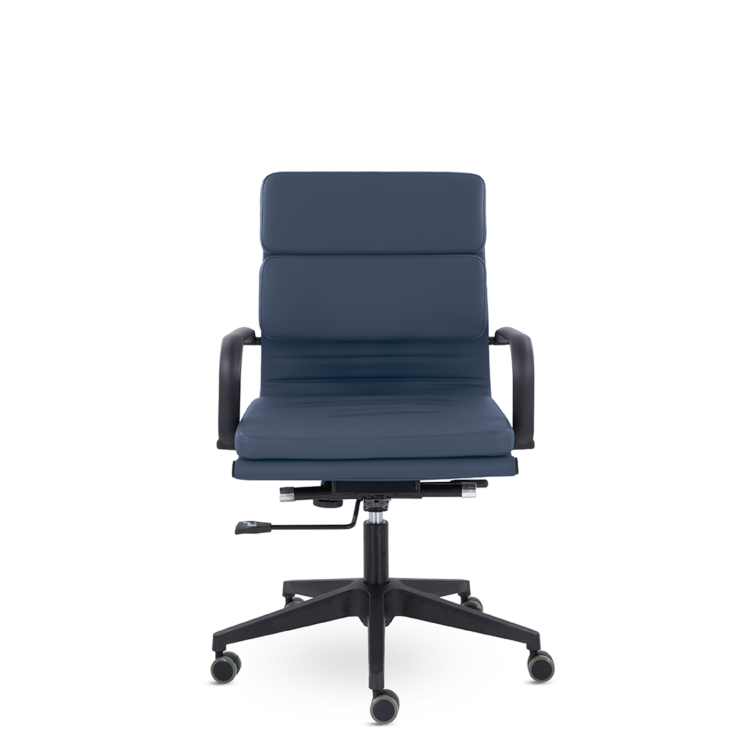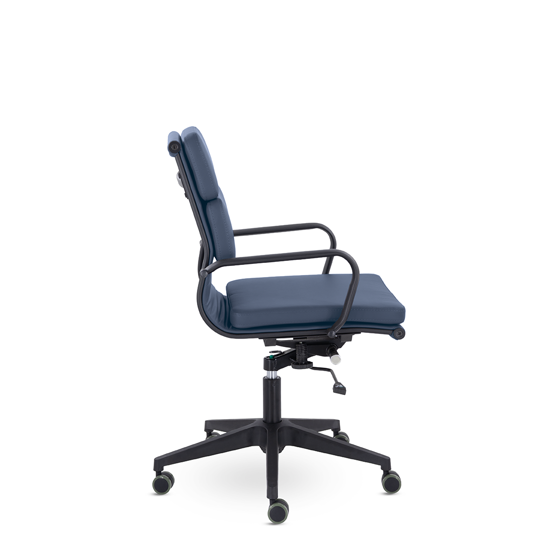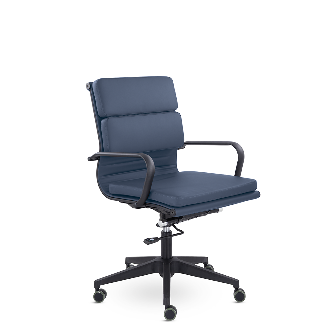 Кресло руководителя в современном металлическом каркасе. Комфорт создается благодаря мягким элементам спинки и сиденья. Черный каркас и узкая крестовина задают современный стиль креслу. Кресло отлично смотрится в строгих и открытых кабинетах.