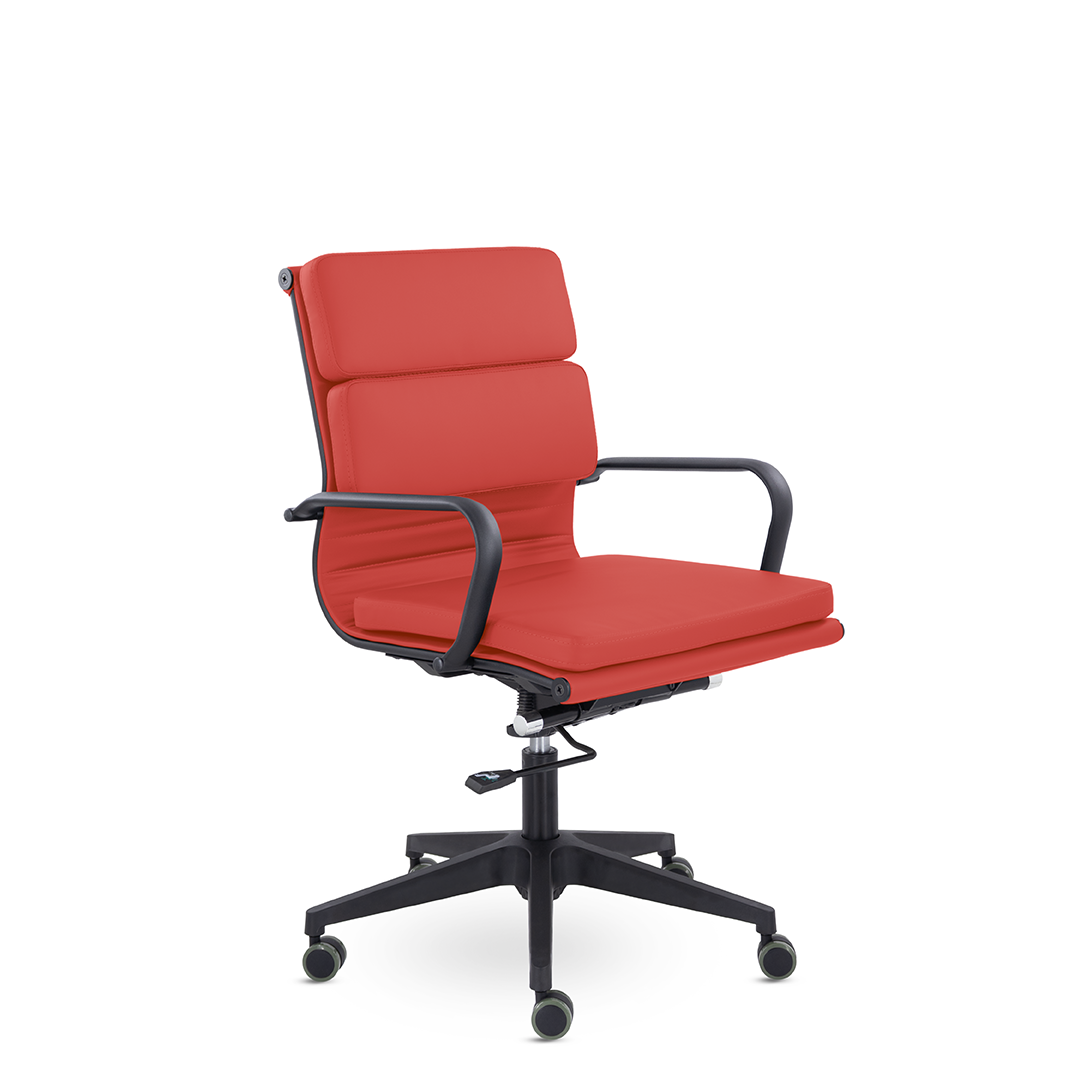 Кресло руководителя в современном металлическом каркасе. Комфорт создается благодаря мягким элементам спинки и сиденья. Черный каркас и узкая крестовина задают современный стиль креслу. Кресло отлично смотрится в строгих и открытых кабинетах.