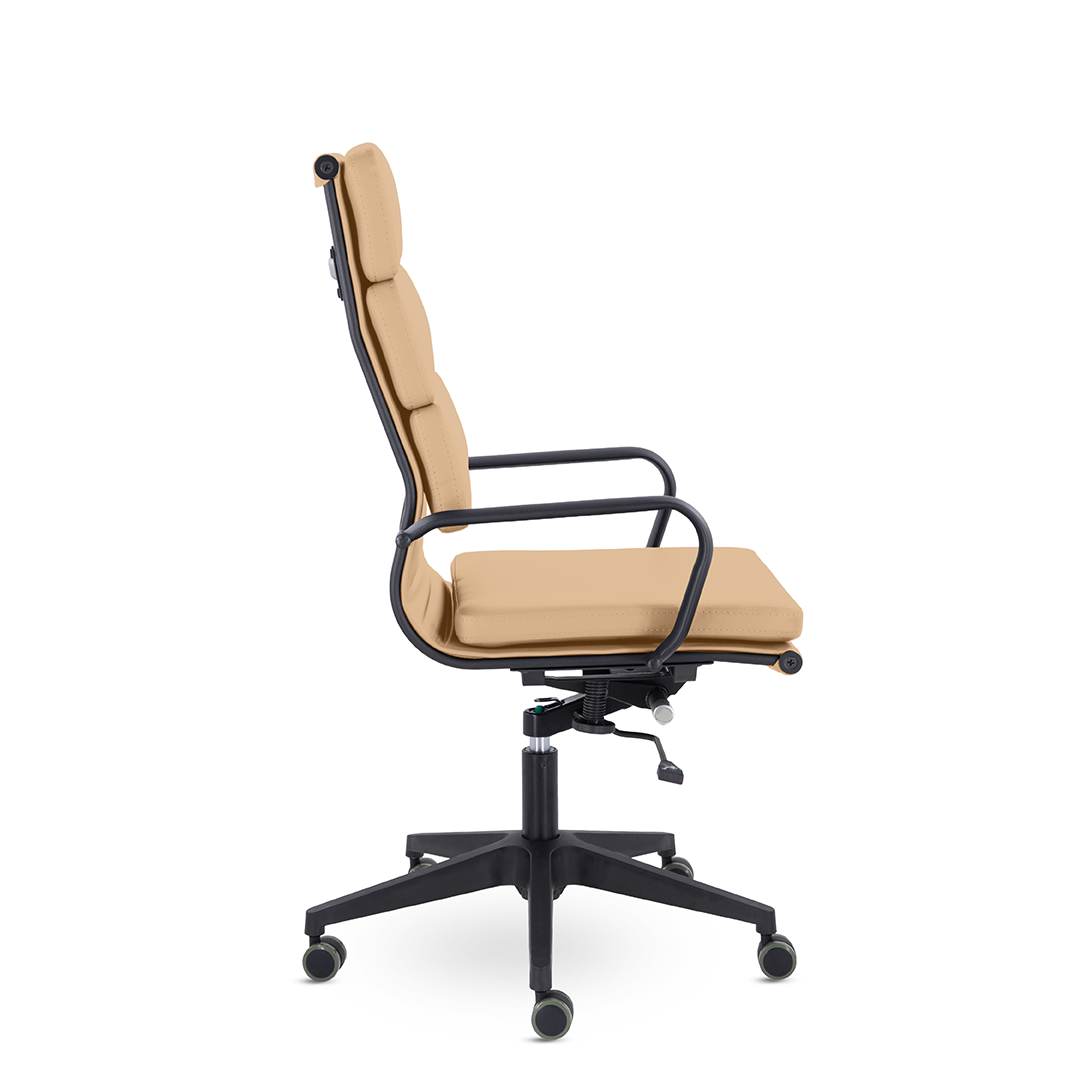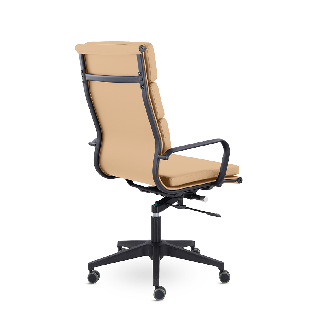 Кресло руководителя в современном металлическом каркасе. Комфорт создается благодаря мягким элементам спинки и сиденья. Черный каркас и узкая крестовина задают современный стиль креслу. Кресло отлично смотрится в строгих и открытых кабинетах.