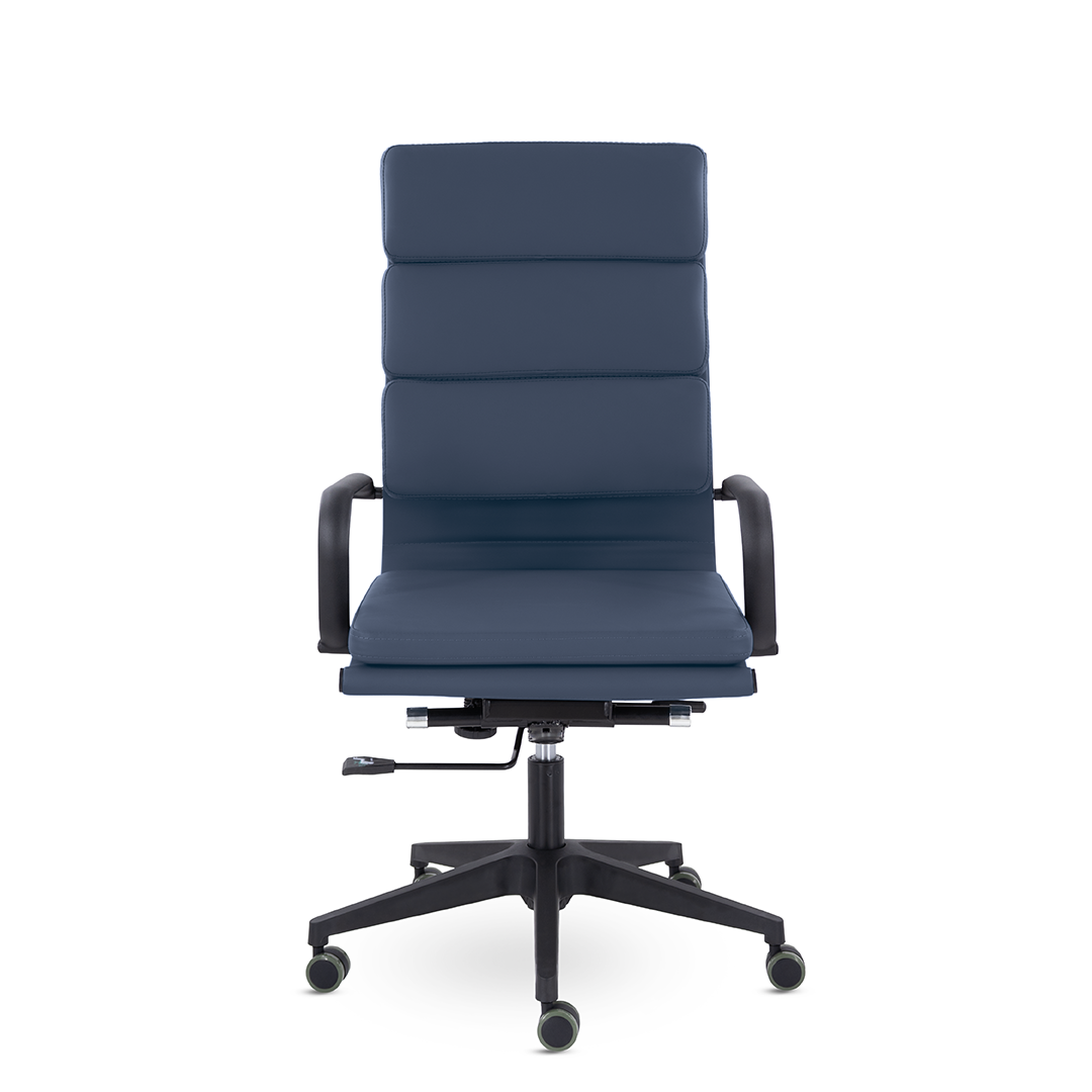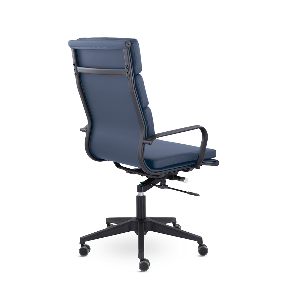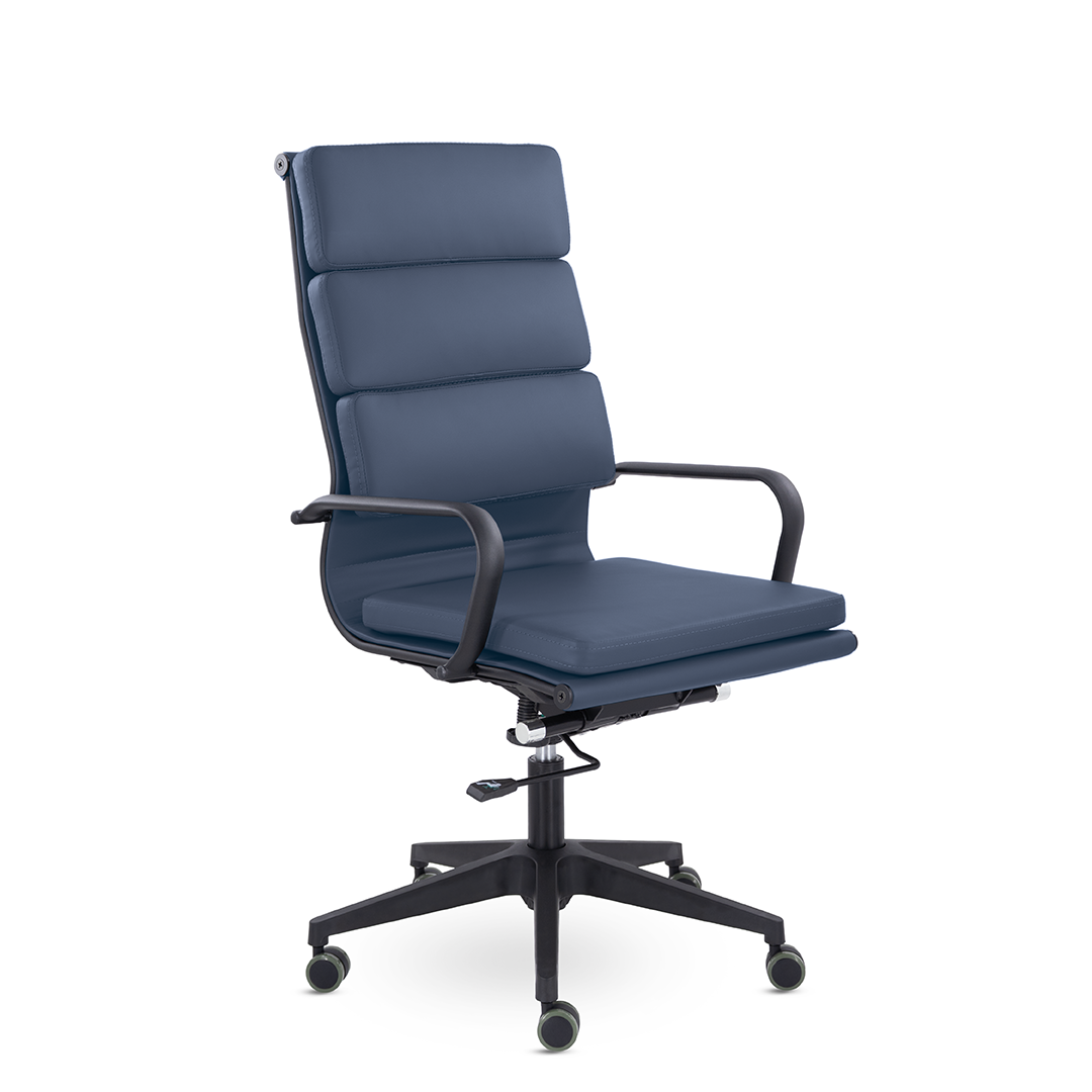 Кресло руководителя в современном металлическом каркасе. Комфорт создается благодаря мягким элементам спинки и сиденья. Черный каркас и узкая крестовина задают современный стиль креслу. Кресло отлично смотрится в строгих и открытых кабинетах.