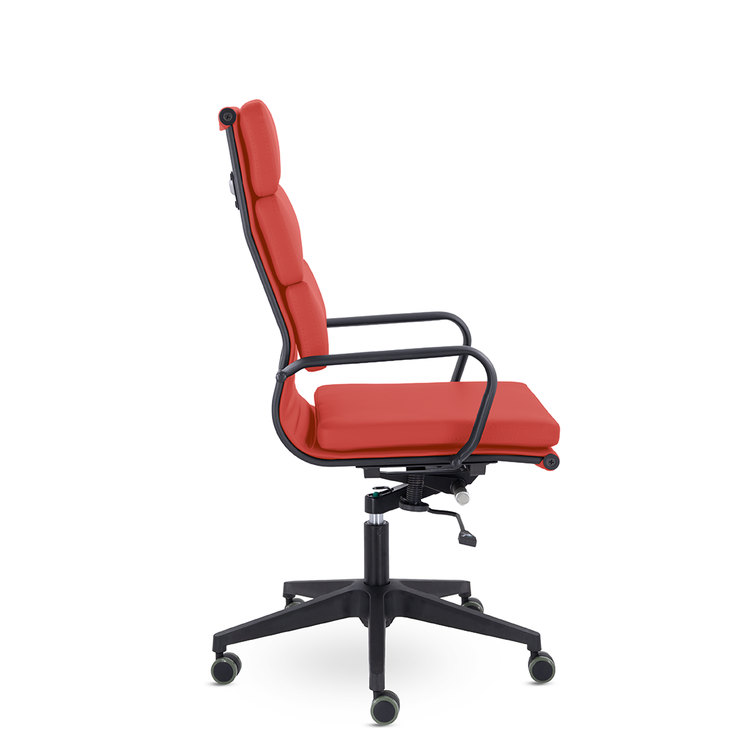 Кресло руководителя в современном металлическом каркасе. Комфорт создается благодаря мягким элементам спинки и сиденья. Черный каркас и узкая крестовина задают современный стиль креслу. Кресло отлично смотрится в строгих и открытых кабинетах.