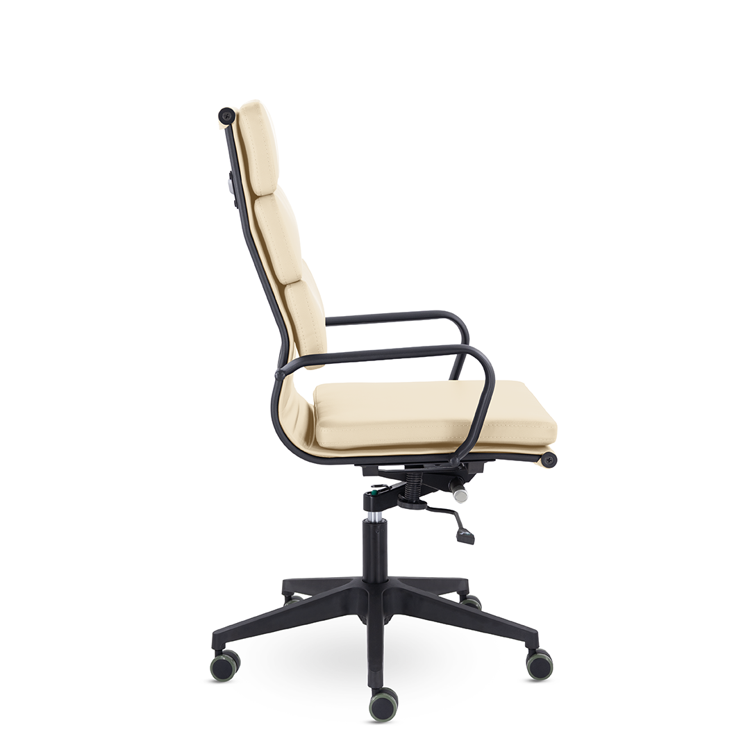 Кресло руководителя в современном металлическом каркасе. Комфорт создается благодаря мягким элементам спинки и сиденья. Черный каркас и узкая крестовина задают современный стиль креслу. Кресло отлично смотрится в строгих и открытых кабинетах.