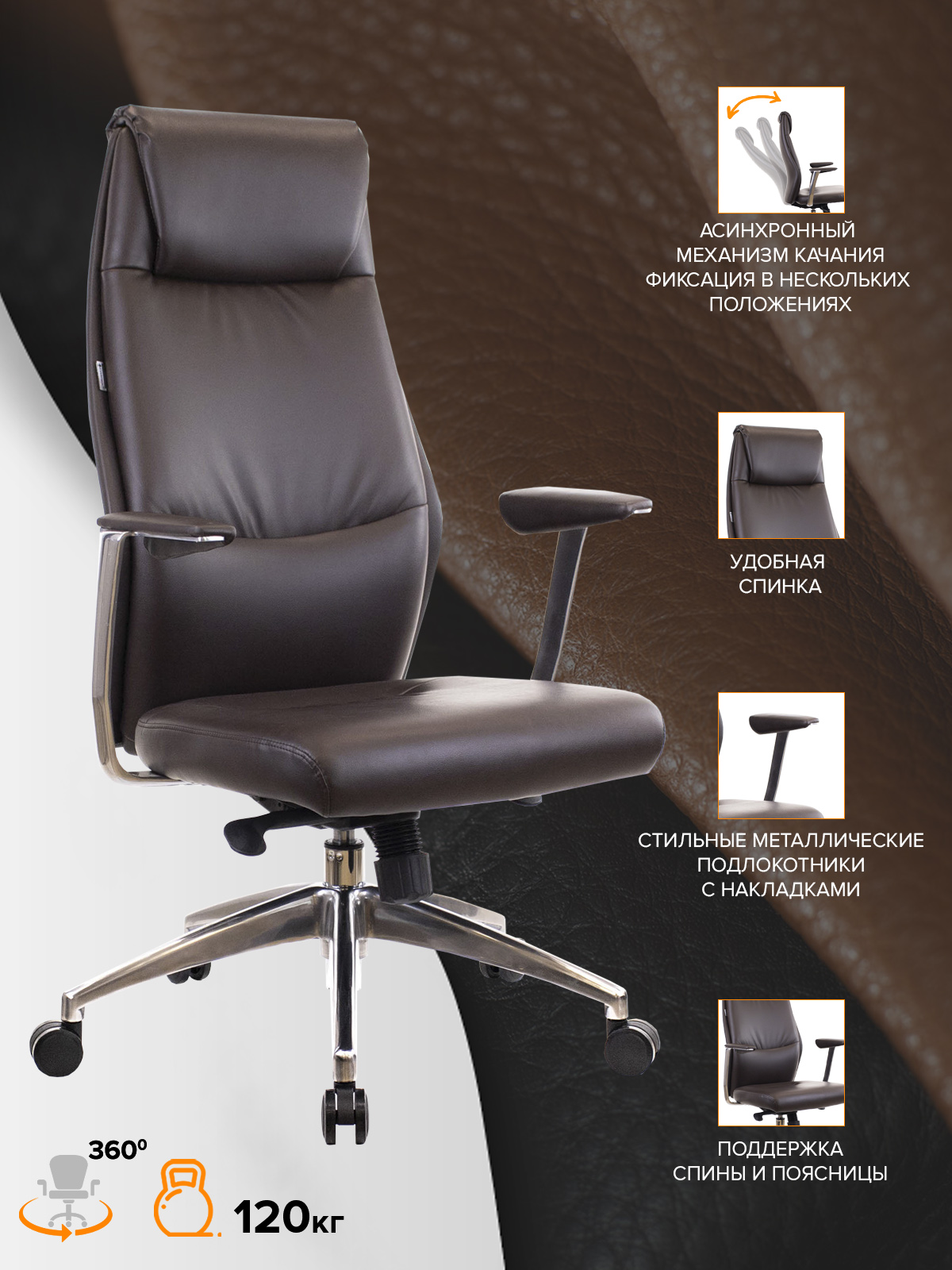 Кресло Everprof London Экокожа Коричневый EP-751 PU DB купить по цене 27075 руб. в Санкт-Петербурге — интернет магазин РЕМИ