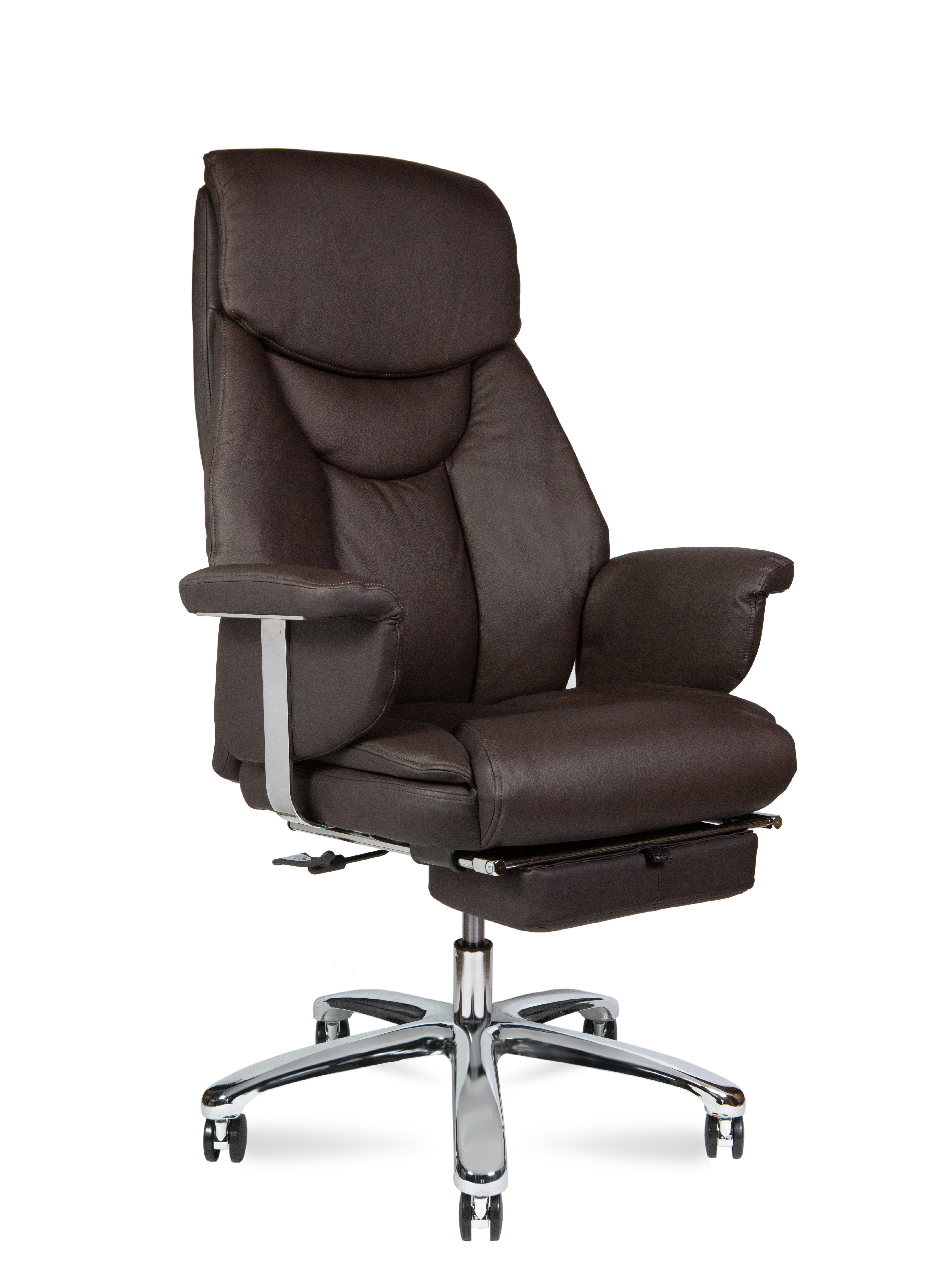 Кресло для руководителя высшего звена в классическом стиле. Обивка выполнена из высококачественной кожи. Роскошное кресло также имеет выдвижную опору для ног, которая позволяет принять лежачее положение в минуты отдыха, снимает нагрузку с позвоночника, улучшает кровообращение. Хромированный газ-патрон, ролики с вставкой "хром", хромированные части подлокотника делают модель стильной, с элементами дизайна в стиле хай-тек. Механизм качания мультиблок с возможностью фиксации в любом положении. Кресло подойдет людям высокого роста, плотной комплекции. Максимальная нагрузка 120 кг. В коже выполнена рабочая поверхность кресла. Гарантия один год.
