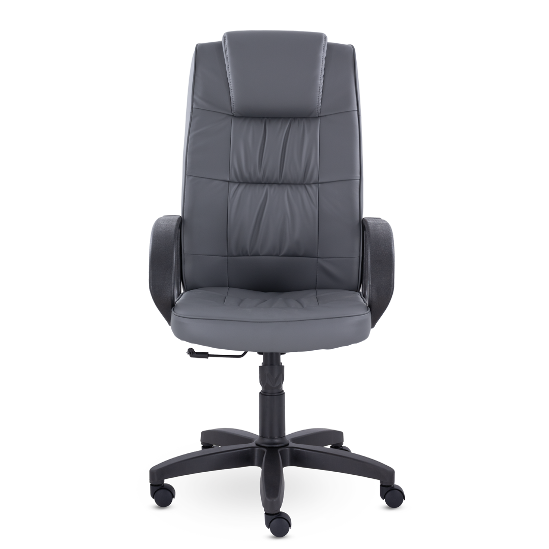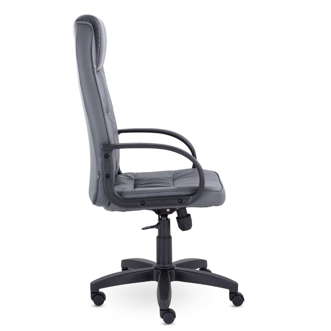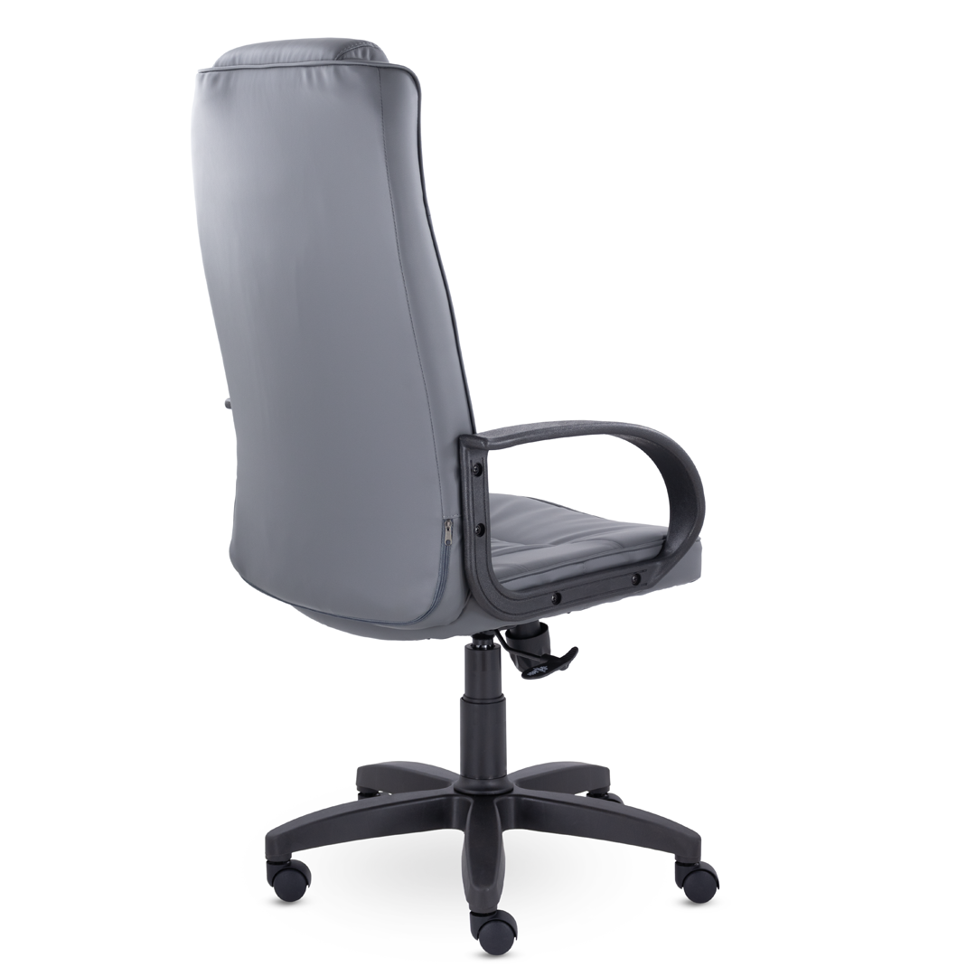Спинка кресла украшена декоративными прострочками, которые разделяют подголовник и зону поясничной поддержки. Это солидное кресло станет отличным дополнением кабинета руководителя.