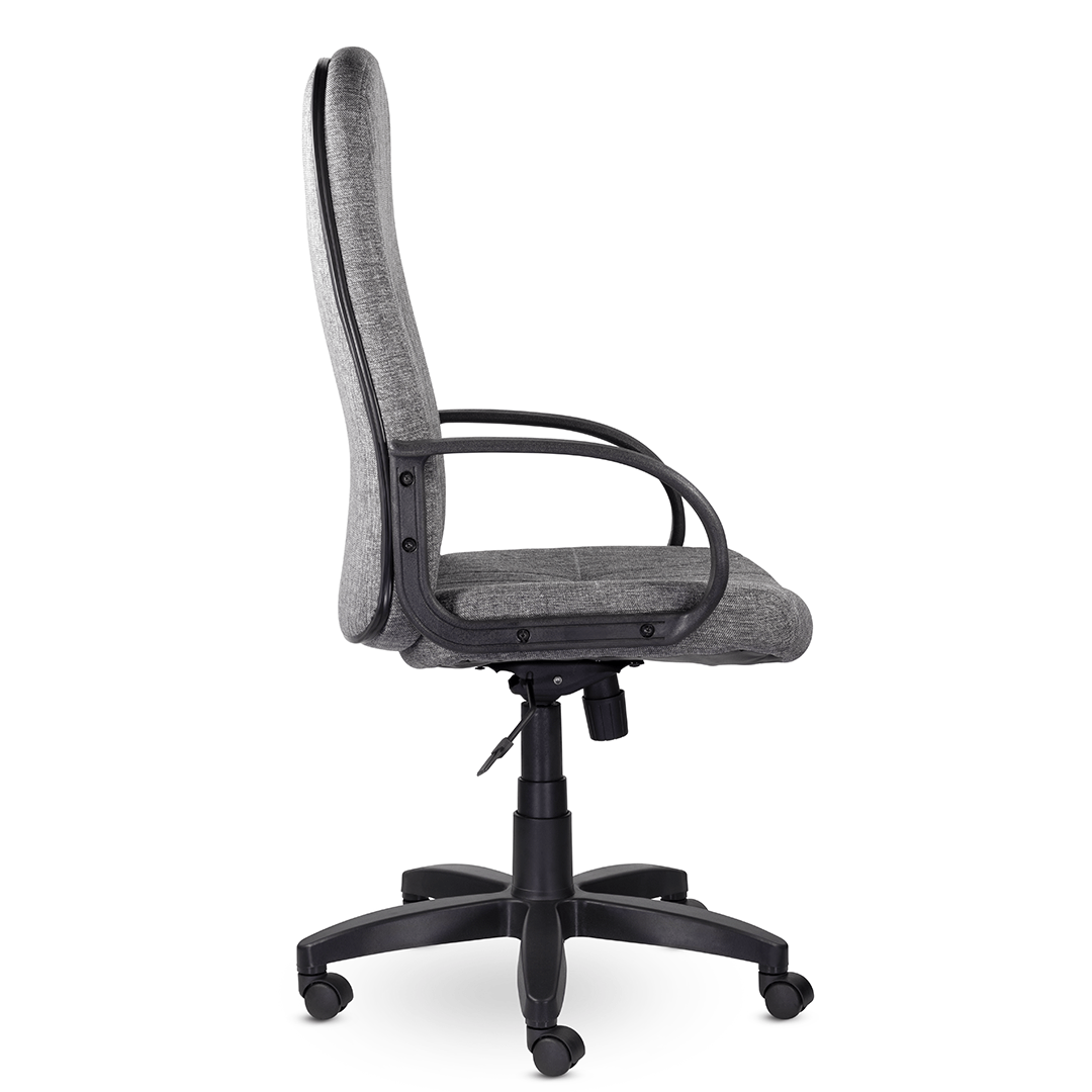 Кресло руководителя с мягкими увеличенными подушками. Широкая эргономичная спинка и глубокое сидение разделены на две части горизонтальной прострочкой. Удобные пластиковые подлокотники способствуют комфортной посадке в кресле.