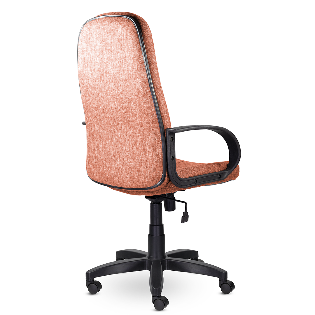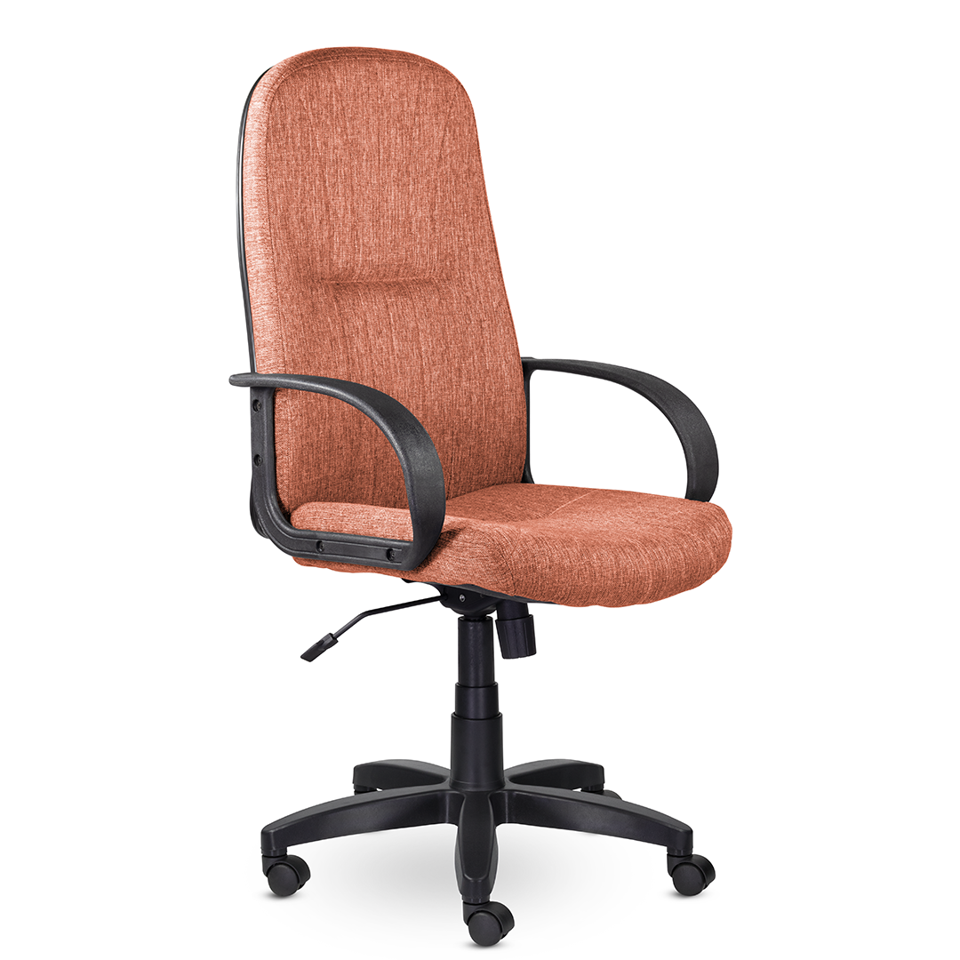Кресло руководителя с мягкими увеличенными подушками. Широкая эргономичная спинка и глубокое сидение разделены на две части горизонтальной прострочкой. Удобные пластиковые подлокотники способствуют комфортной посадке в кресле.