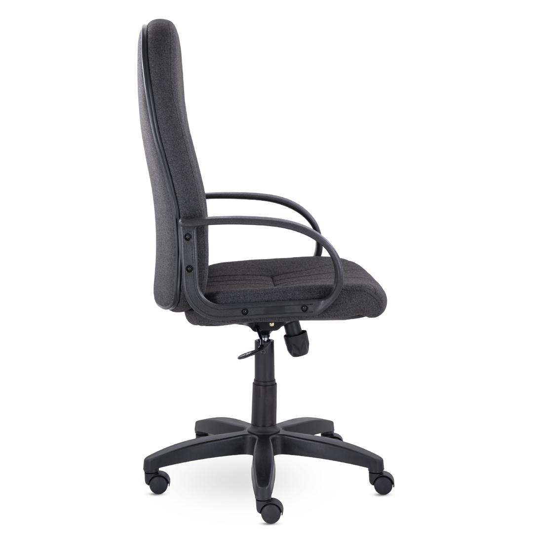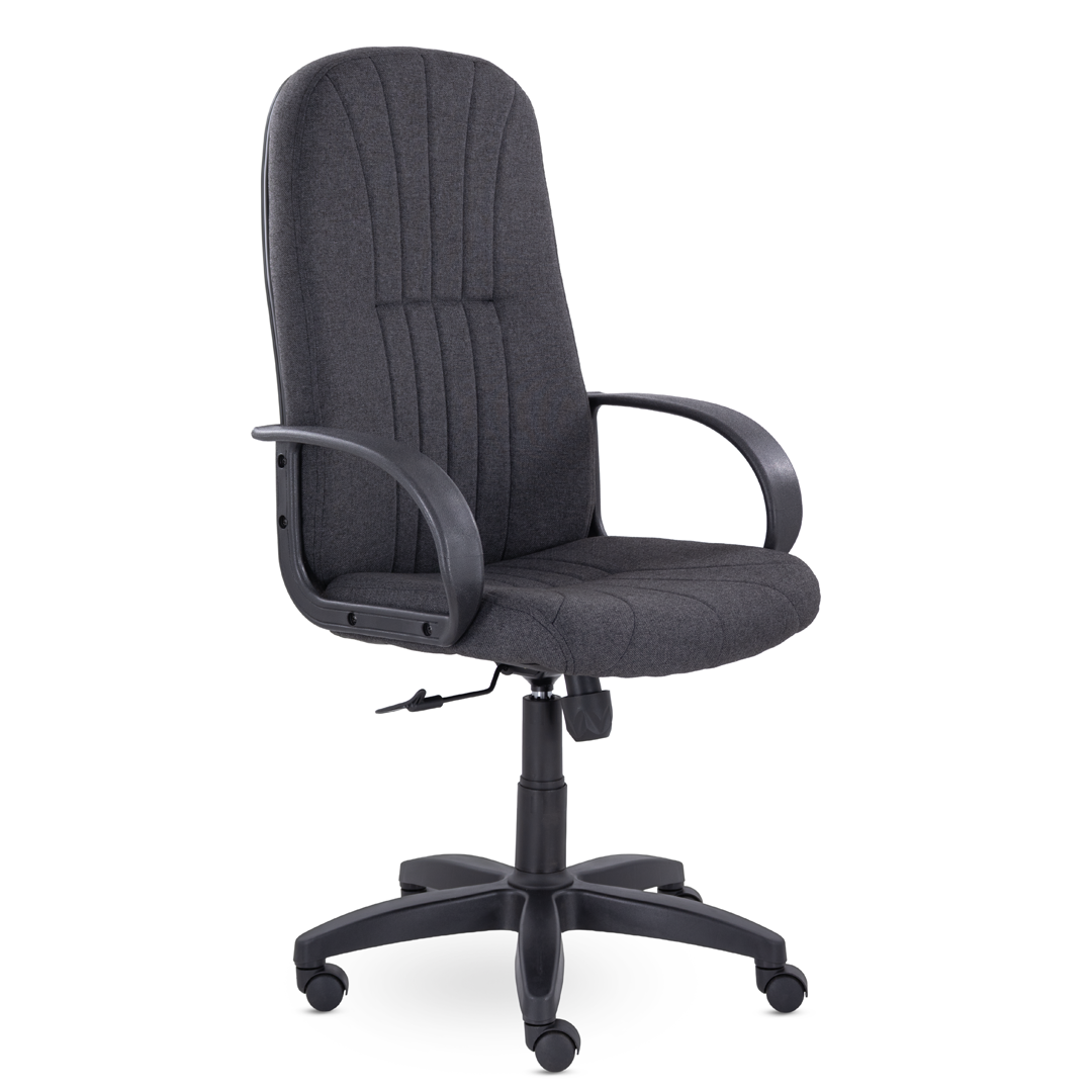 Кресло руководителя с мягкими увеличенными подушками. Широкая эргономичная спинка и глубокое сидение разделены на две части горизонтальной прострочкой. Удобные пластиковые подлокотники способствуют комфортной посадке в кресле.