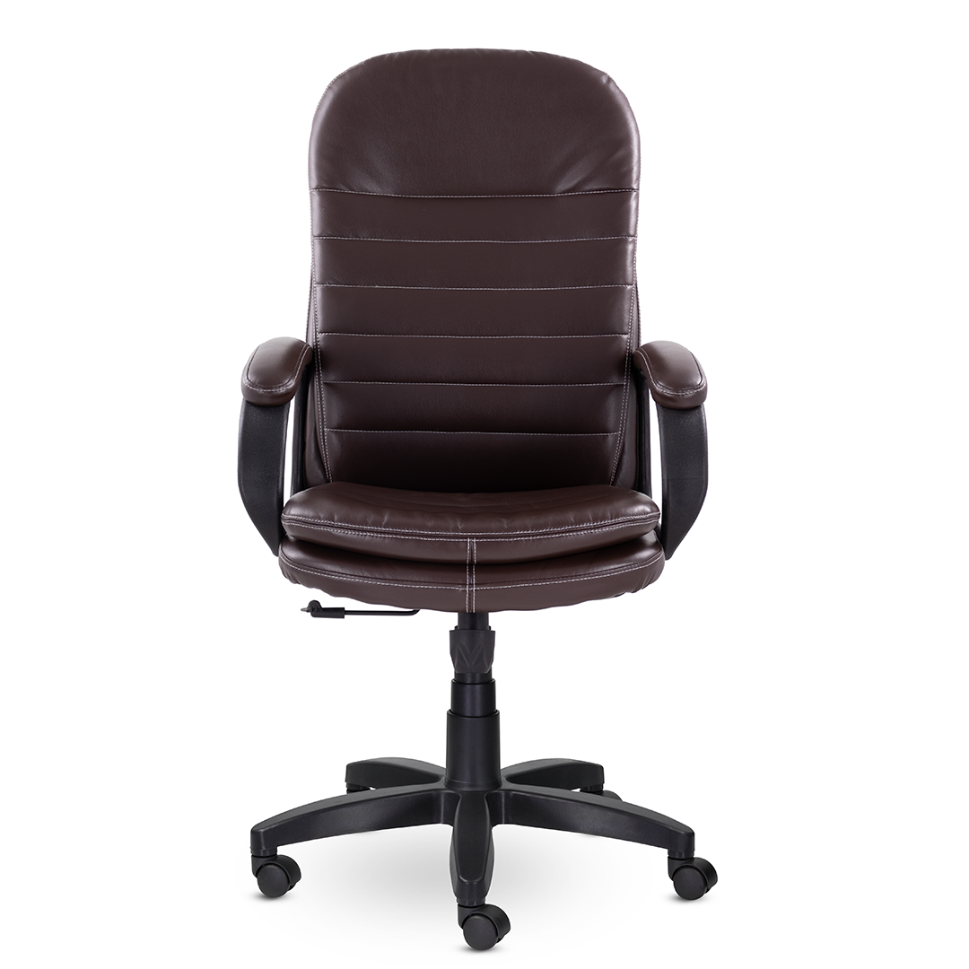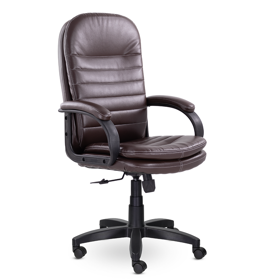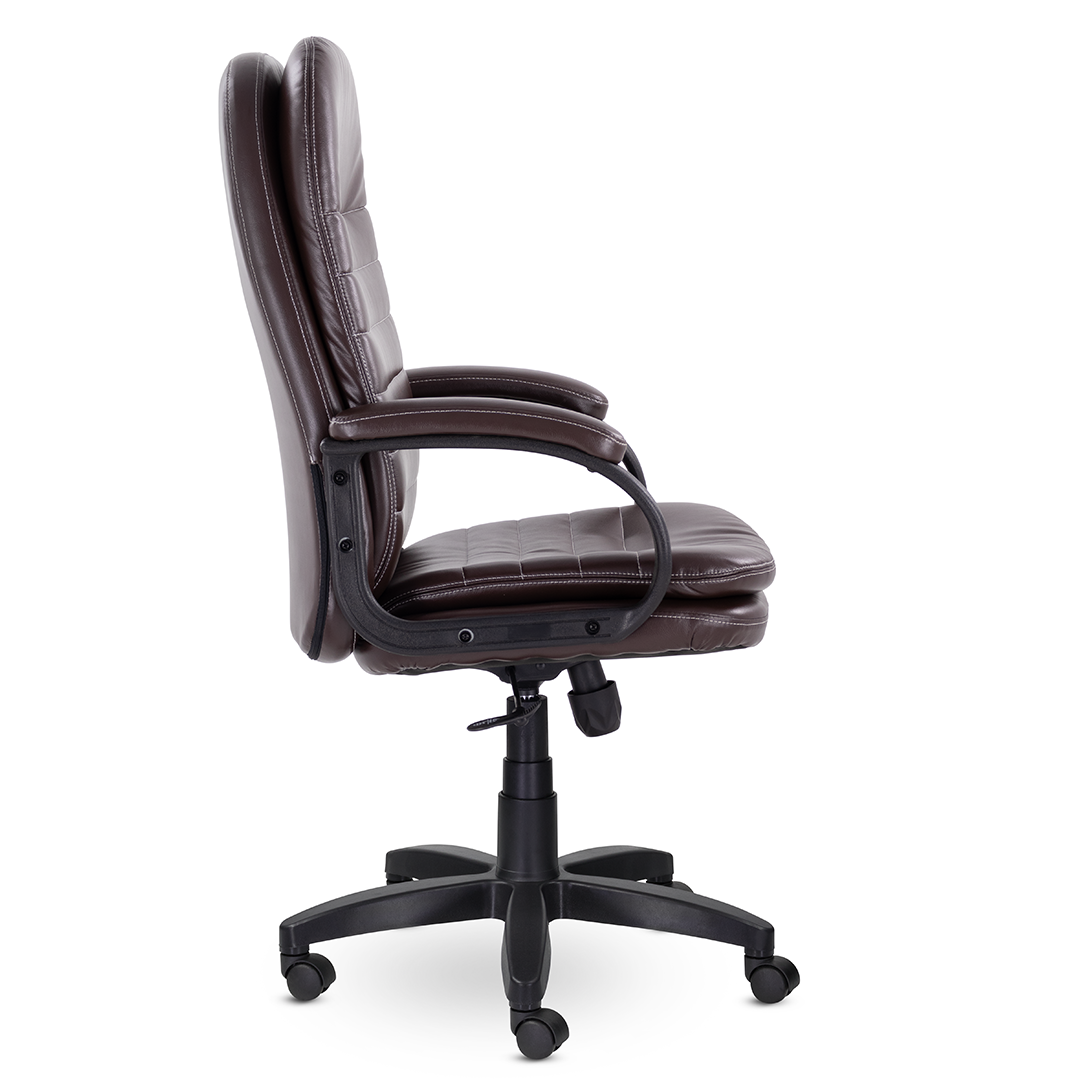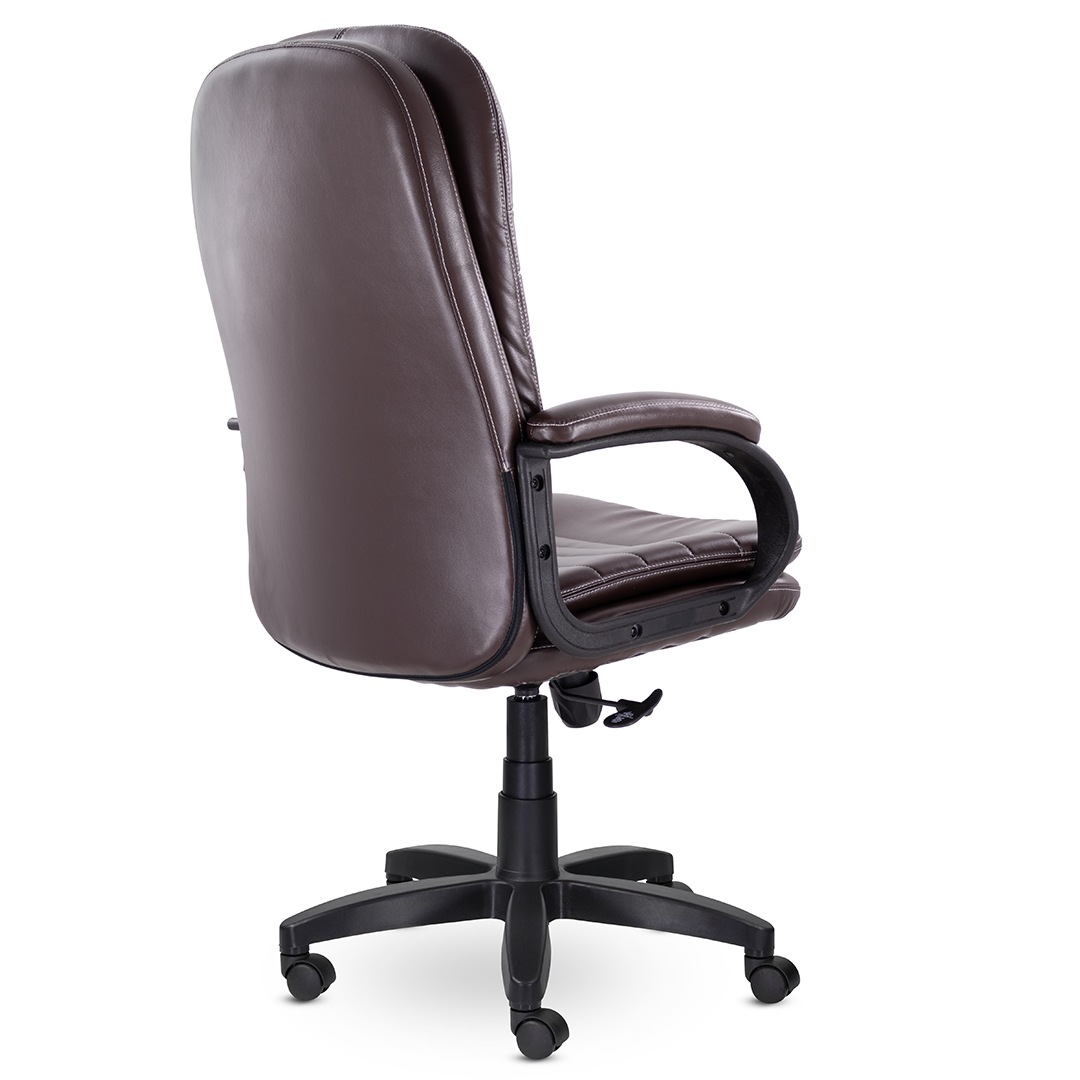 Современное кресло для руководителя, которое сочетает в себе уют и комфорт. Широкая спинка и сиденье с оригинальными мягкими подушками, обивка из высококачественной экокожи, мягкие накладки на подлокотниках создают идеальные условия для продуктивной работы. Кресло выдерживает нагрузку до 120 кг