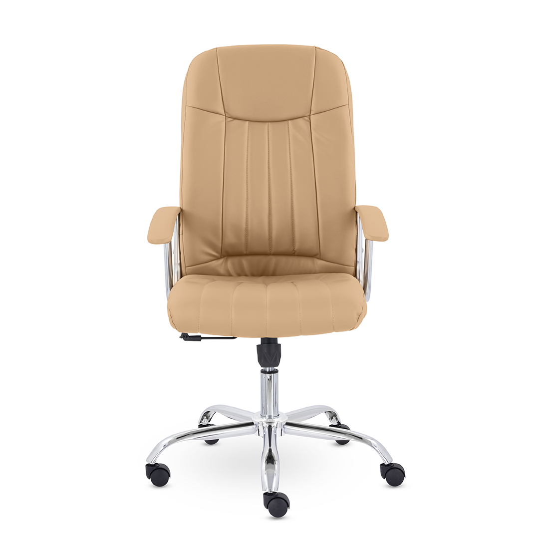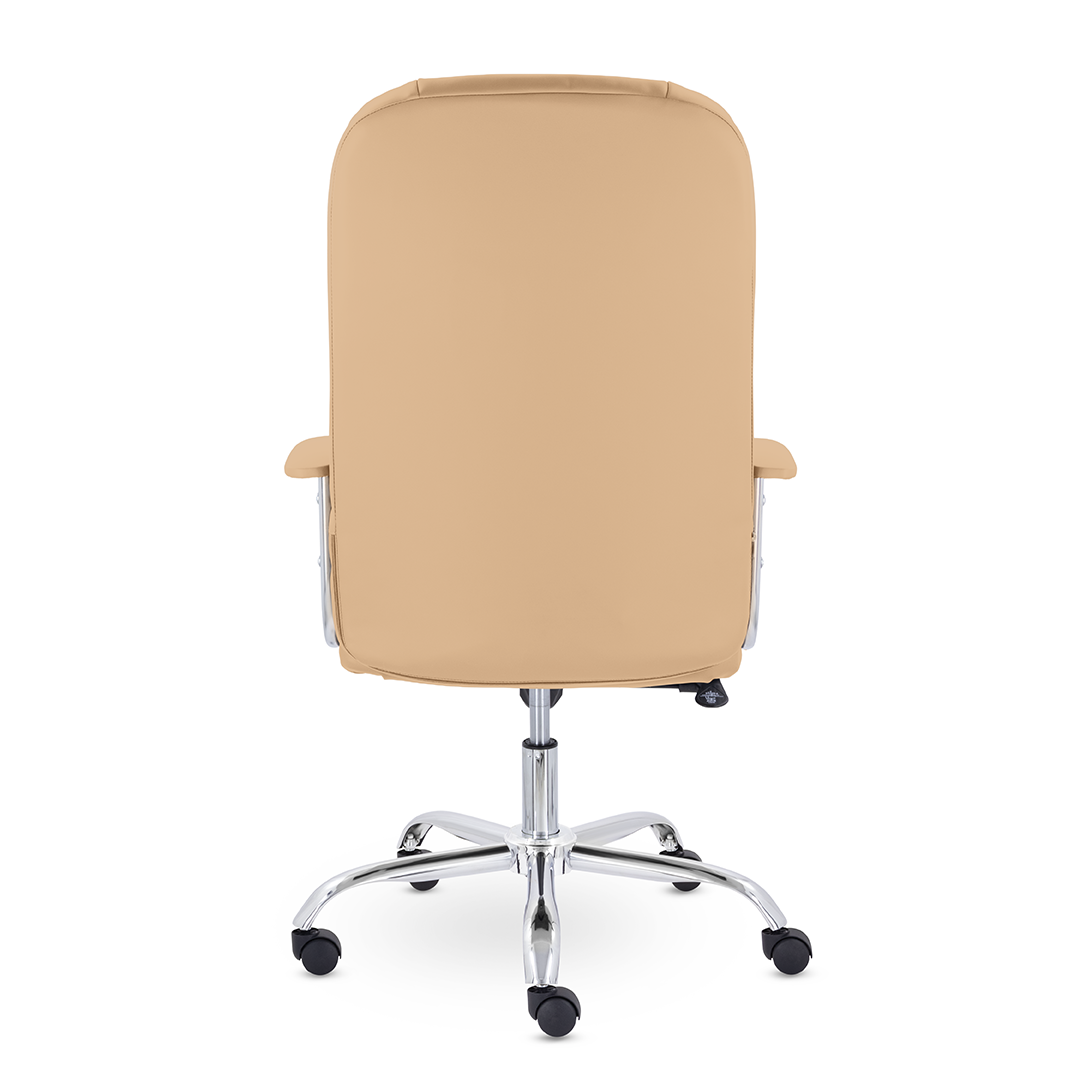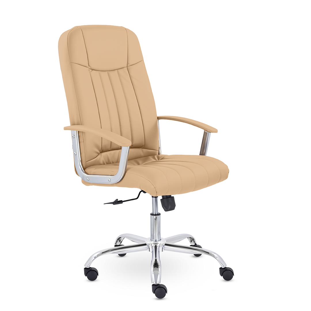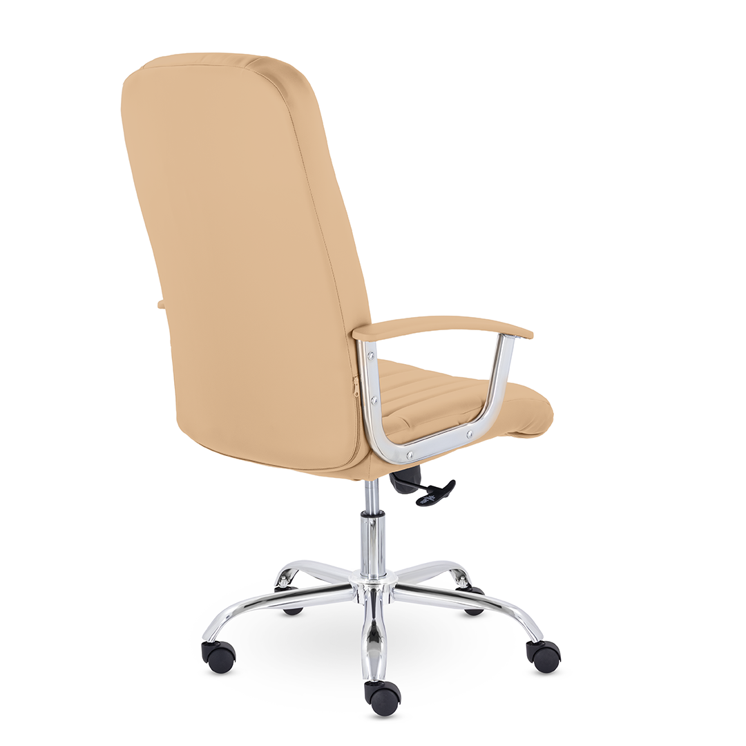 Кресло руководителя с мягкими увеличенными подушками. Широкая эргономичная спинка имеет две горизонтальные прострочки, которые отделяют подголовник от основной части спинки. Благодаря глубокому сиденью, в кресле будет удобно человеку среднего и высокого роста. Длинные хромированные подлокотники способствуют комфортной посадке в кресле.
