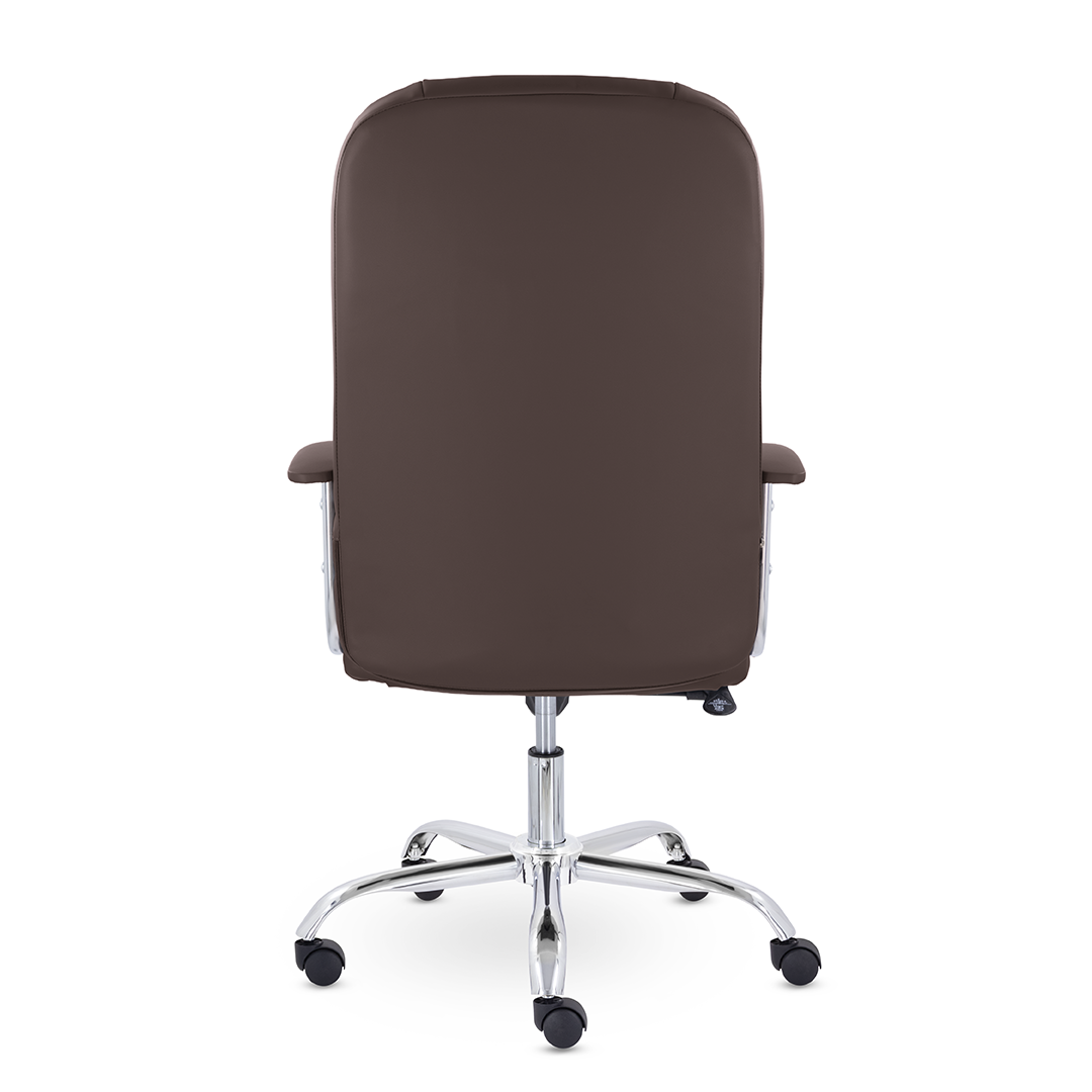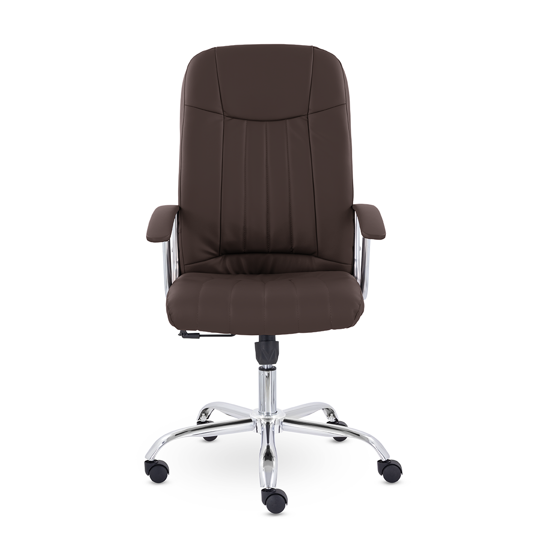 Кресло руководителя с мягкими увеличенными подушками. Широкая эргономичная спинка имеет две горизонтальные прострочки, которые отделяют подголовник от основной части спинки. Благодаря глубокому сиденью, в кресле будет удобно человеку среднего и высокого роста. Длинные хромированные подлокотники способствуют комфортной посадке в кресле.