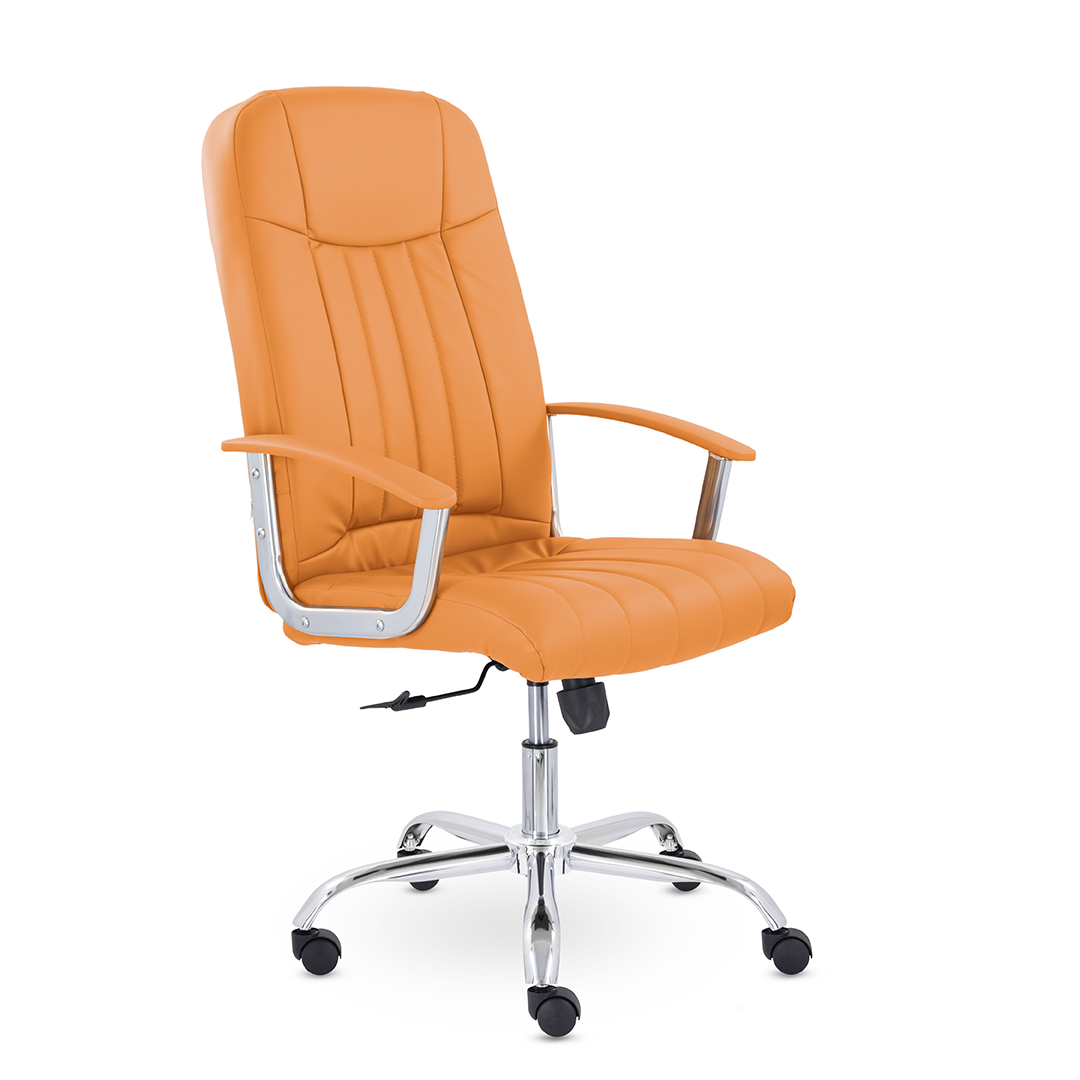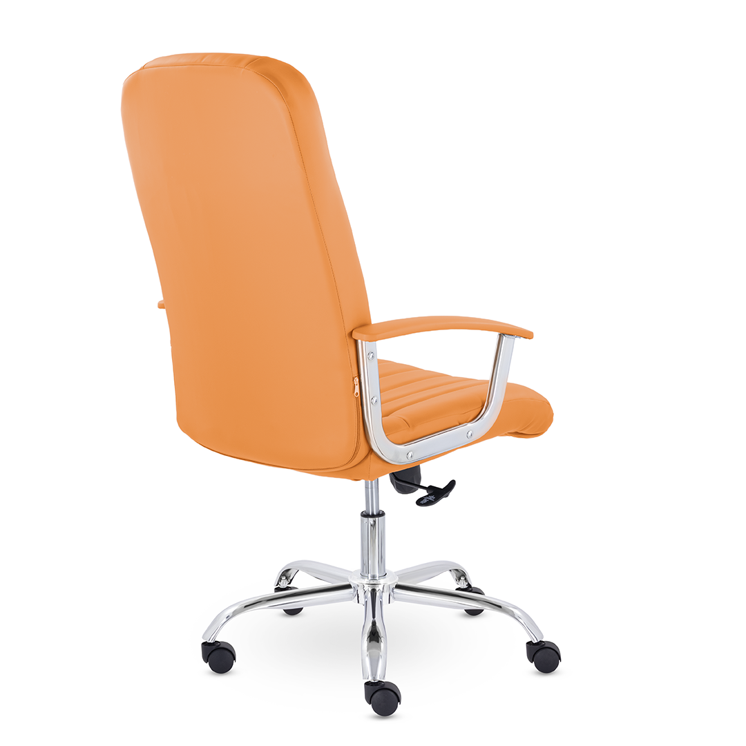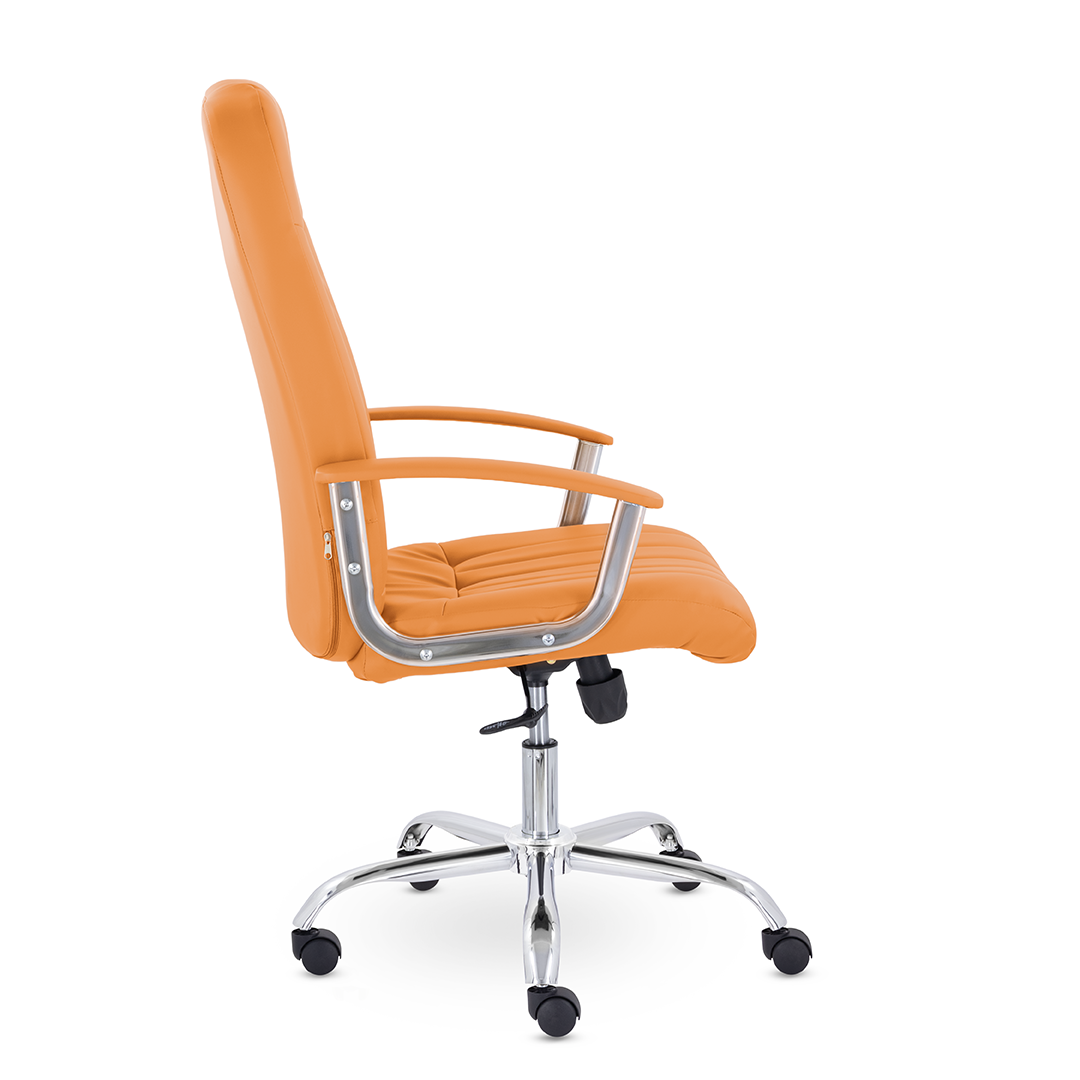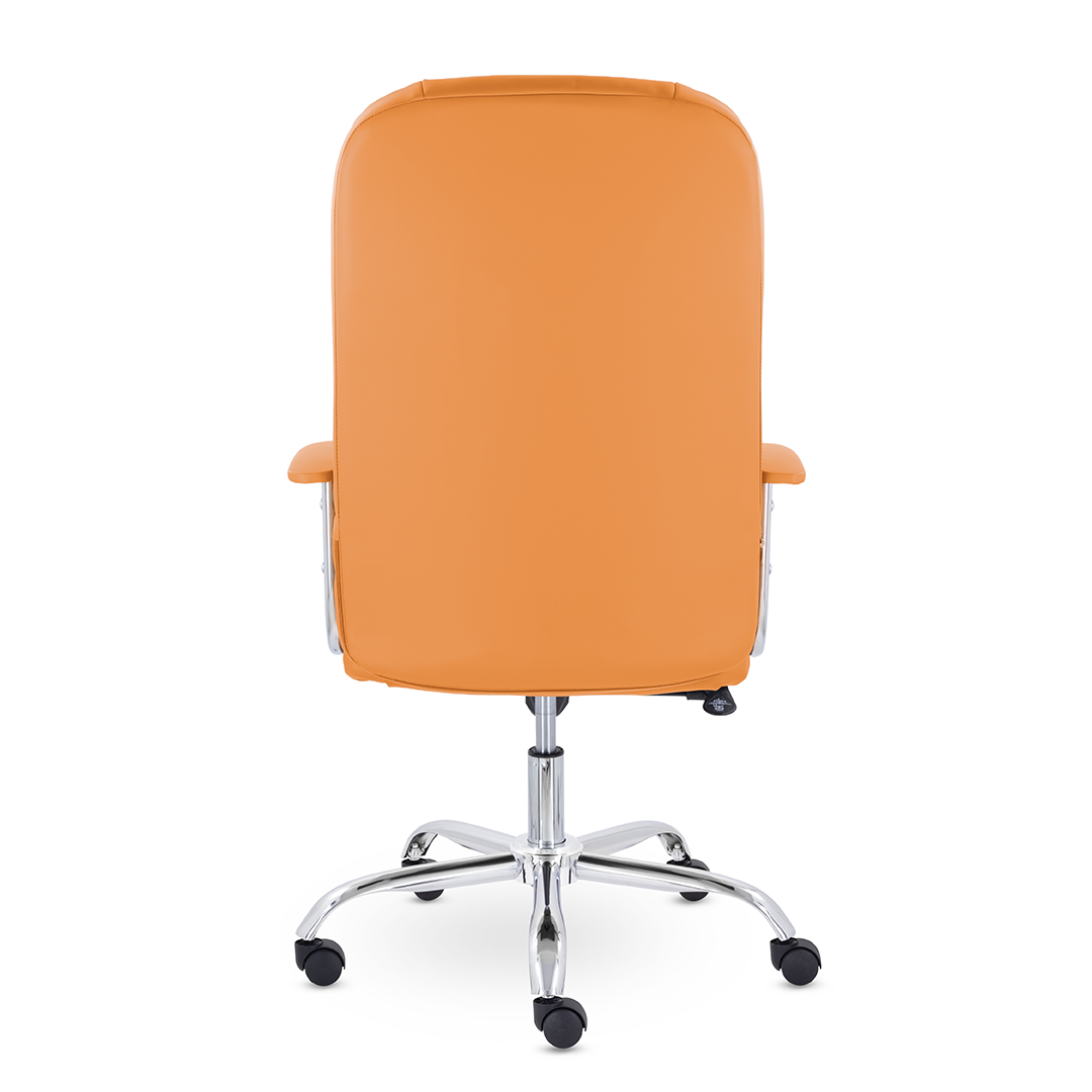 Кресло руководителя с мягкими увеличенными подушками. Широкая эргономичная спинка имеет две горизонтальные прострочки, которые отделяют подголовник от основной части спинки. Благодаря глубокому сиденью, в кресле будет удобно человеку среднего и высокого роста. Длинные хромированные подлокотники способствуют комфортной посадке в кресле.