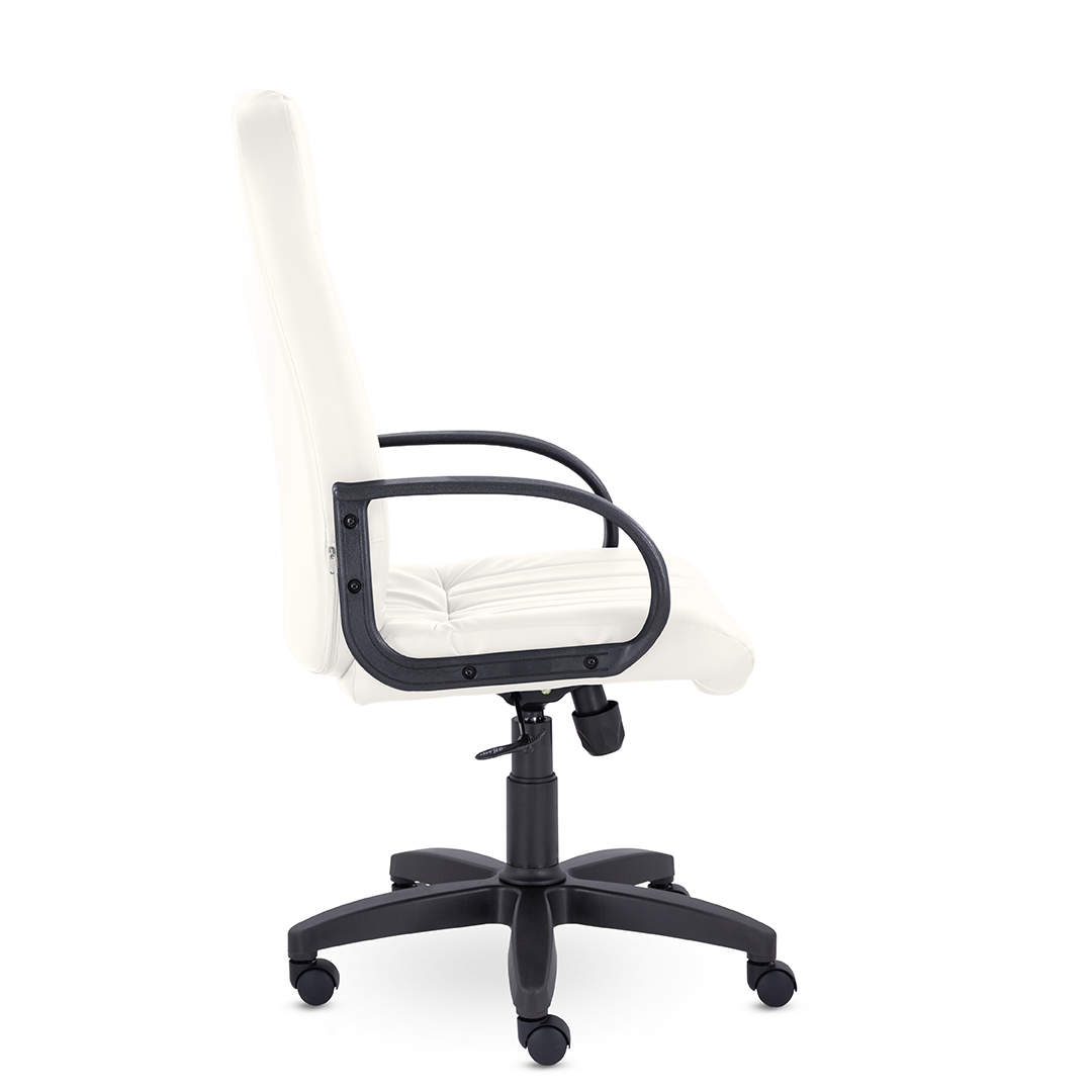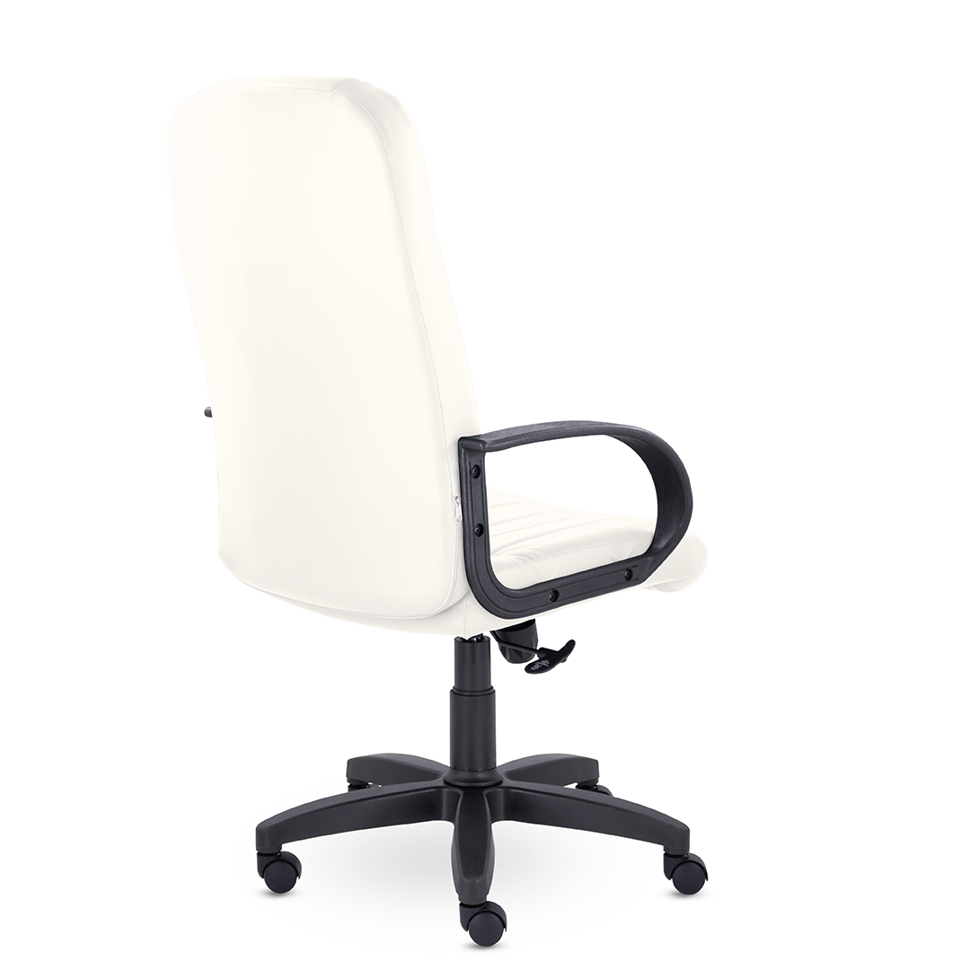 Кресло руководителя с мягкими увеличенными подушками. Широкая эргономичная спинка имеет две горизонтальные прострочки, которые отделяют подголовник от основной части спинки. Благодаря глубокому сиденью, в кресле будет удобно человеку среднего и высокого роста. Длинные пластиковые подлокотники способствуют комфортной посадке в кресле.