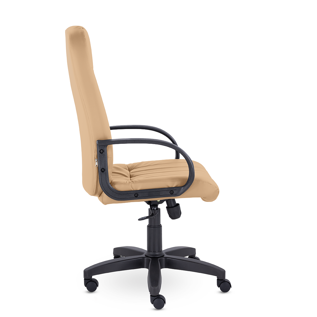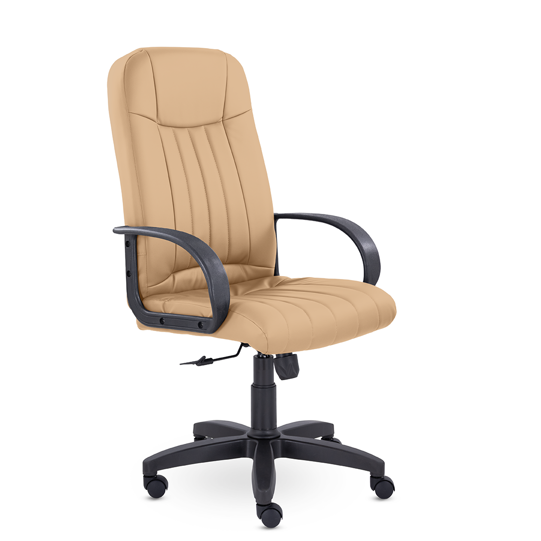 Кресло руководителя с мягкими увеличенными подушками. Широкая эргономичная спинка имеет две горизонтальные прострочки, которые отделяют подголовник от основной части спинки. Благодаря глубокому сиденью, в кресле будет удобно человеку среднего и высокого роста. Длинные пластиковые подлокотники способствуют комфортной посадке в кресле.