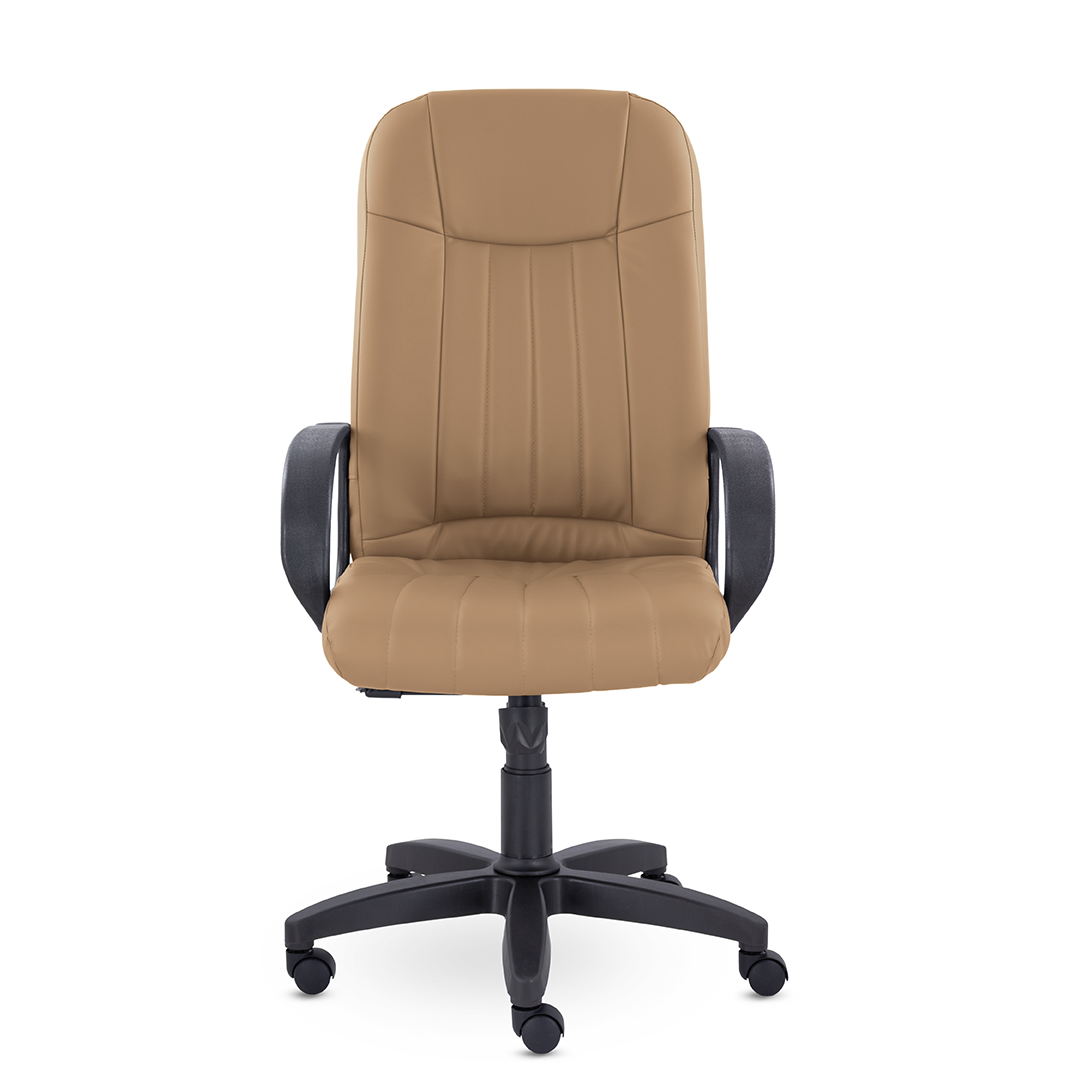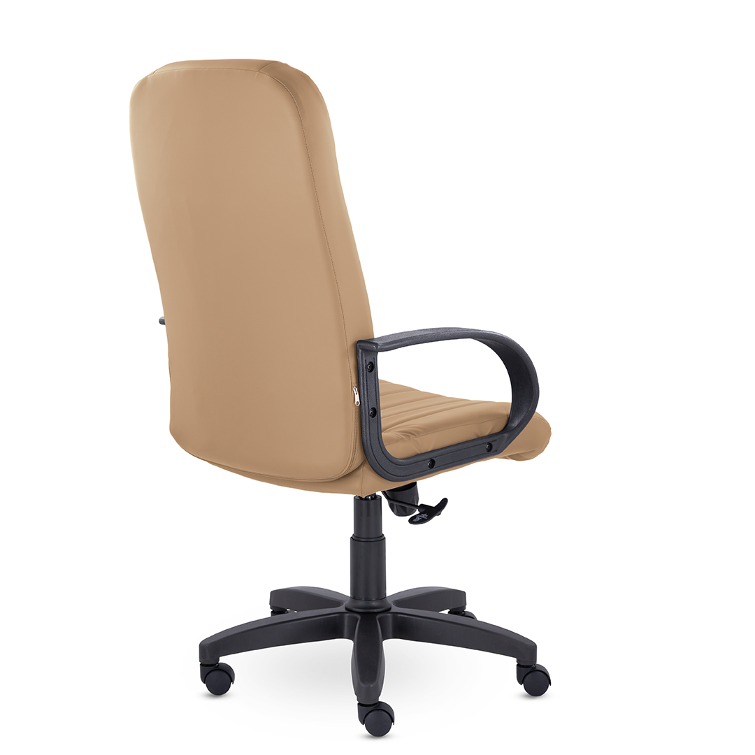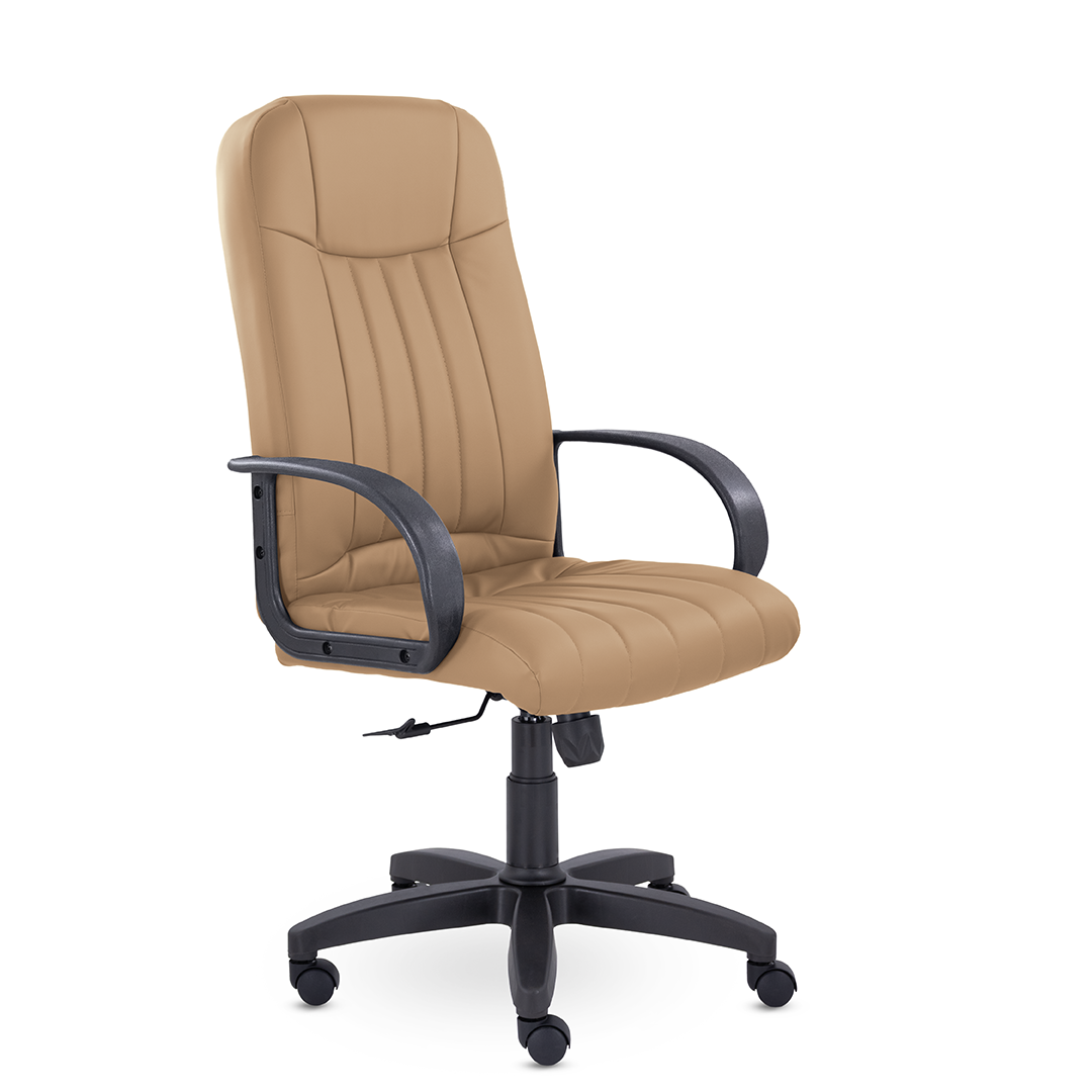 Кресло руководителя с мягкими увеличенными подушками. Широкая эргономичная спинка имеет две горизонтальные прострочки, которые отделяют подголовник от основной части спинки. Благодаря глубокому сиденью, в кресле будет удобно человеку среднего и высокого роста. Длинные пластиковые подлокотники способствуют комфортной посадке в кресле.
