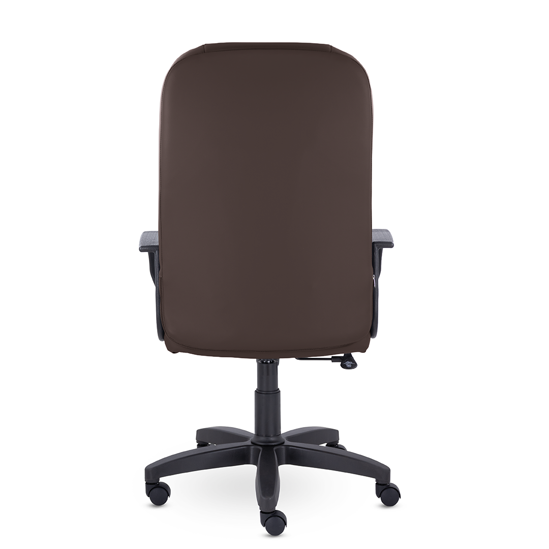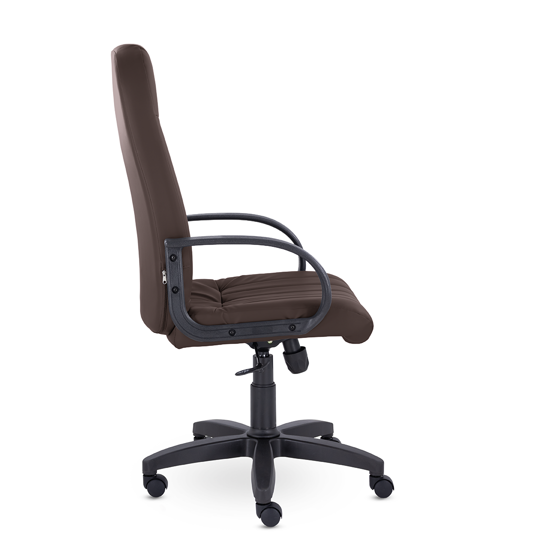 Кресло руководителя с мягкими увеличенными подушками. Широкая эргономичная спинка имеет две горизонтальные прострочки, которые отделяют подголовник от основной части спинки. Благодаря глубокому сиденью, в кресле будет удобно человеку среднего и высокого роста. Длинные пластиковые подлокотники способствуют комфортной посадке в кресле.