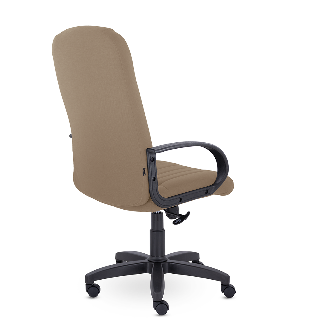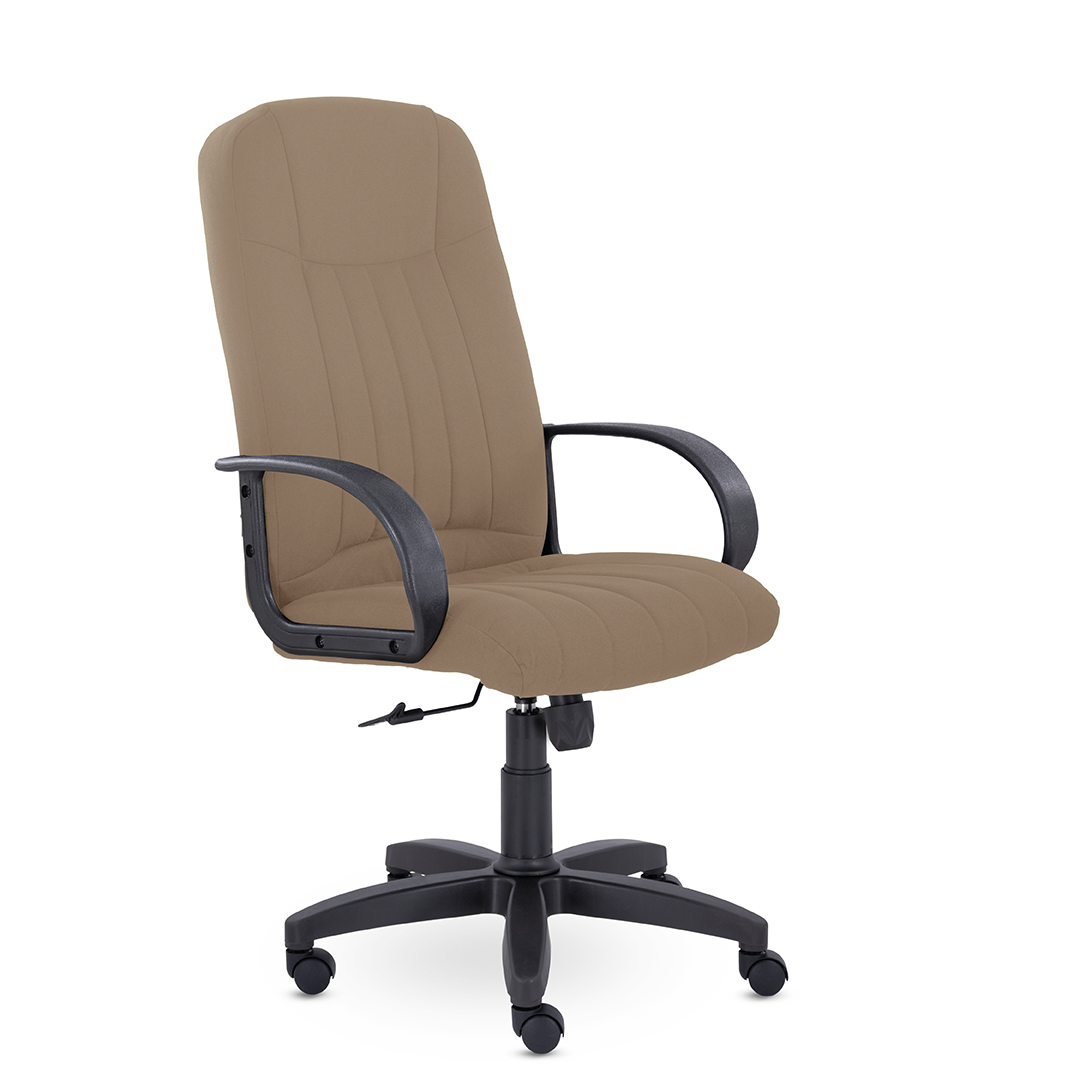 Кресло руководителя с мягкими увеличенными подушками. Широкая эргономичная спинка имеет две горизонтальные прострочки, которые отделяют подголовник от основной части спинки. Благодаря глубокому сиденью, в кресле будет удобно человеку среднего и высокого роста. Длинные пластиковые подлокотники способствуют комфортной посадке в кресле.