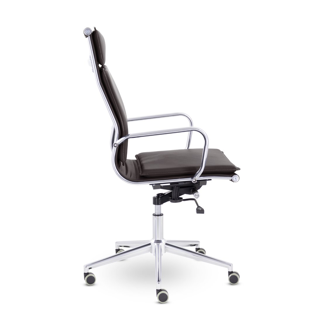 Лучший выбор современного руководителя. Работайте с удовольствием, вдохновляйтесь, принимайте важные решения! Проводить время в этом кресле - одно удовольствие. Ощущение комфорта благодаря мягким элементам подголовника, спинки и сиденья, зеркальный хромированный каркас и узкая крестовина задают современный стиль креслу. Популярное в мире и часто встречающееся в эпизодах, не только в зарубежных, но и в российских фильмах.