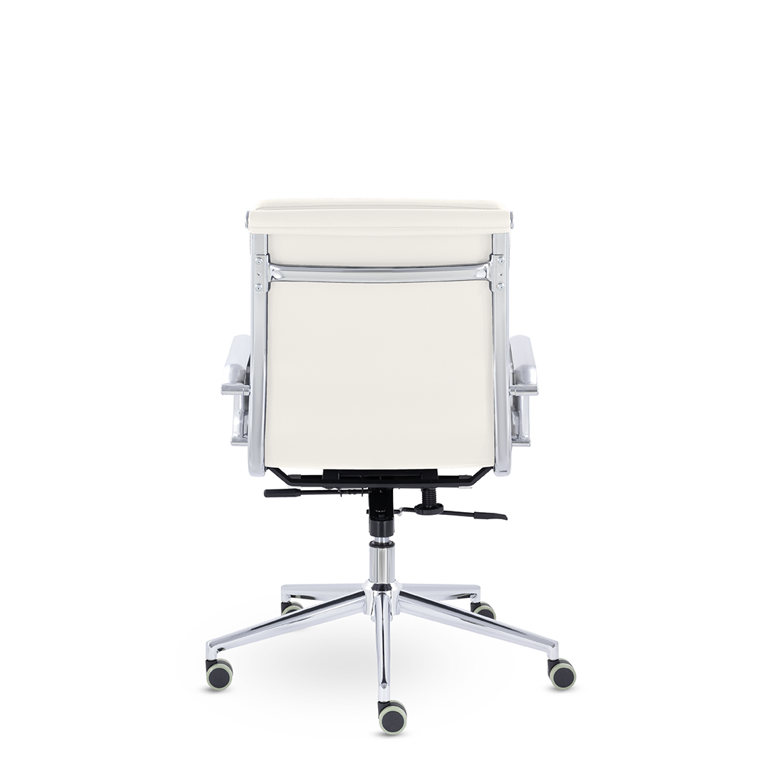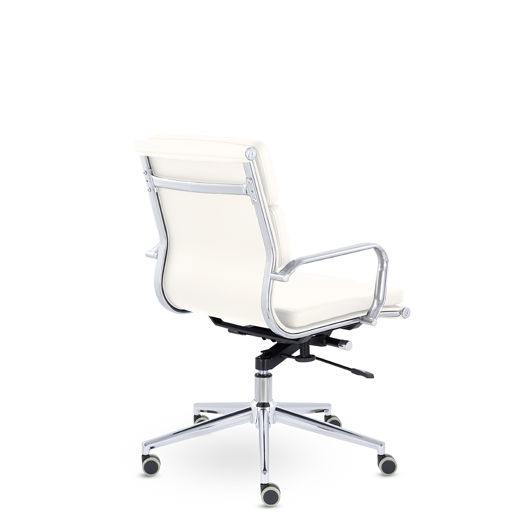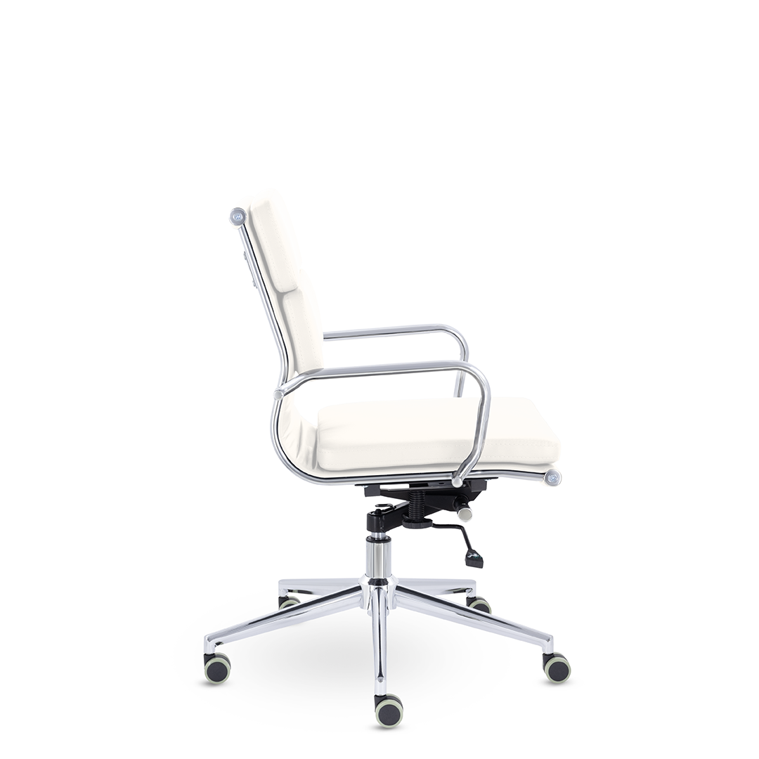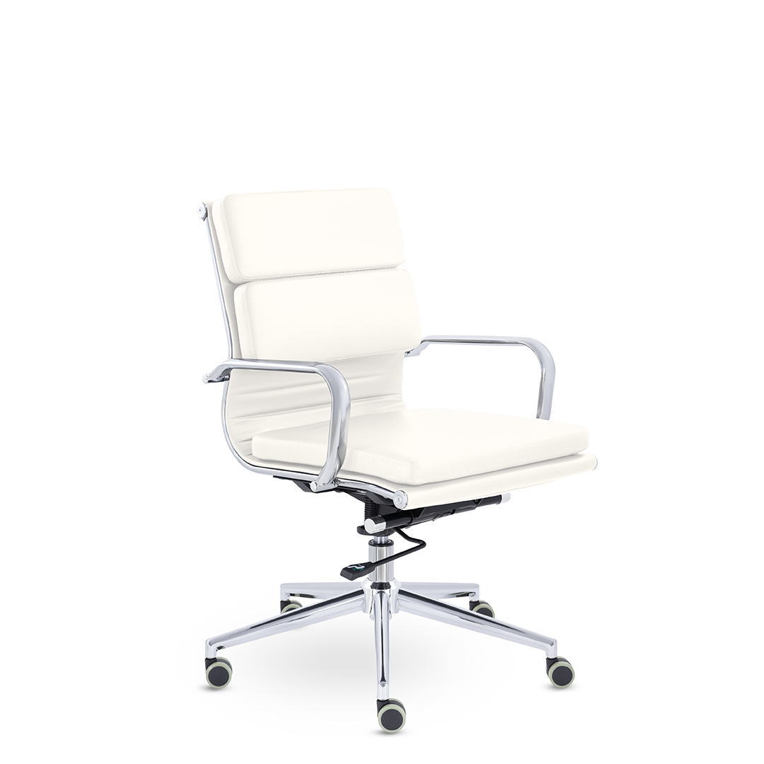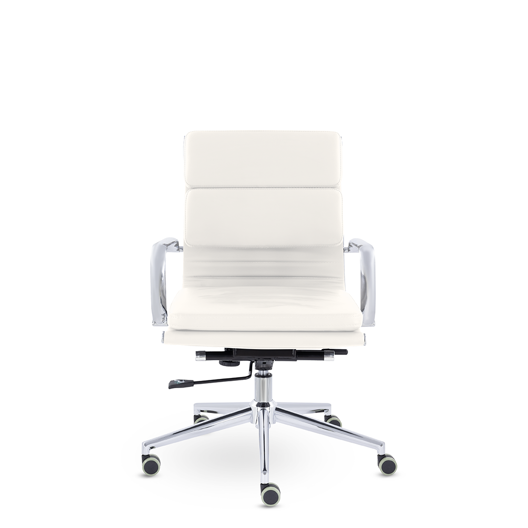 Кресло руководителя в современном металлическом каркасе. Комфорт создается благодаря мягким элементам спинки и сиденья. Зеркальный хромированный каркас и узкая крестовина задают современный стиль креслу. Кресло отлично смотрится в строгих и открытых кабинетах.