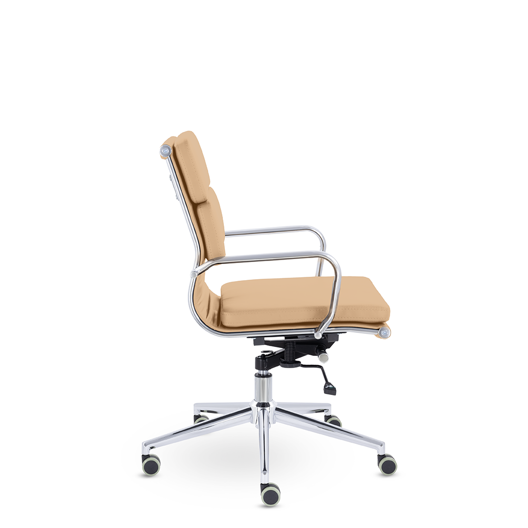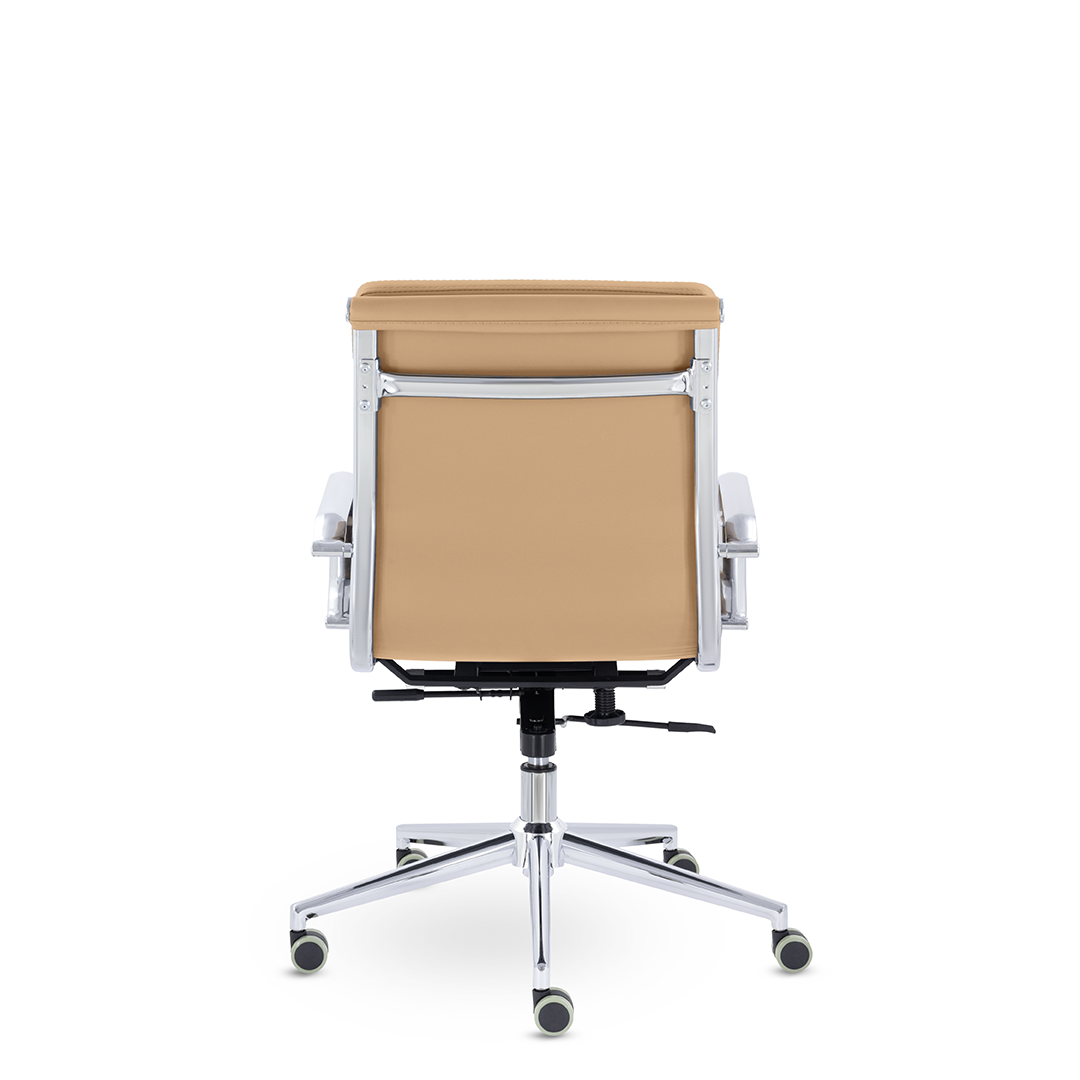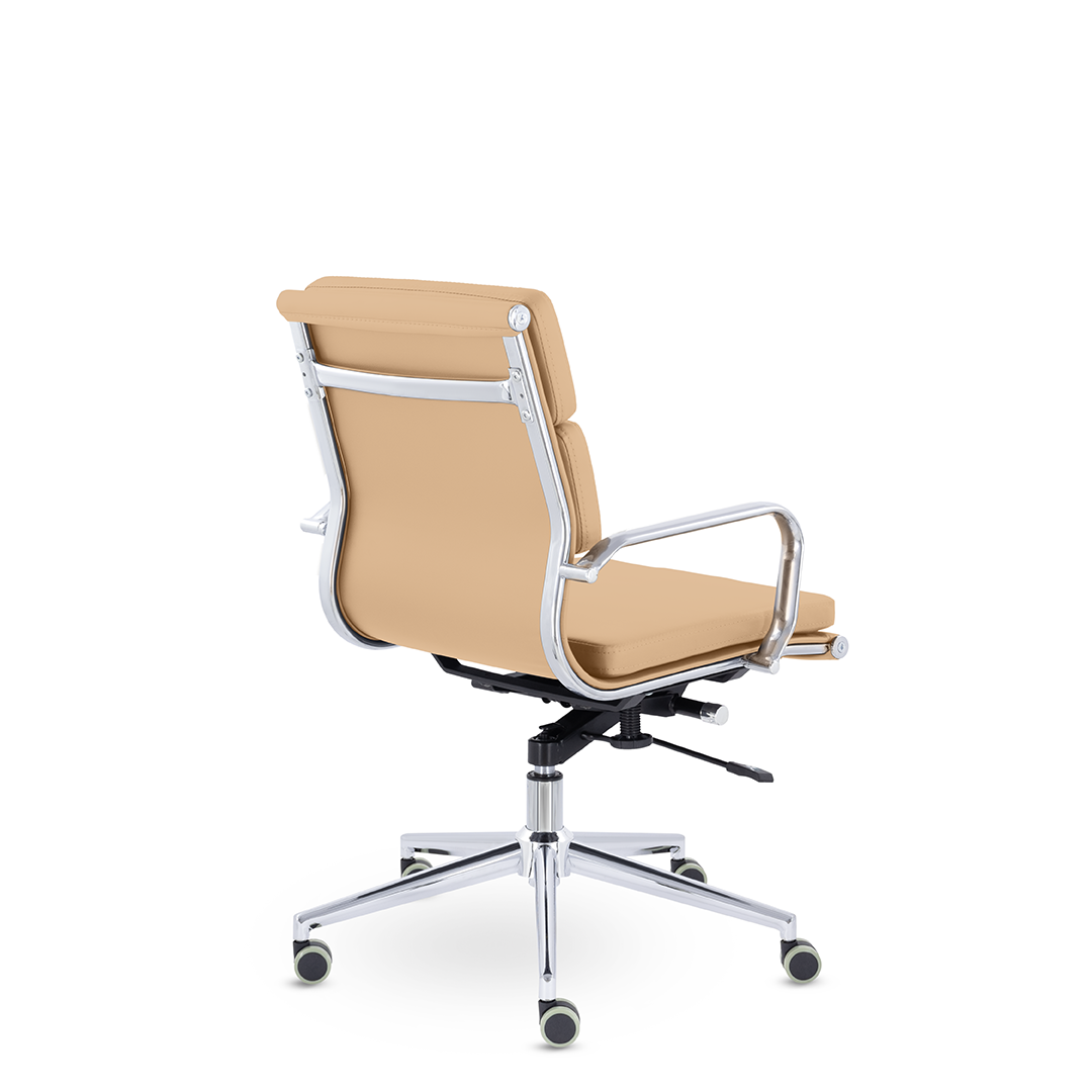 Кресло руководителя в современном металлическом каркасе. Комфорт создается благодаря мягким элементам спинки и сиденья. Зеркальный хромированный каркас и узкая крестовина задают современный стиль креслу. Кресло отлично смотрится в строгих и открытых кабинетах.