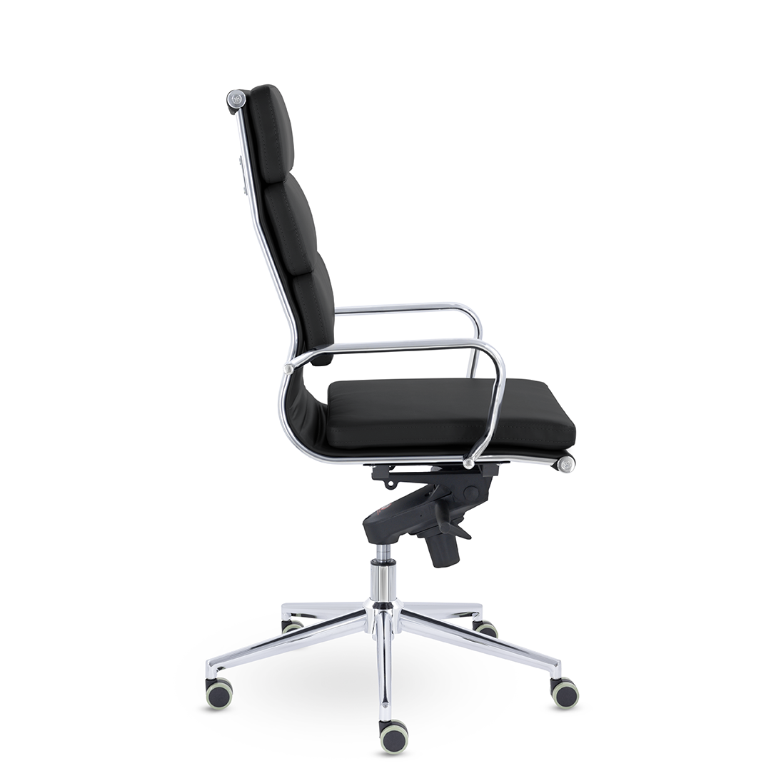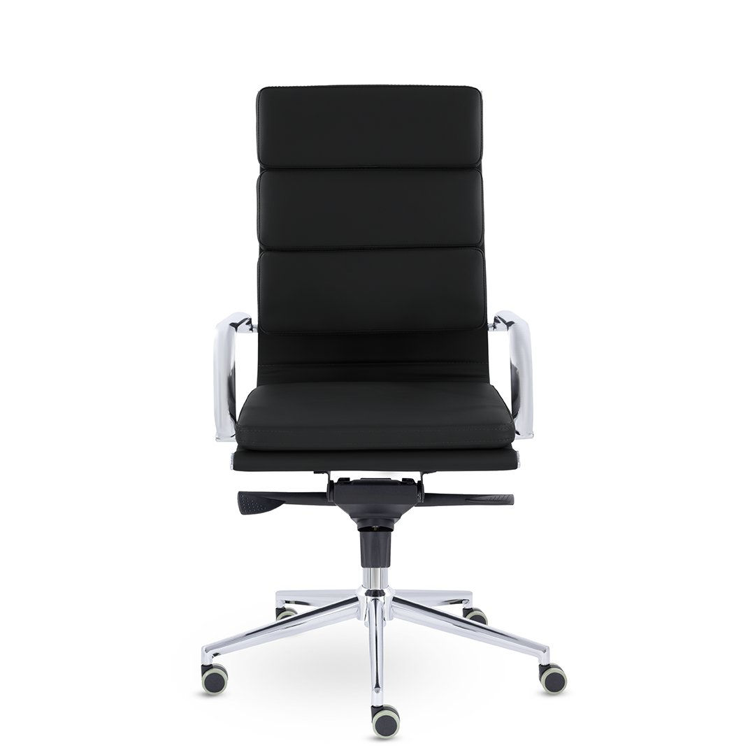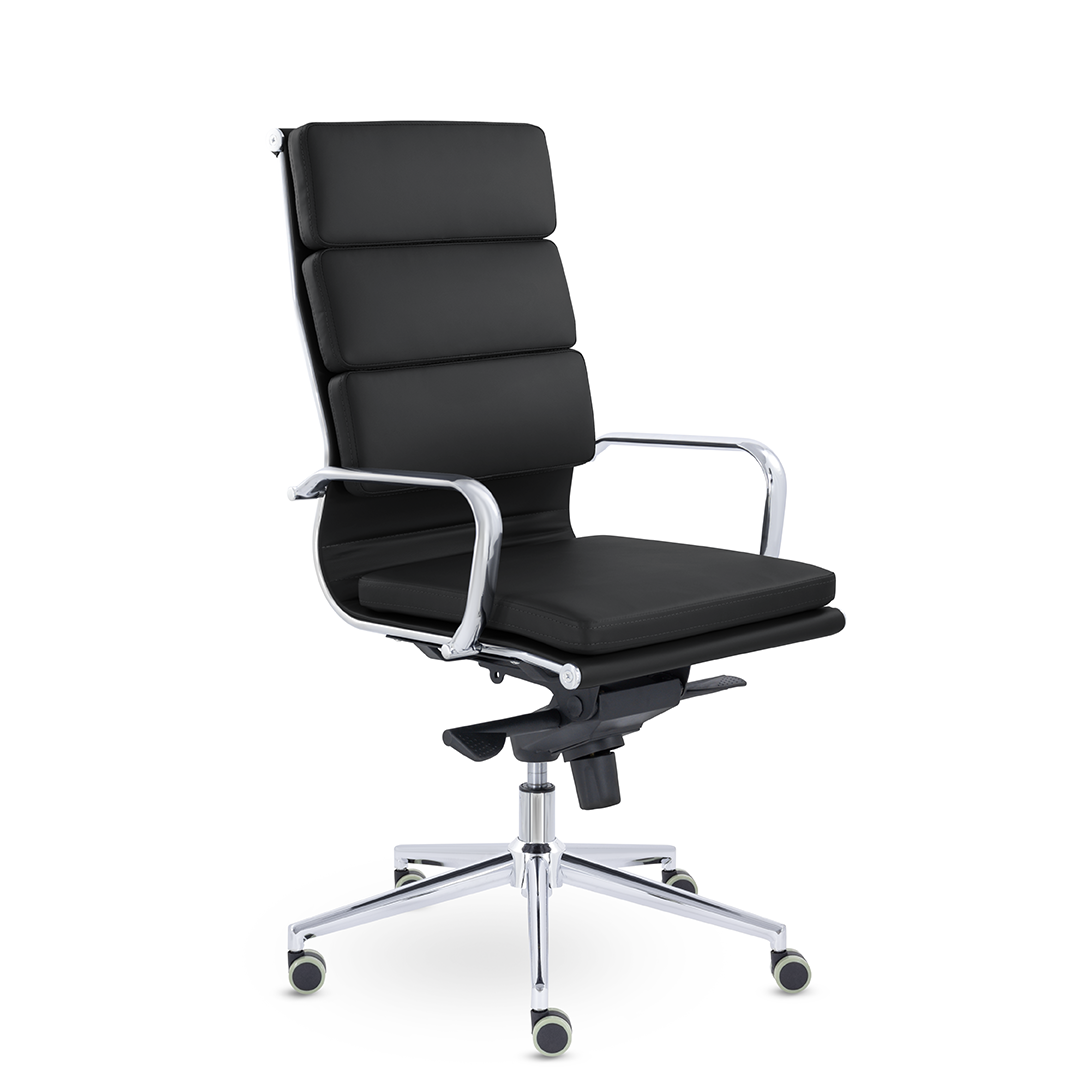 Кресло руководителя в современном металлическом каркасе. Комфорт создается благодаря мягким элементам спинки и сиденья. Зеркальный хромированный каркас и узкая крестовина задают современный стиль. Кресло отлично смотрится в строгих и открытых кабинетах. Механизм качания - мультиблок.