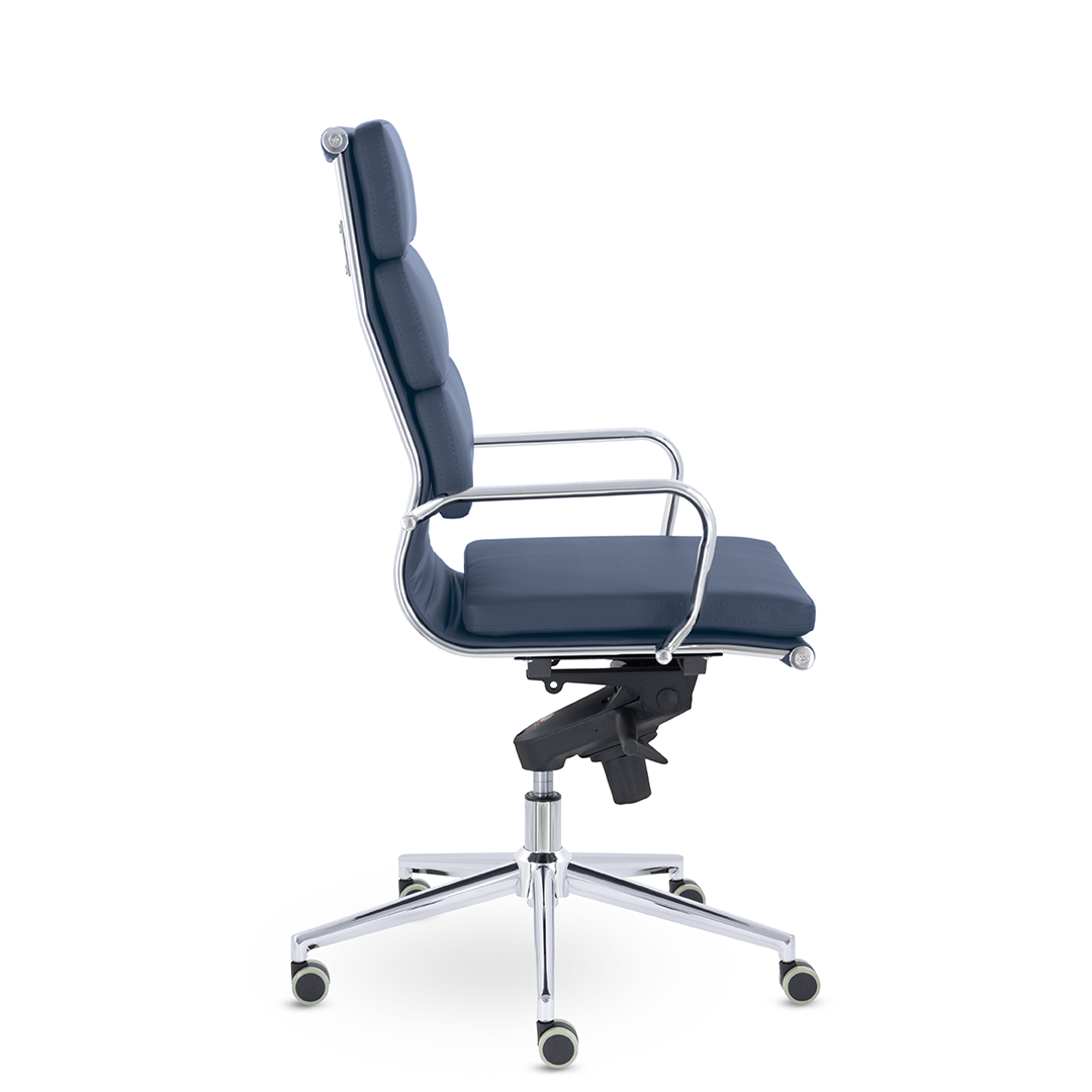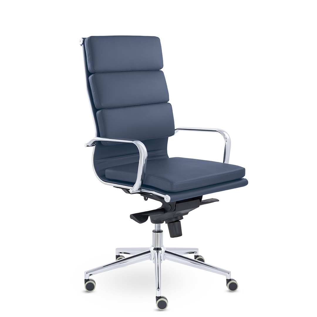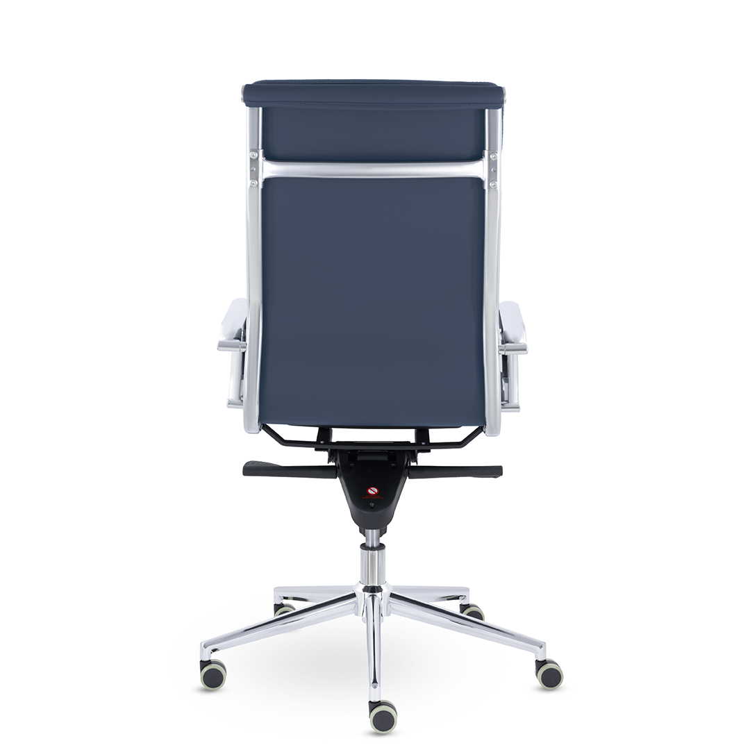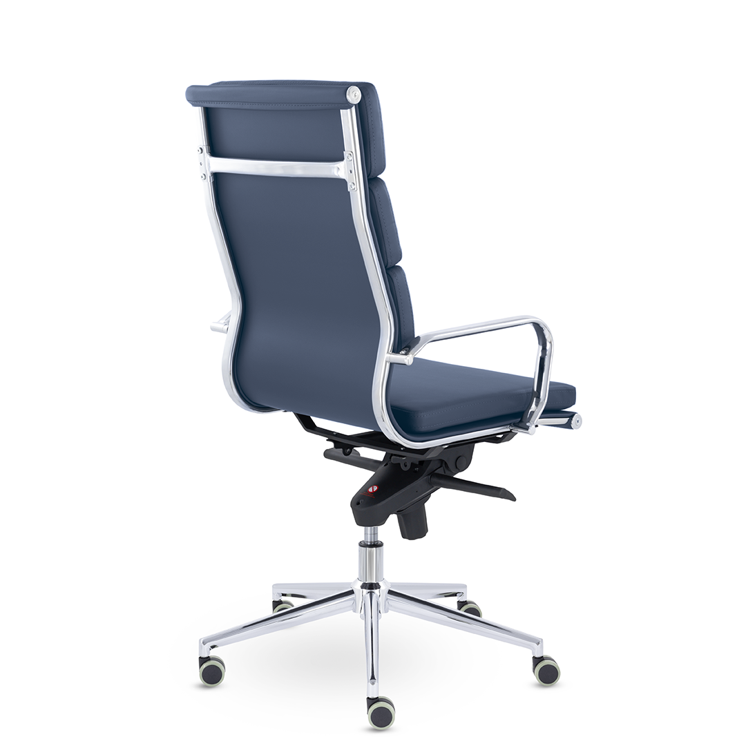 Кресло руководителя в современном металлическом каркасе. Комфорт создается благодаря мягким элементам спинки и сиденья. Зеркальный хромированный каркас и узкая крестовина задают современный стиль. Кресло отлично смотрится в строгих и открытых кабинетах. Механизм качания - мультиблок.