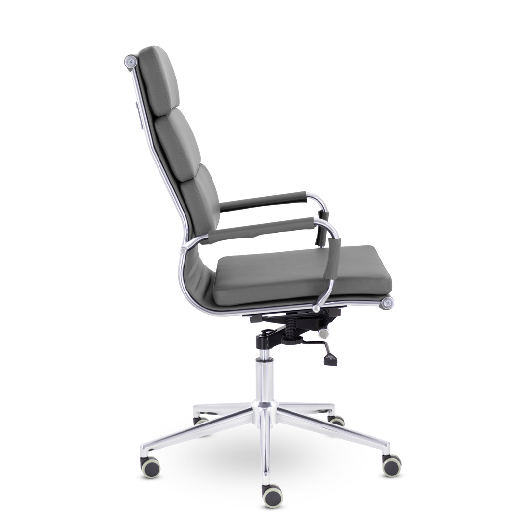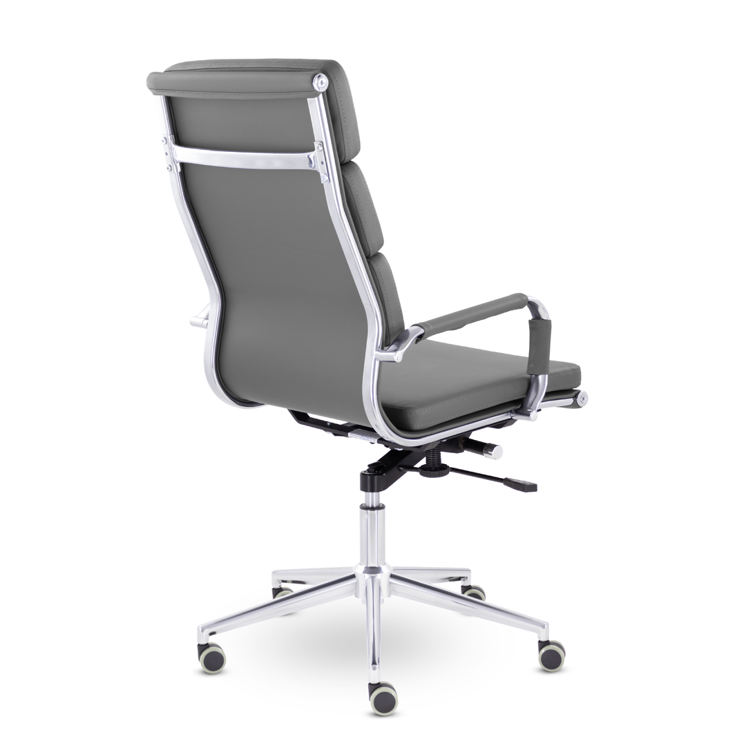 Кресло руководителя в современном металлическом каркасе. Комфорт создается благодаря мягким элементам спинки и сиденья. Зеркальный хромированный каркас и узкая крестовина задают современный стиль креслу. Кресло отлично смотрится в строгих и открытых кабинетах.