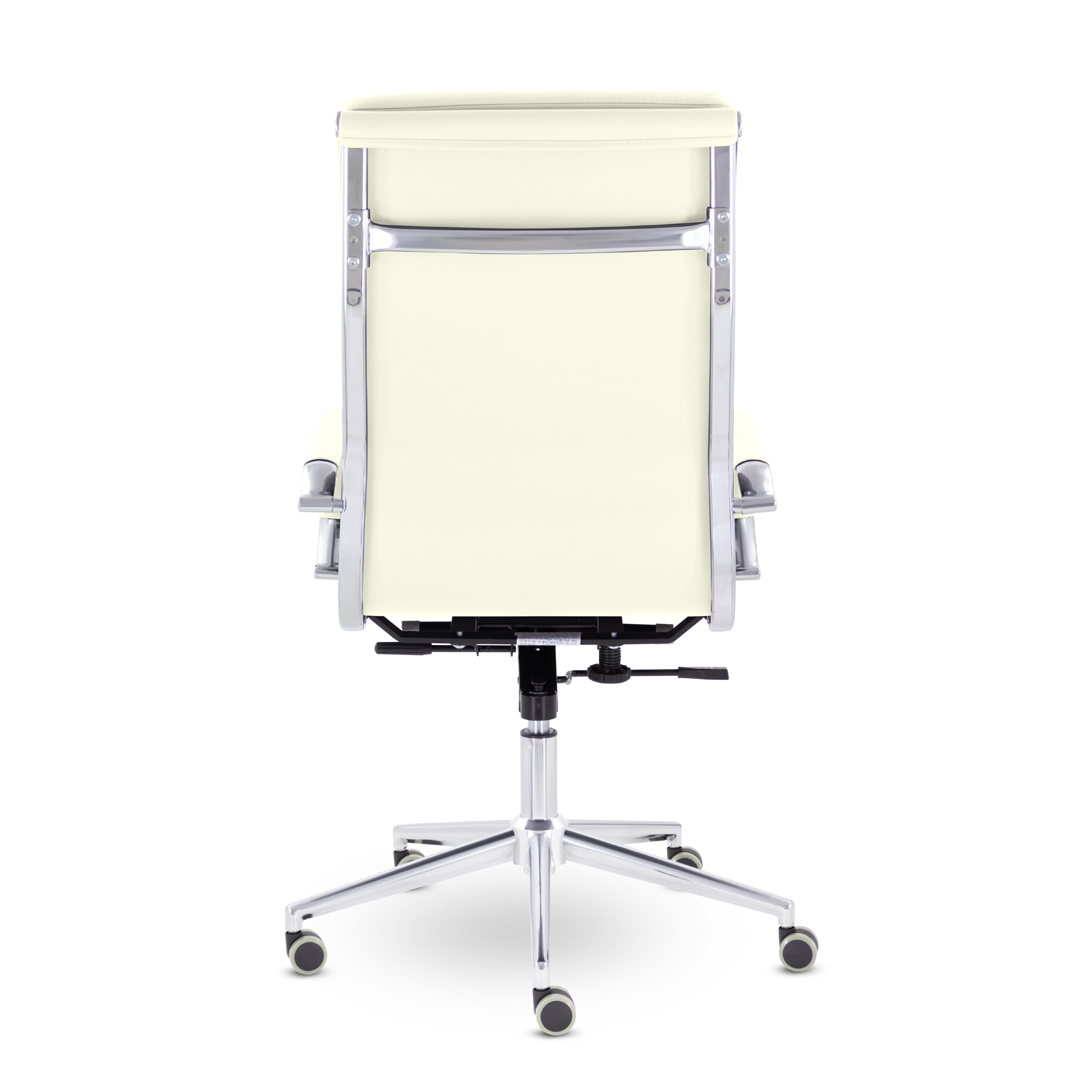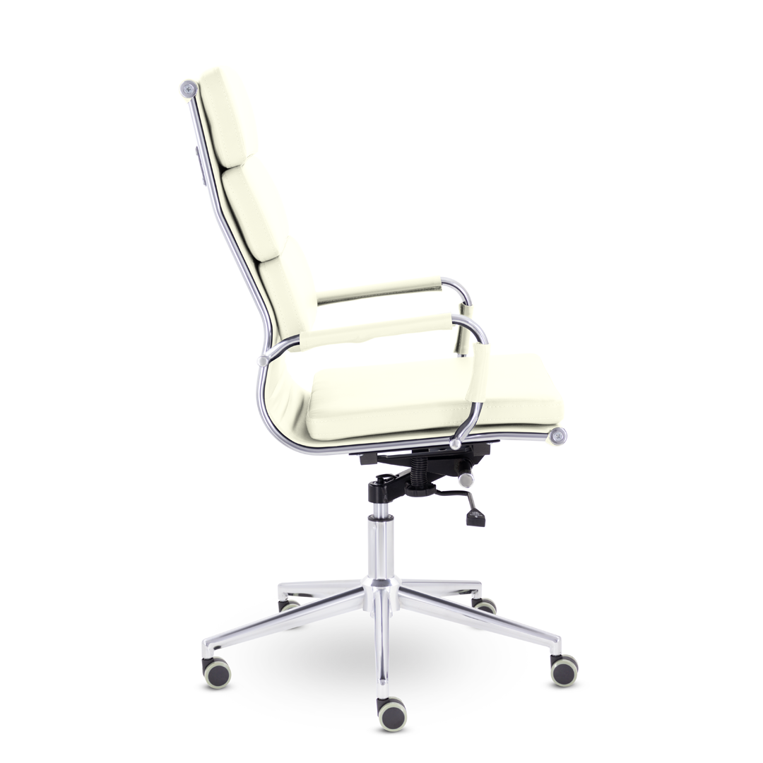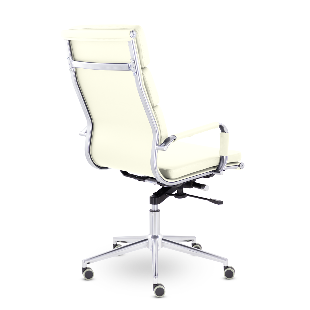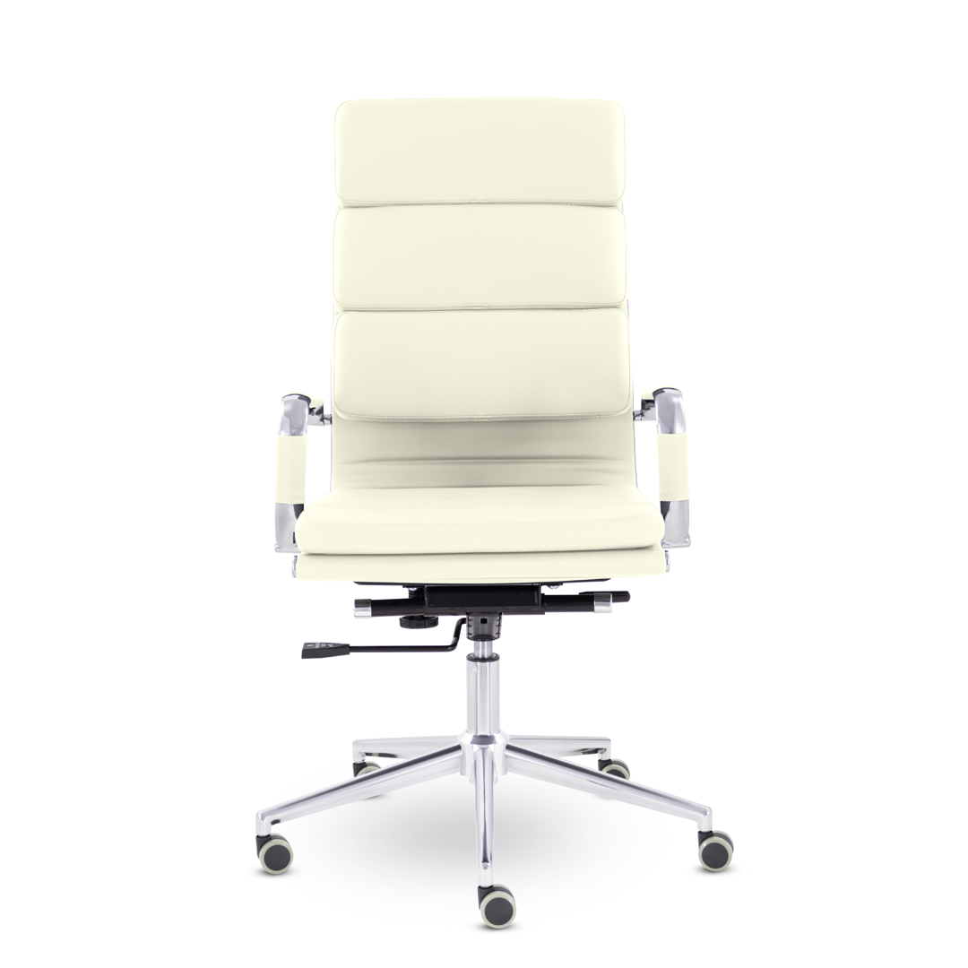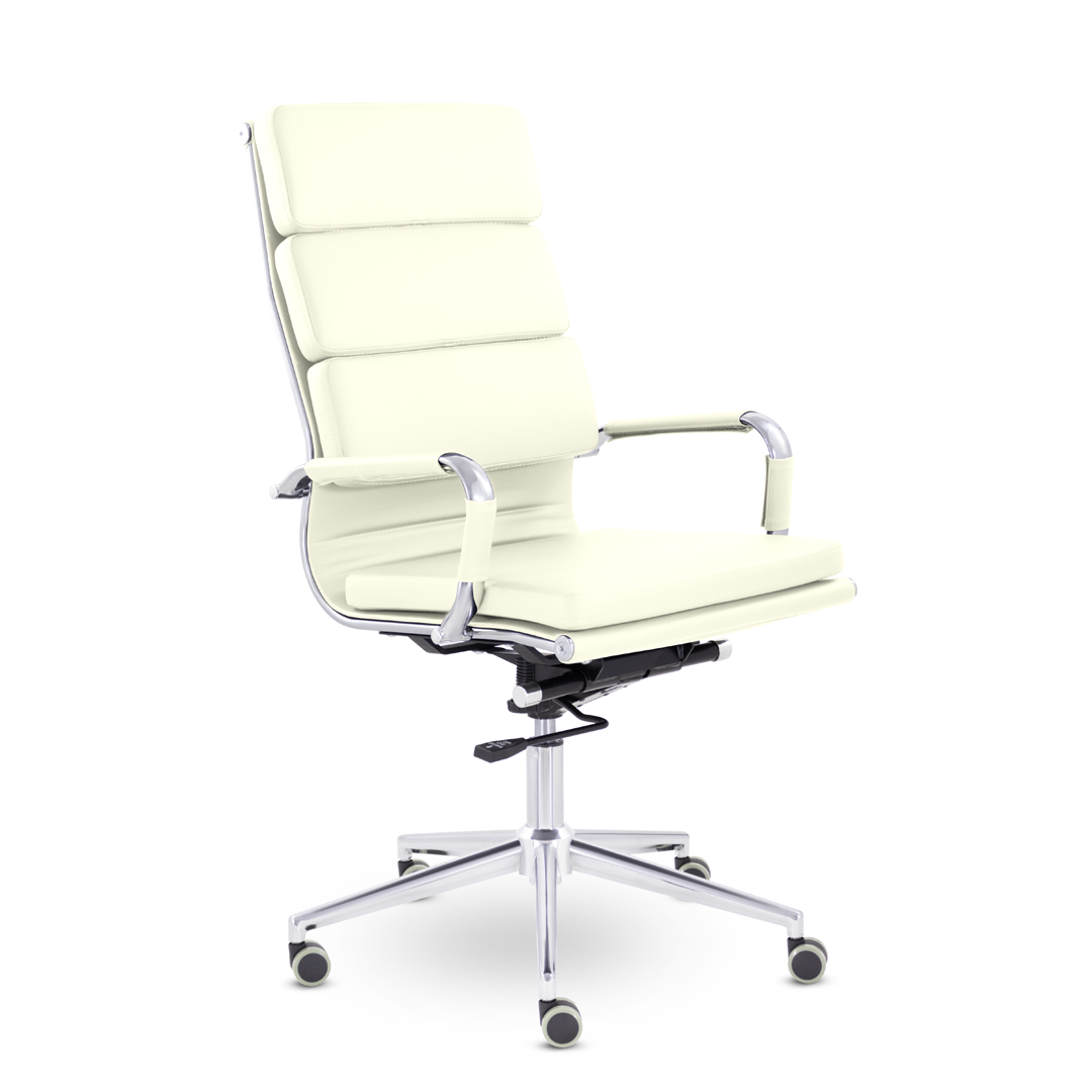 Кресло руководителя в современном металлическом каркасе. Комфорт создается благодаря мягким элементам спинки и сиденья. Зеркальный хромированный каркас и узкая крестовина задают современный стиль креслу. Кресло отлично смотрится в строгих и открытых кабинетах.