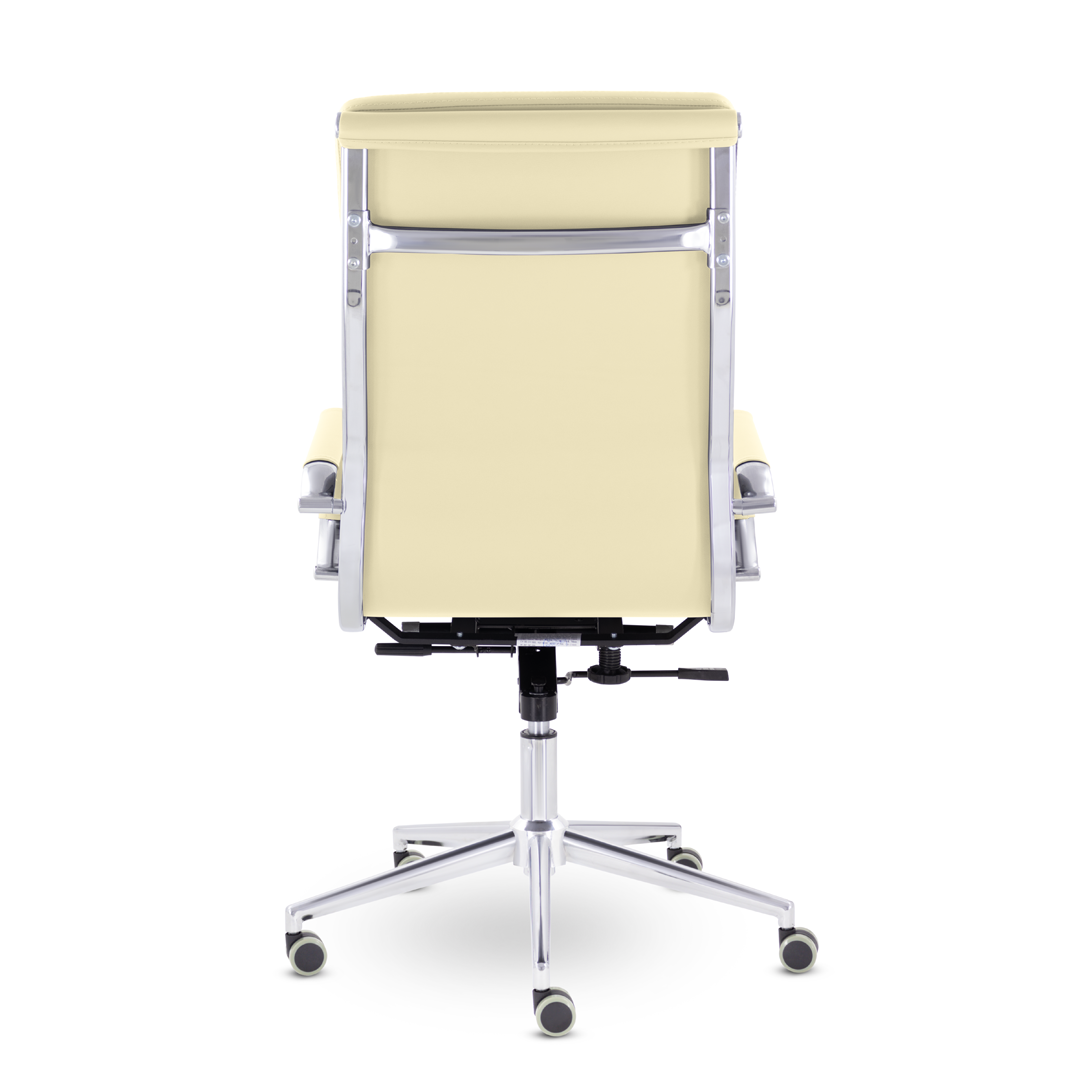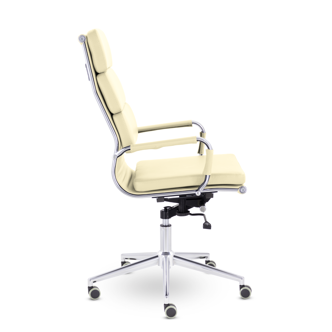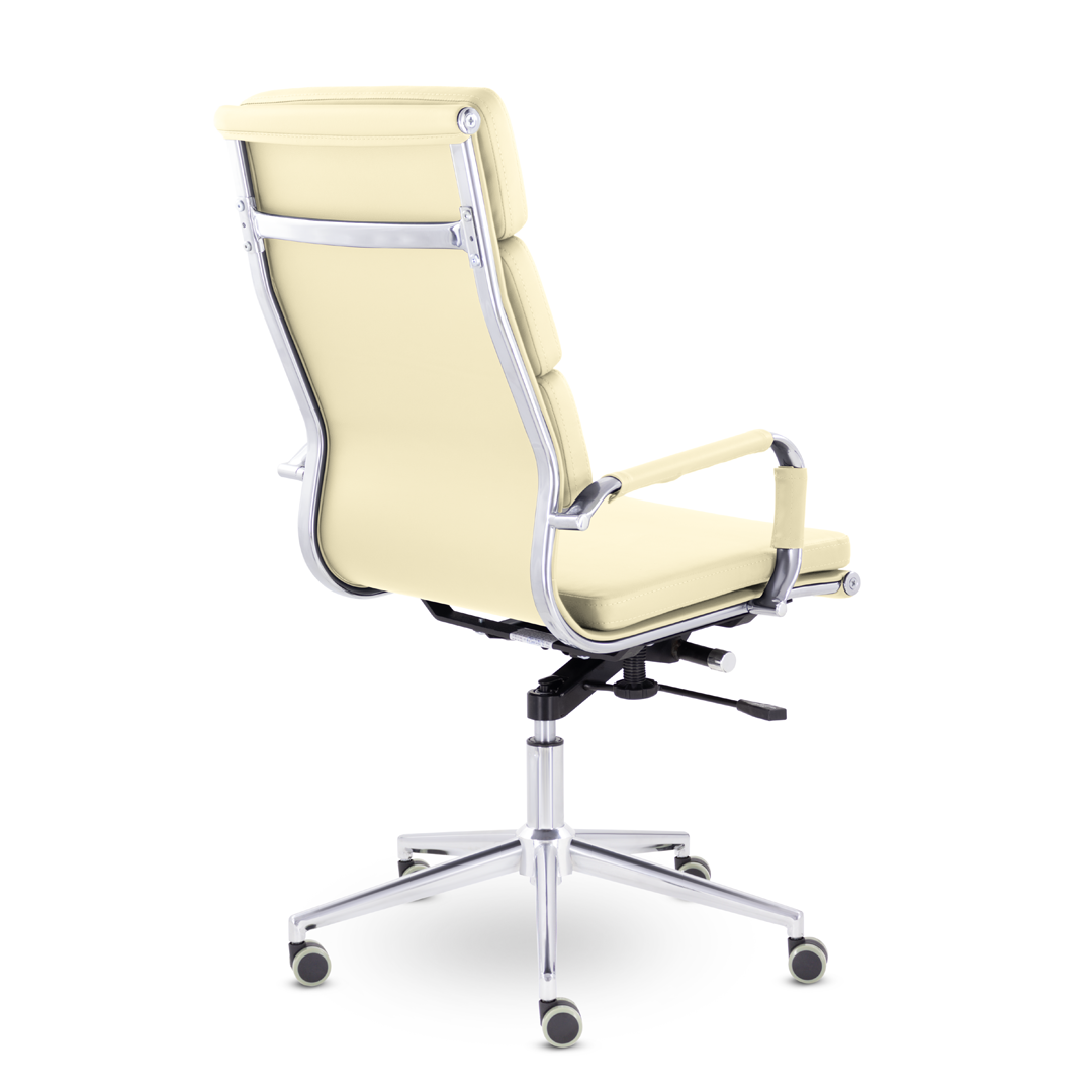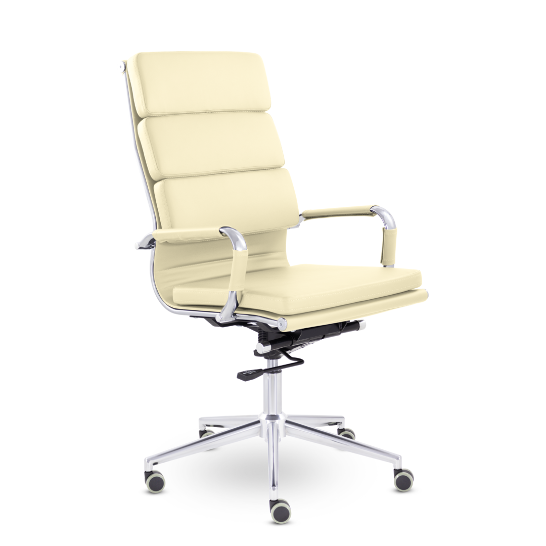 Кресло руководителя в современном металлическом каркасе. Комфорт создается благодаря мягким элементам спинки и сиденья. Зеркальный хромированный каркас и узкая крестовина задают современный стиль креслу. Кресло отлично смотрится в строгих и открытых кабинетах.