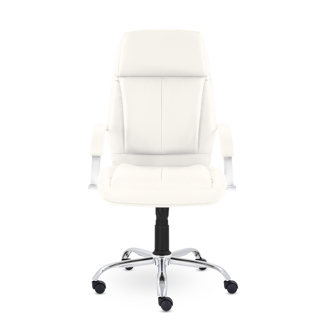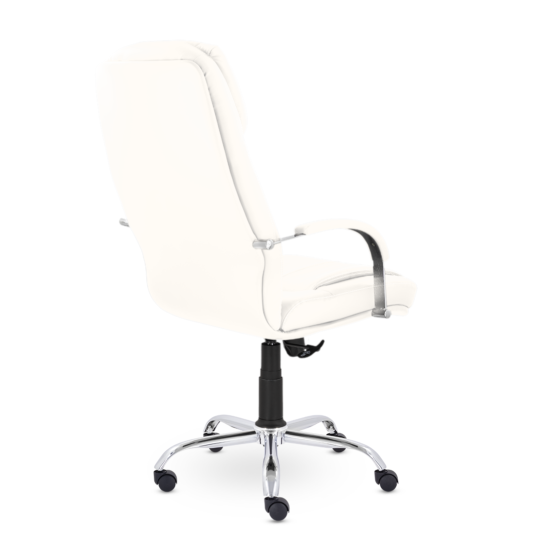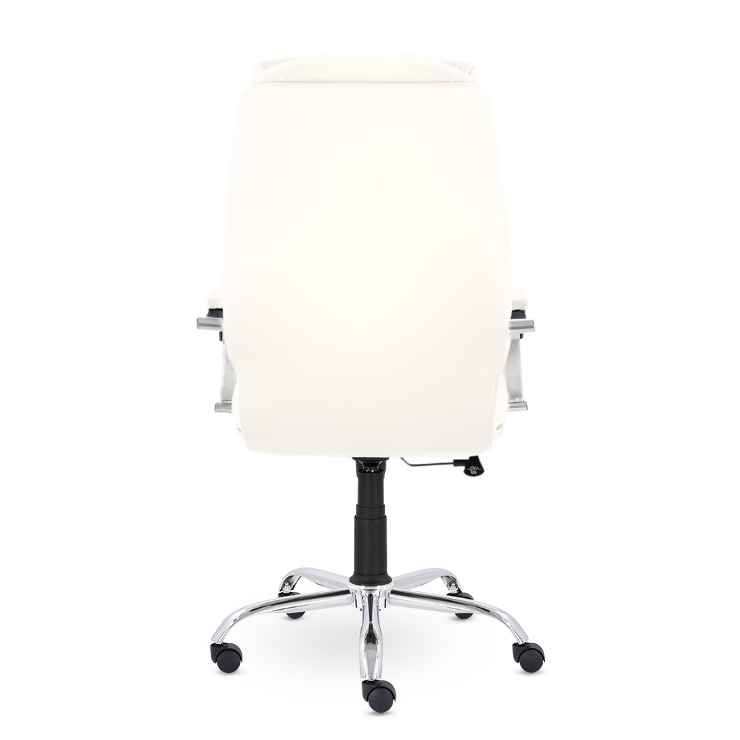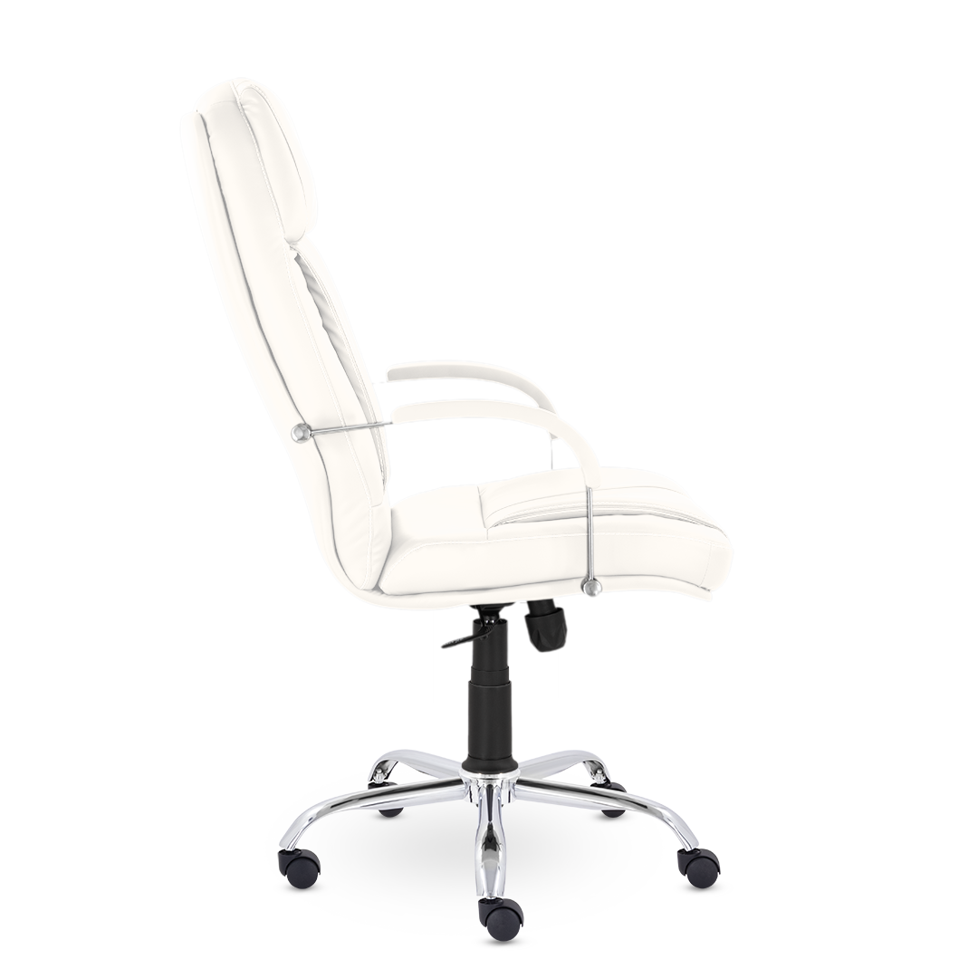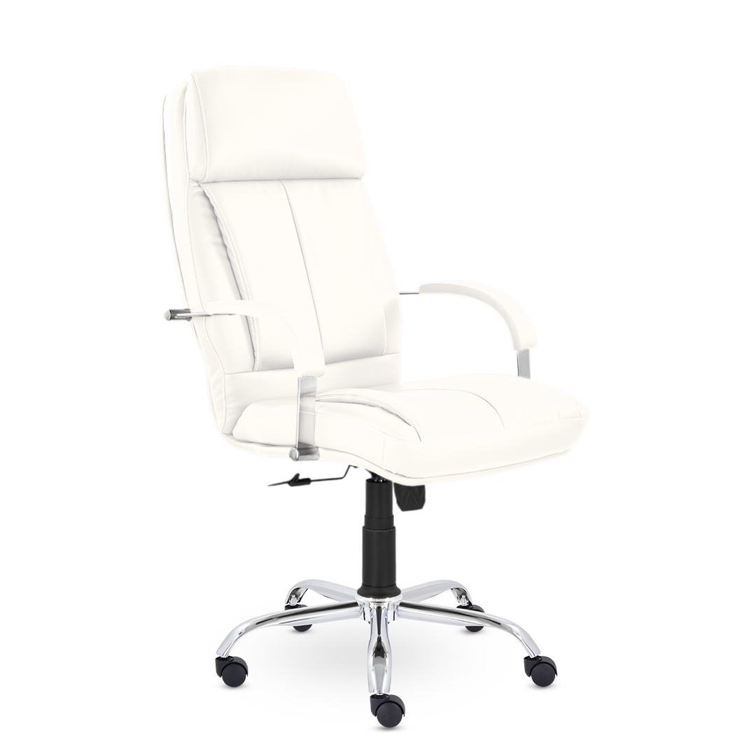 Кресло для настоящих ценителей комфорта! Широкая спинка оснащена увеличенными вертикальными подушками и объемным подголовником. Хромированные подлокотники с мягкими накладками. Солидное кресло отлично будет сочетаться с кабинетом с деревянными элементами в дизайне.