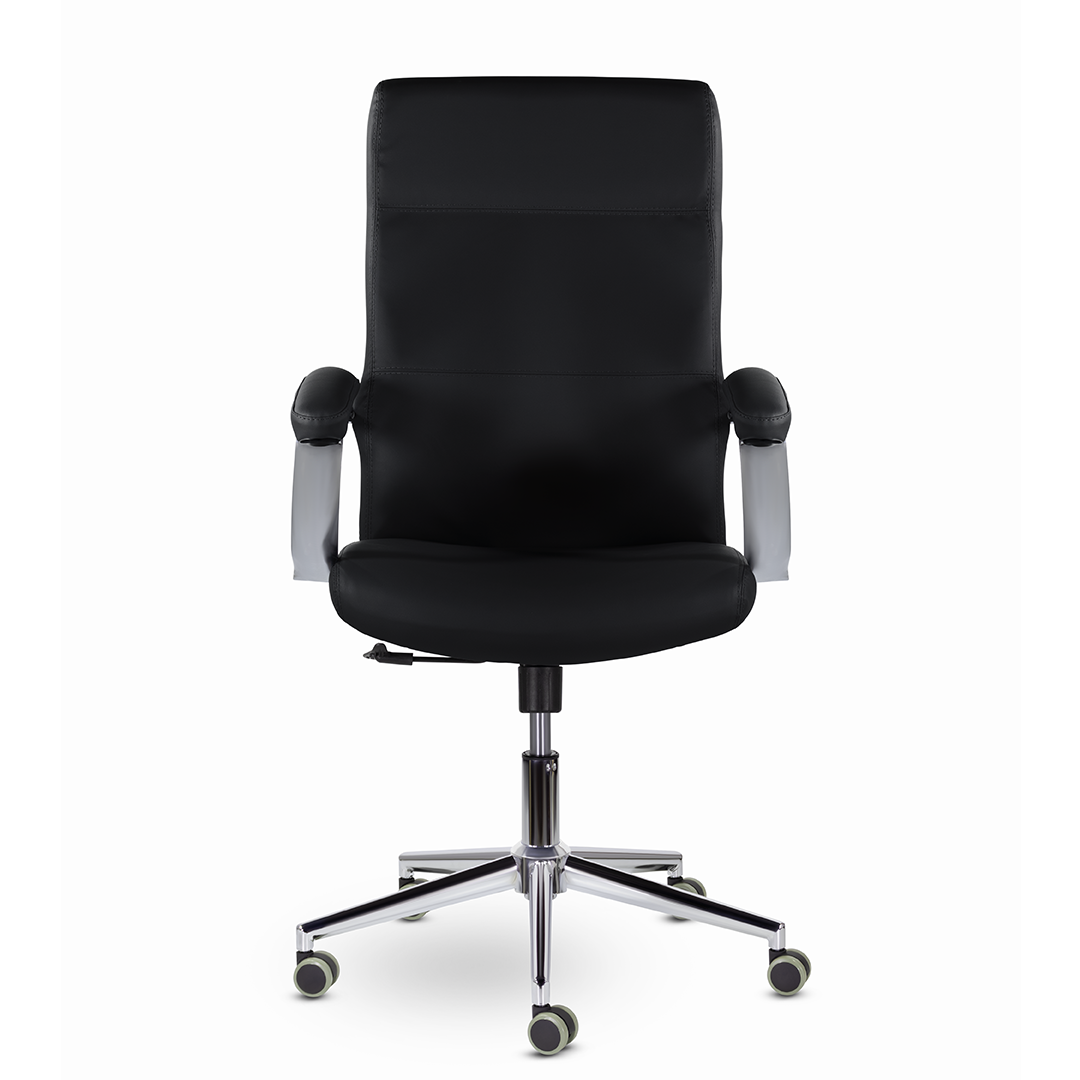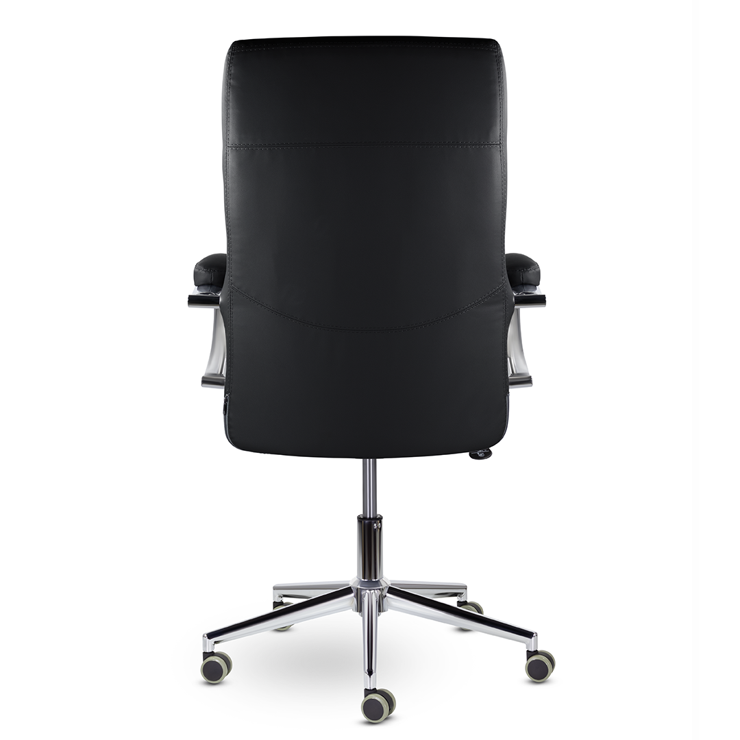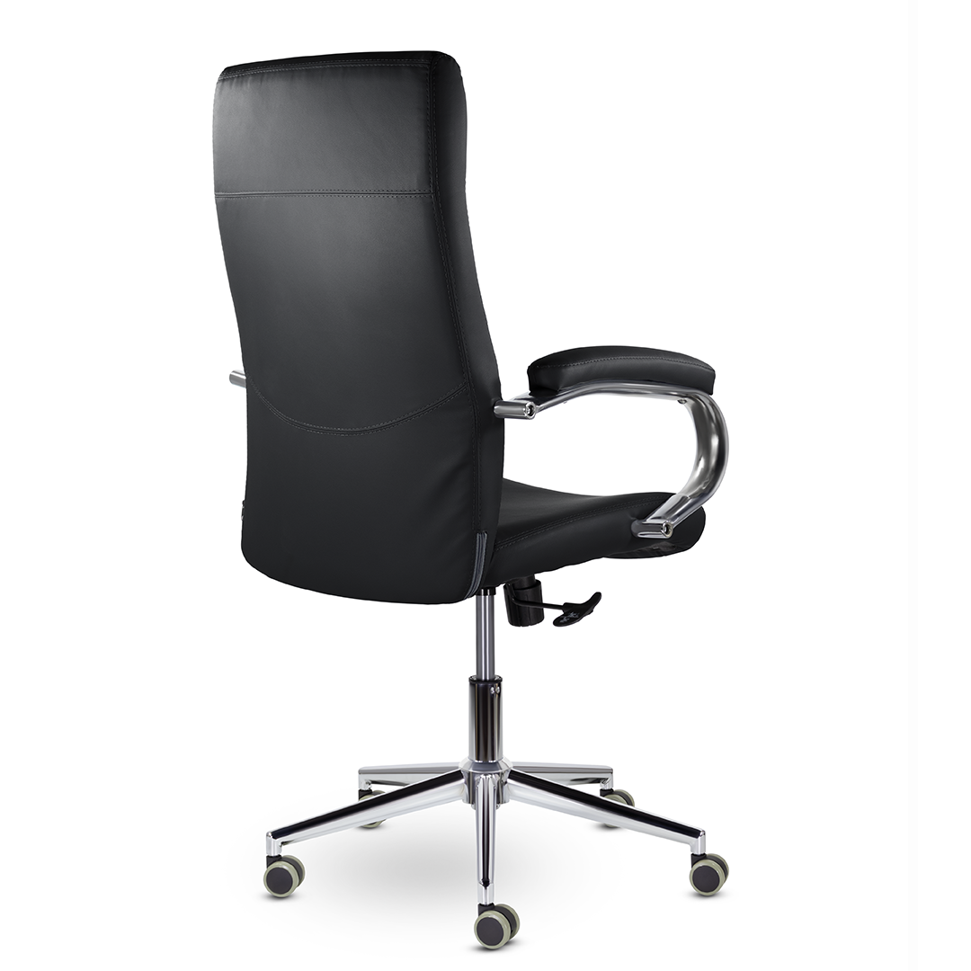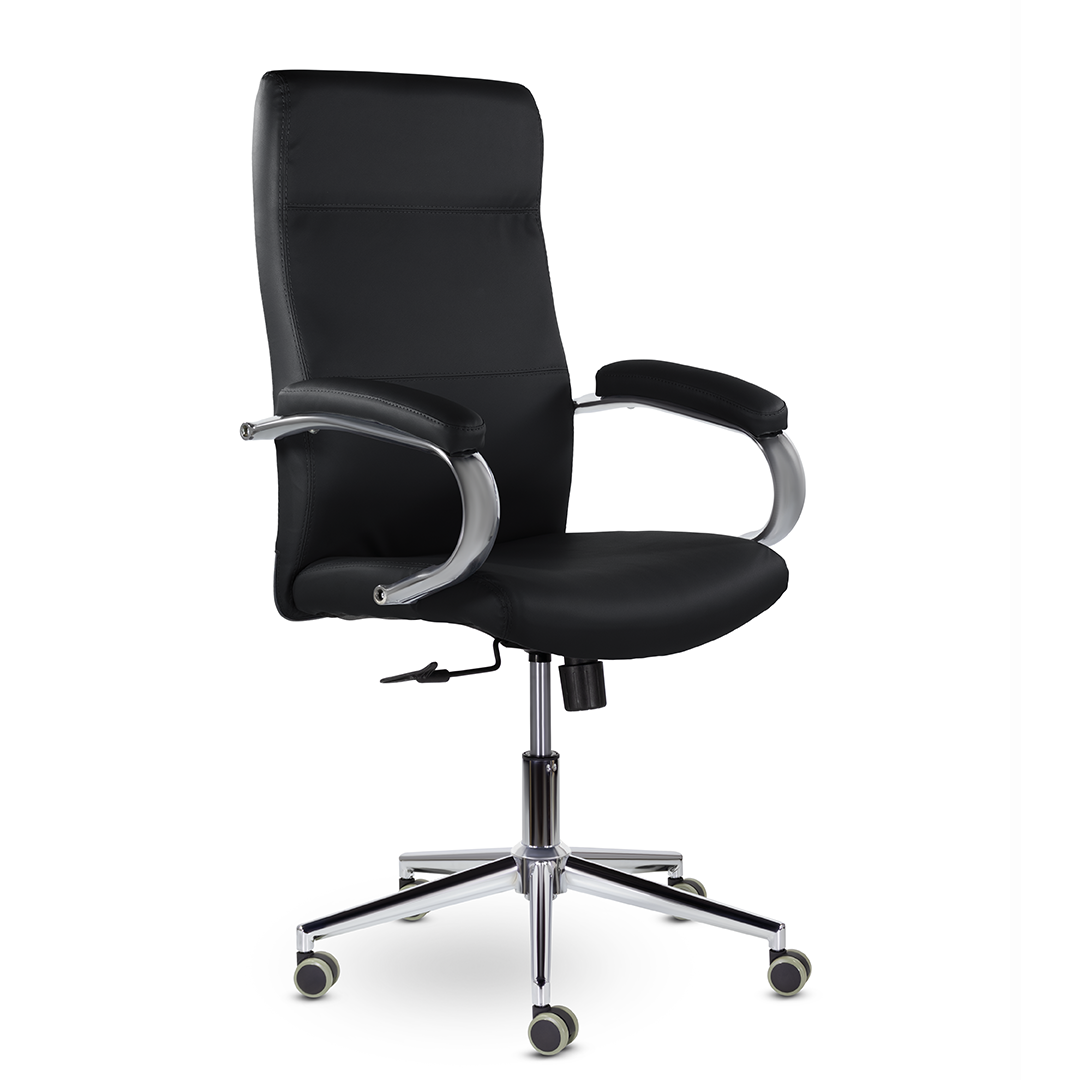 Элегантная модель для современных офисов, кабинетов и пространств. Высокая эргономичная спинка обеспечивает поддержку спины на протяжении всего рабочего дня, а широкое сидение - комфортную посадку. Хромированные подлокотники с мягкими накладками. Максимальная нагрузка 120 кг.