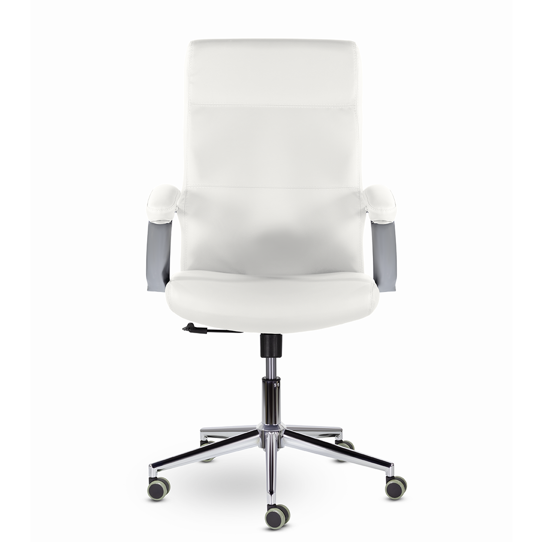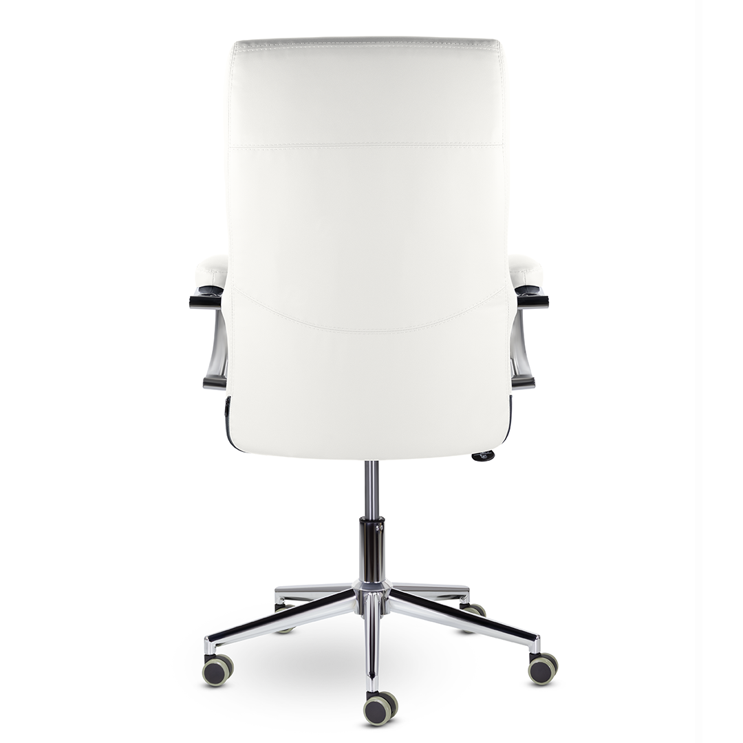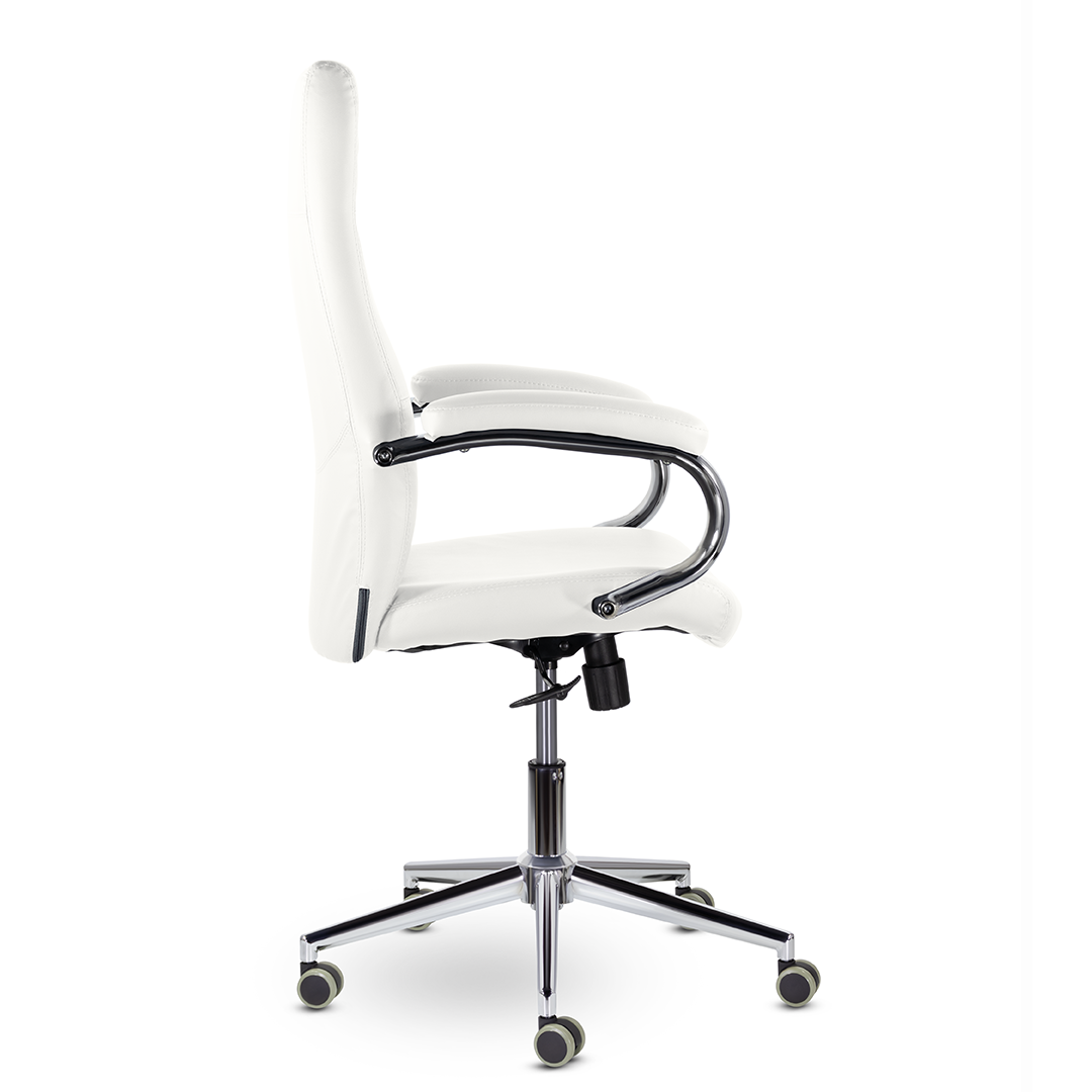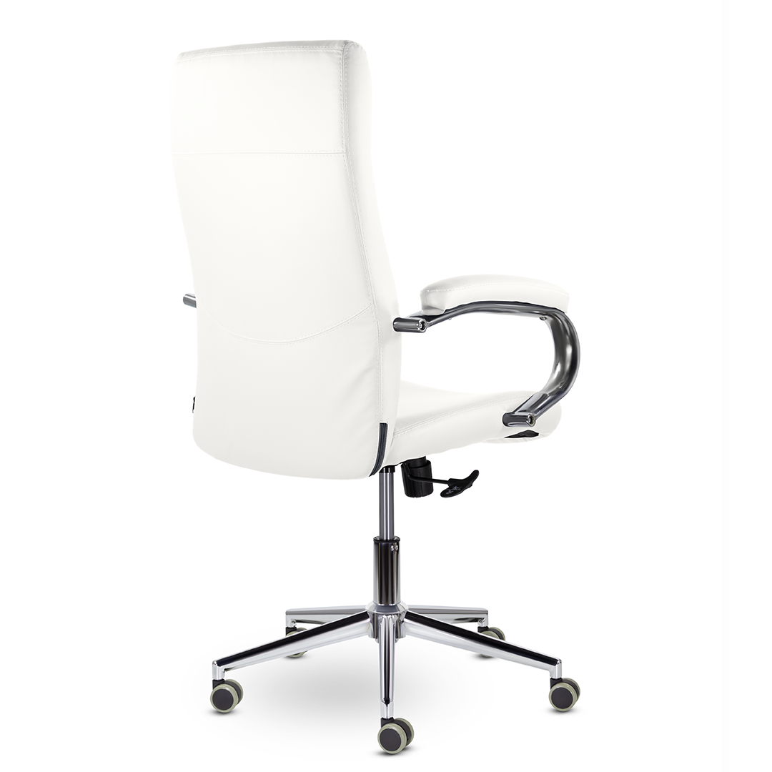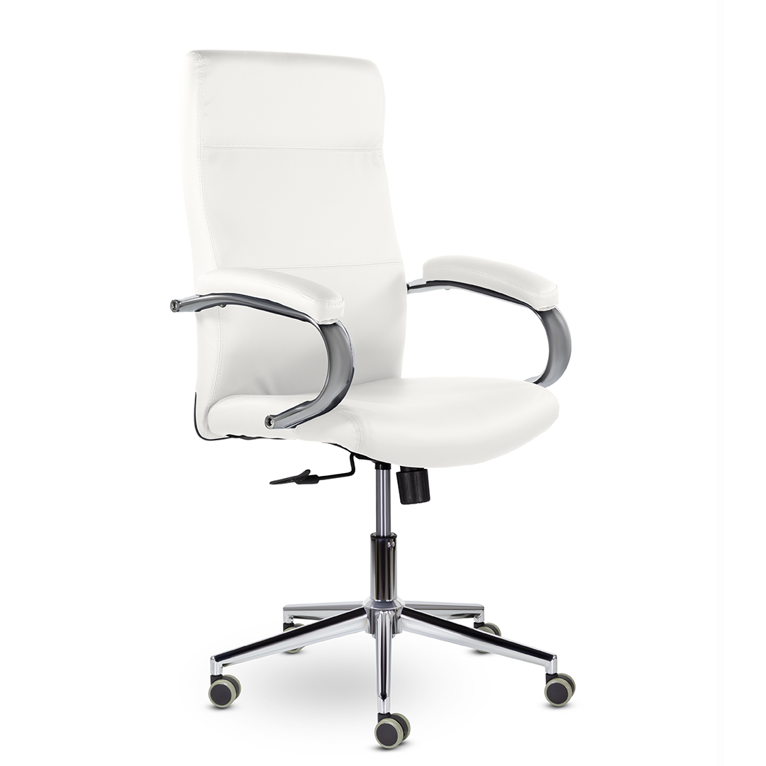 Элегантная модель для современных офисов, кабинетов и пространств. Высокая эргономичная спинка обеспечивает поддержку спины на протяжении всего рабочего дня, а широкое сидение - комфортную посадку. Хромированные подлокотники с мягкими накладками. Максимальная нагрузка 120 кг.