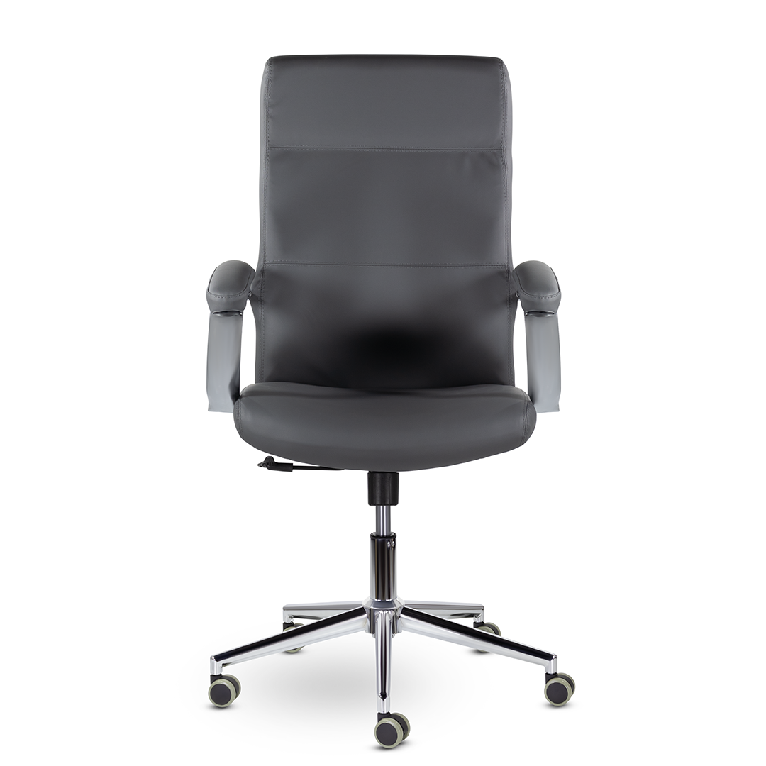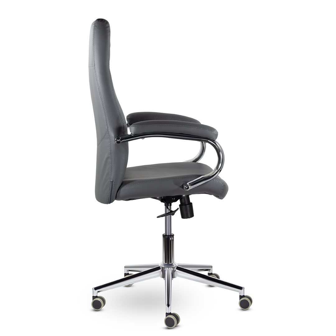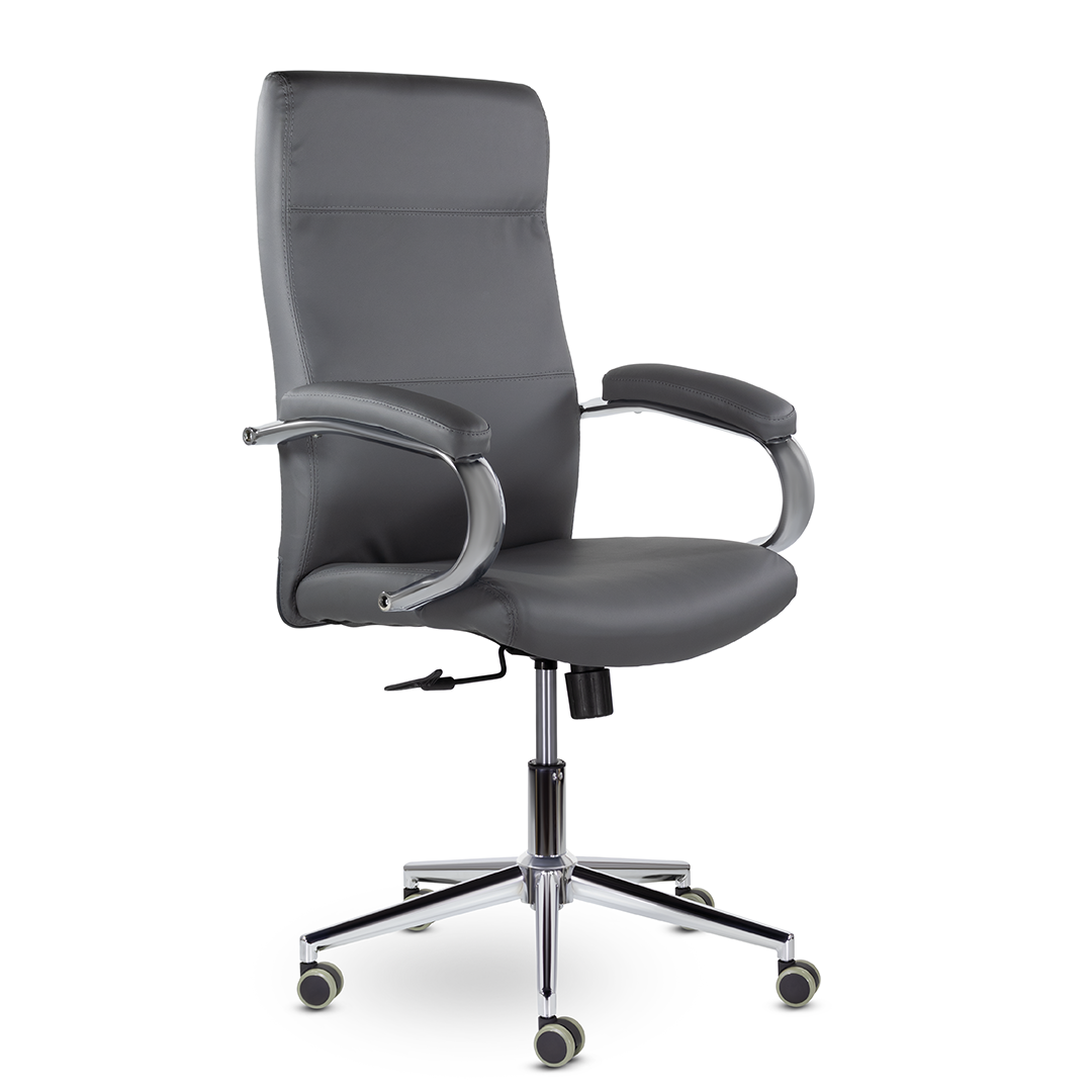 Элегантная модель для современных офисов, кабинетов и пространств. Высокая эргономичная спинка обеспечивает поддержку спины на протяжении всего рабочего дня, а широкое сидение - комфортную посадку. Хромированные подлокотники с мягкими накладками. Максимальная нагрузка 120 кг.