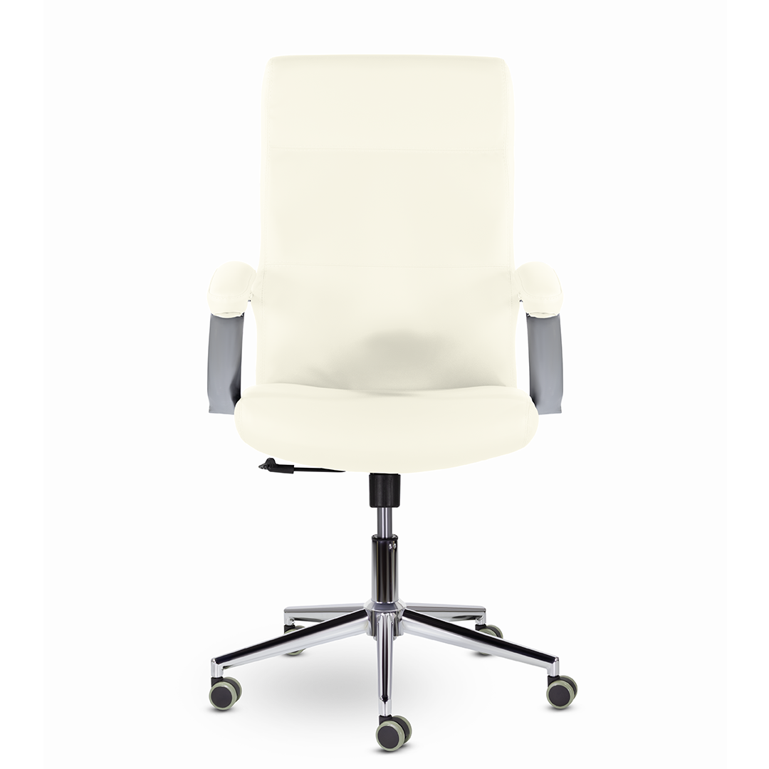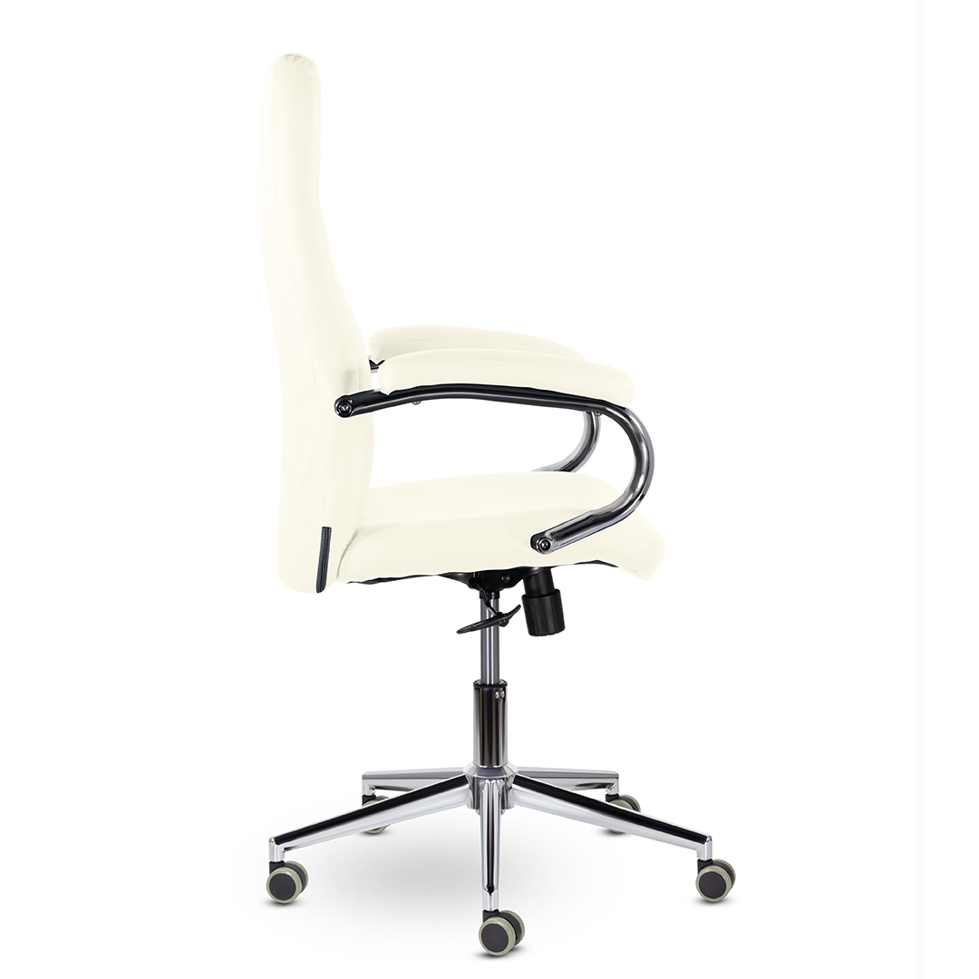 Элегантная модель для современных офисов, кабинетов и пространств. Высокая эргономичная спинка обеспечивает поддержку спины на протяжении всего рабочего дня, а широкое сидение - комфортную посадку. Хромированные подлокотники с мягкими накладками. Максимальная нагрузка 120 кг.