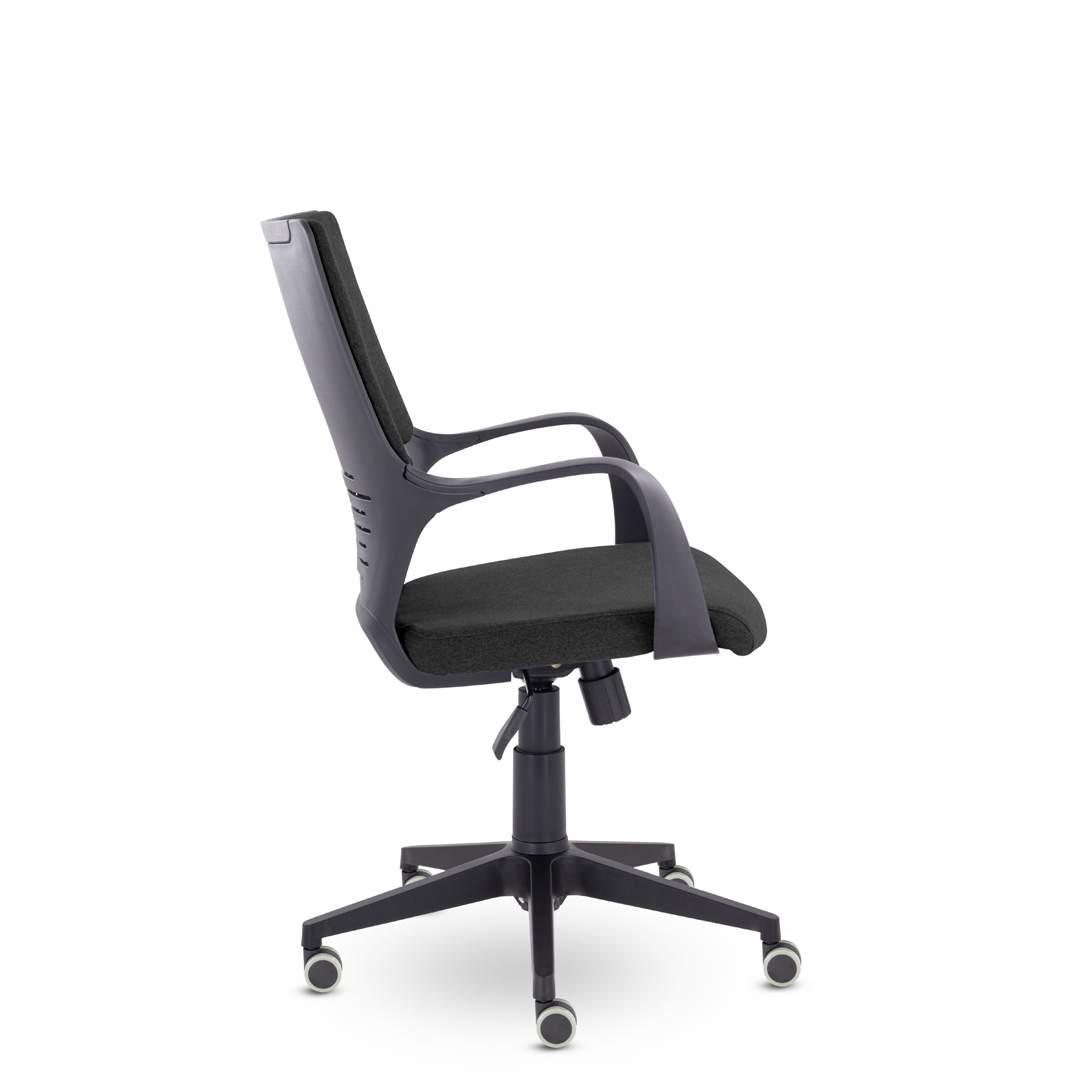 Современное кресло в стиле хай-тек. Мягкие элементы спинки кресла расположены в трех зонах, соприкасаясь с которыми спина сидящего человека находится в положении максимального комфорта. Изящные подлокотники идеально вписываются в общую конструкцию кресла. Кресло изготавливается в любом цвете тканях D, QH и в экокоже Santorini.