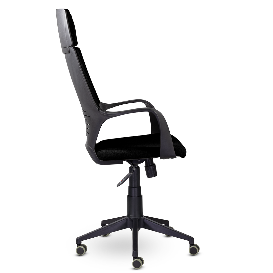 Современное кресло в стиле хай-тек. Мягкие элементы спинки кресла расположены в четырех зонах, соприкасаясь с которыми спина сидящего человека находится в положении максимального комфорта. Изящные подлокотники идеально вписываются в общую конструкцию кресла. Кресло изготавливается в любом цвете тканях D, QH и в экокоже Santorini.