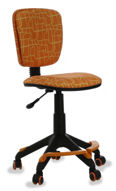 Детское кресло с подставкой для ног. Регулировка высоты (газлифт). Регулировка глубины сиденья. Уникальные колеса с обратным стопором: колесо перестает крутиться под нагрузкой от 40кг. Таким образом, когда ребенок сидит на кресле, оно не откатится. С полиуретановым покрытием - для паркета/ламината. Ограничение по весу: 100 кг. Материал обивки: ткань.