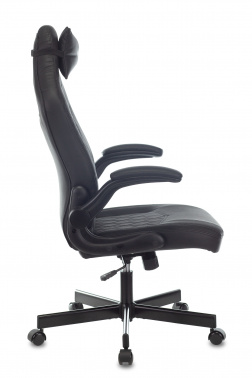 Современное игровое кресло. Механизм качания с регулировкой под вес и возможностью фиксации в вертикальном положении. Регулировка высоты (газлифт). Поддержка шеи(подушка). Подлокотники откидные с мягкими накладками из искусственной кожи. Крестовина металлическая. Колеса для паркета и ламината. Ограничение по весу: 181 кг. Соответствует стандарту Bifma. Гарантия: 24 мес. Материал обивки: экокожа