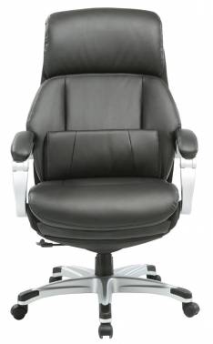 Кресло руководителя современного дизайна. Регулировка высоты (газлифт). Синхромеханизм качания с фиксацией в вертикальном положении. Высокая спинка с подголовником. Дополнительная подушка под поясницу на скрытом магните. Подлокотники подвижные, крашеный пластик, с накладками из иск.кожи. Крестовина пластиковая, крашеная, с накладками. Выдвижная подставка для ног. Ограничение по весу: 120 кг. Материал обивки: рециклированная кожа.