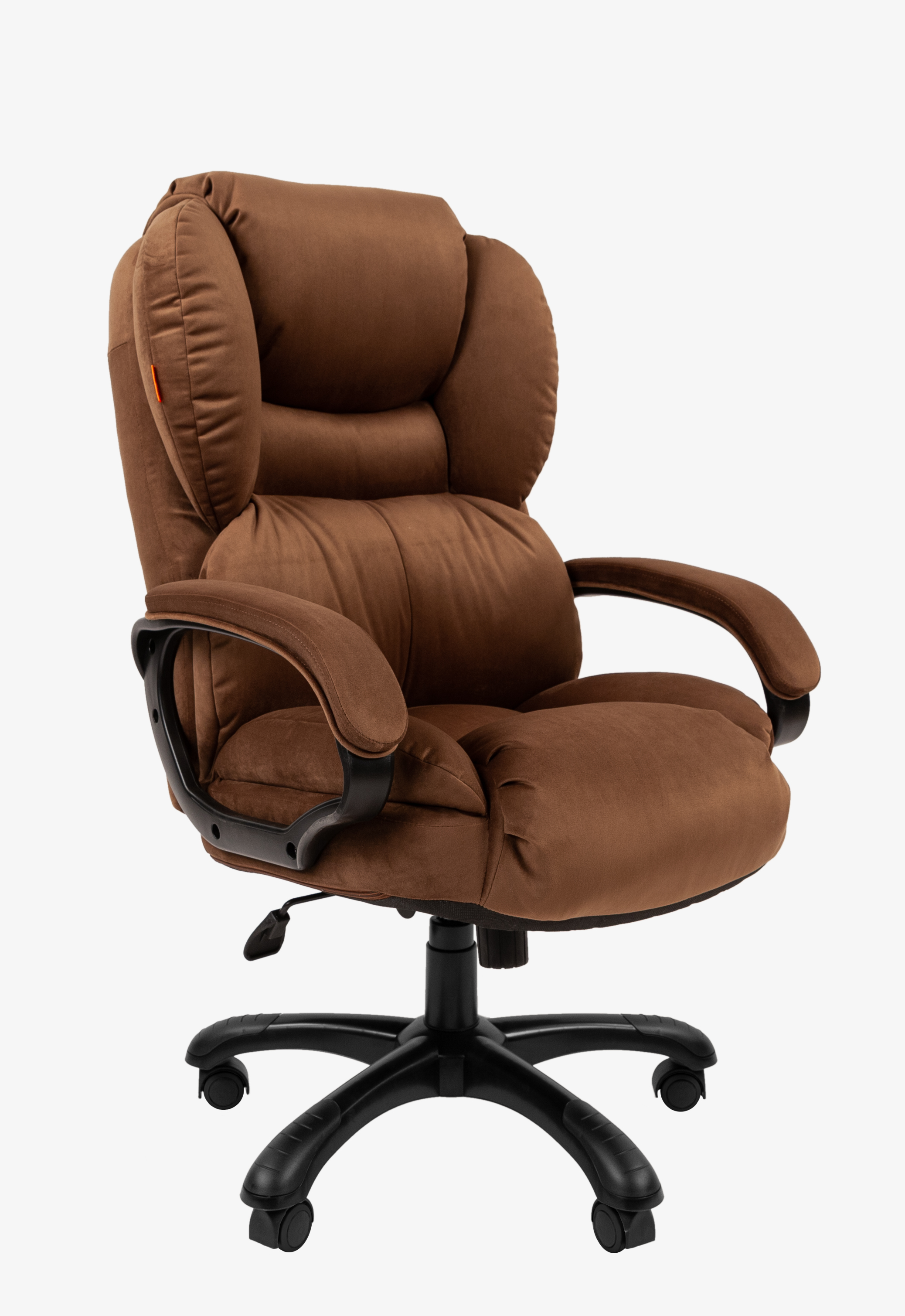 Одно из самых "пышных" кресел руководителя - солидное, комфортное и невероятно уютное. Оно, как дорогой диван, буквально манит в свои объятия, обещая отличный комфорт. И не обманывает. Округлые формы и обивка из велюра придают креслу статусный и эффектный внешний вид, а дополнительные подушки с мягким наполнителем обеспечивают удобную посадку.