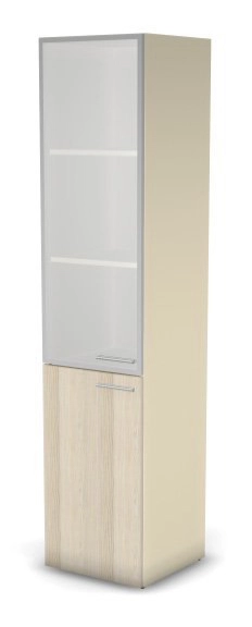 Шкаф комби левый, стекло в ал.рамке сатин 451х448х1982